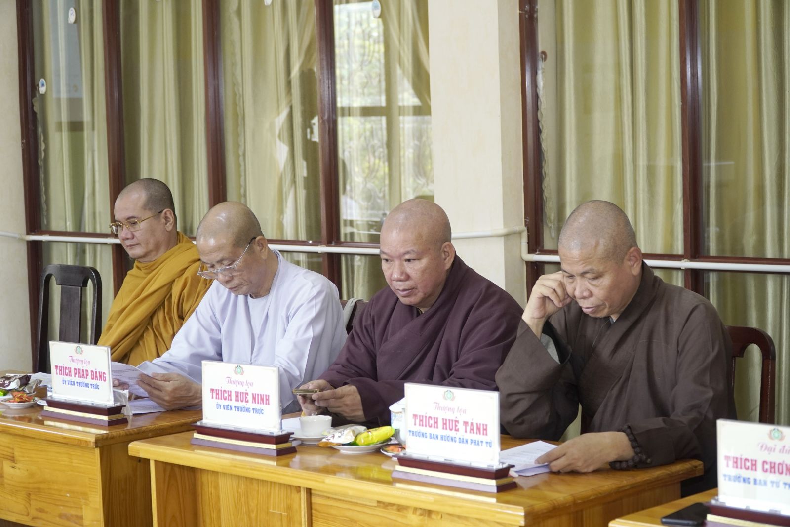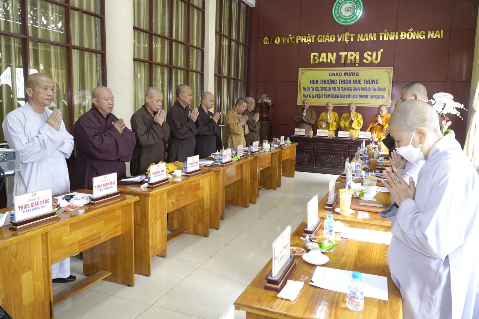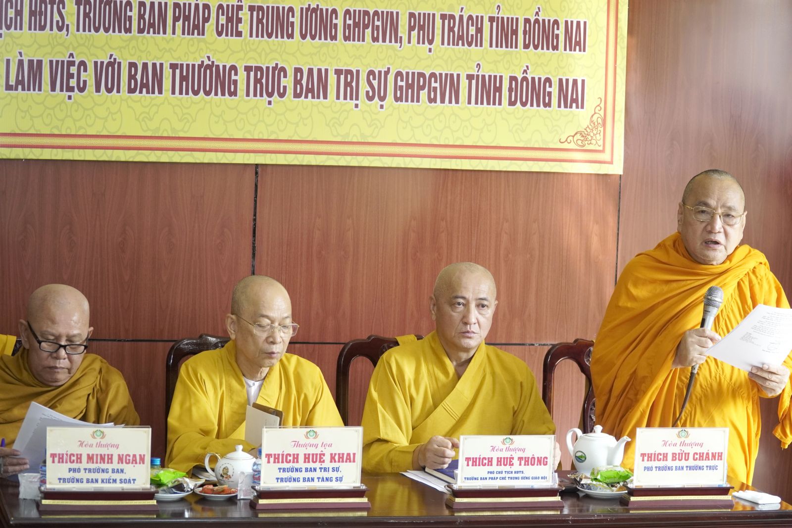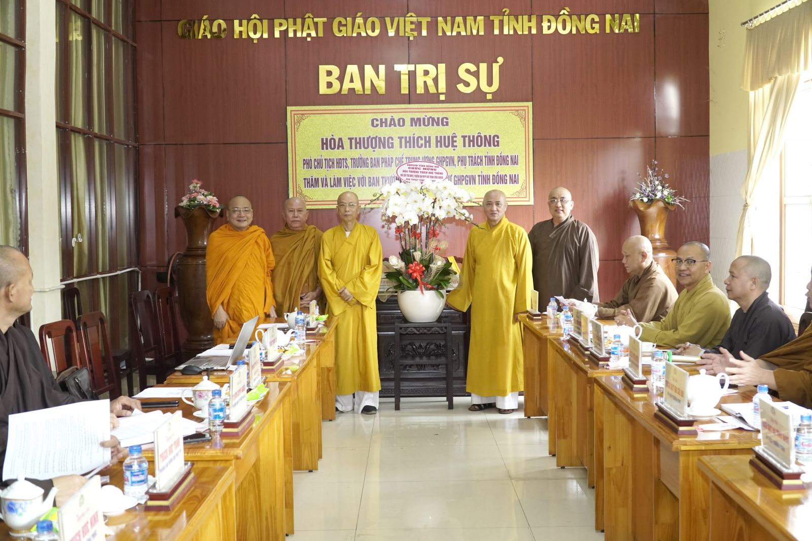 Chứng minh và chủ tọa phiên họp có HT. Thích Huệ Thông – Phó Chủ tịch HĐTS, Trưởng ban Pháp chế Trung Ương GHPGVN; TT. Thích Huệ Khai - Ủy viên Thường trực HĐTS, Trưởng Ban Trị sự, Trưởng ban Tăng sự GHPGVN tỉnh Đồng Nai; HT. Thích Bửu Chánh - Ủy viên Thư ký HĐTS, Phó Trưởng ban Thường trực Ban Trị sự GHPGVN tỉnh Đồng Nai; HT. Thích Minh Ngạn – Phó Ban Trị sự, Trưởng ban Kiểm soát GHPGVN tỉnh; cùng chư tôn đức Tăng Ni Thường trực Ban Trị sự GHPGVN tỉnh Đồng Nai.