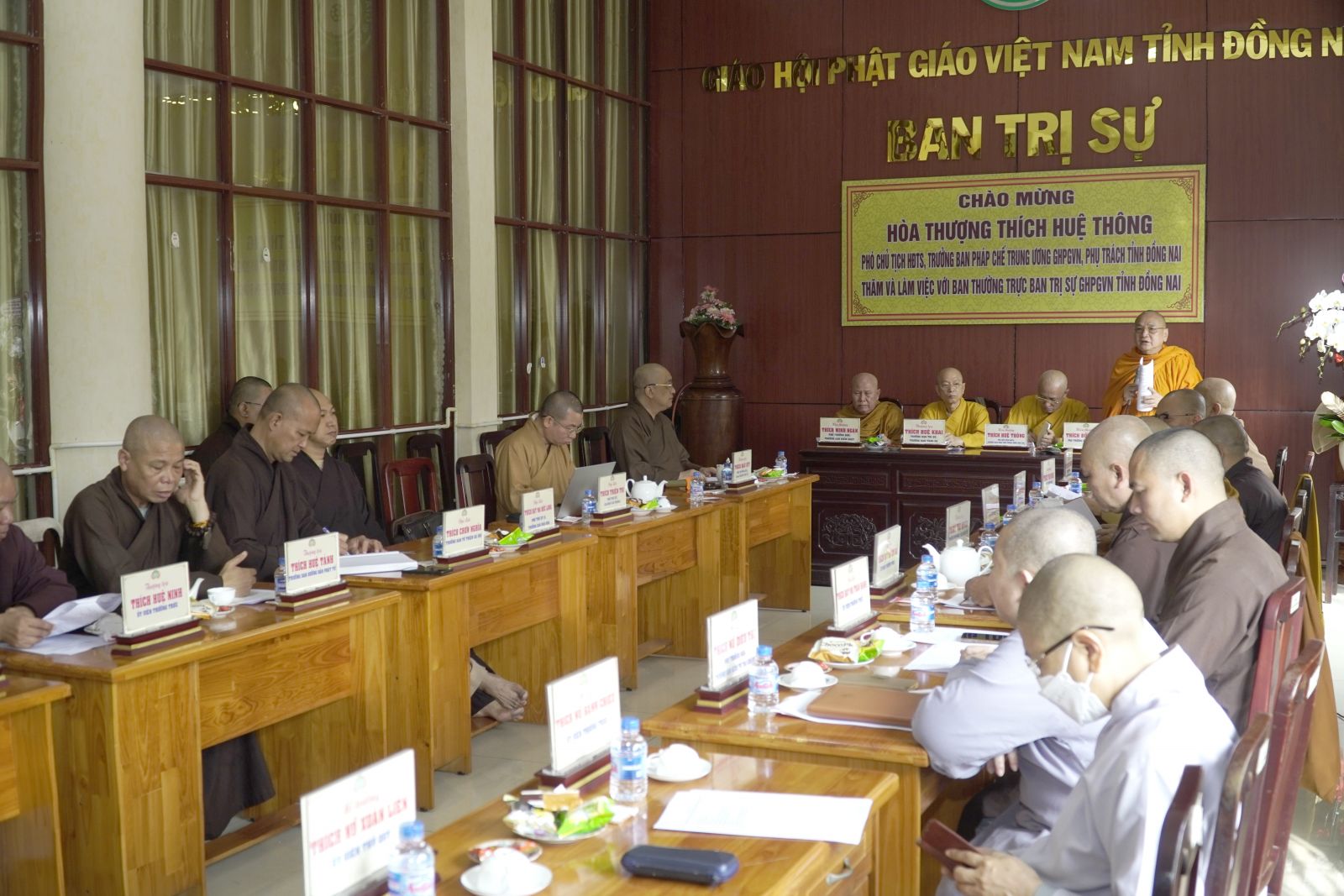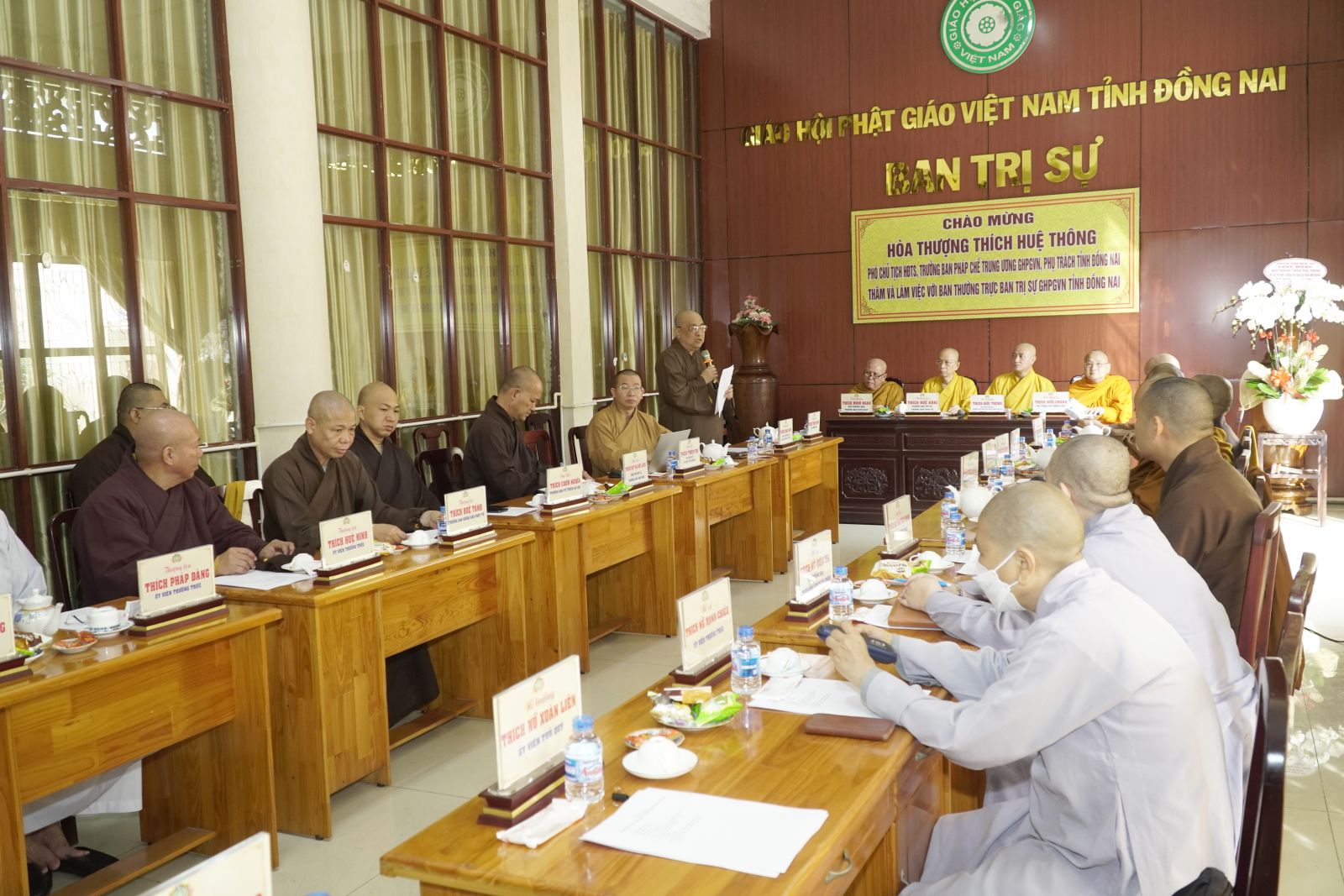 Phiên họp đón nhận ý kiến chỉ đạo sâu sắc của HT. Thích Huệ Thông – Phó Chủ tịch Hội Đồng Trị sự đã thay mặt Hội Đồng Trị sự đã nói lên sự quan tâm của các cấp lãnh đạo Trung ương Giáo hội đối với tỉnh Đồng Nai. Qua đó Hòa thượng cũng mong muốn Chư tôn đức Tăng Ni phải luôn gắn kết để phát triển Phật sự tỉnh nhà được hoàn thành tốt đẹp, góp phần quan trọng trong việc phát triển của Phật giáo Việt Nam.