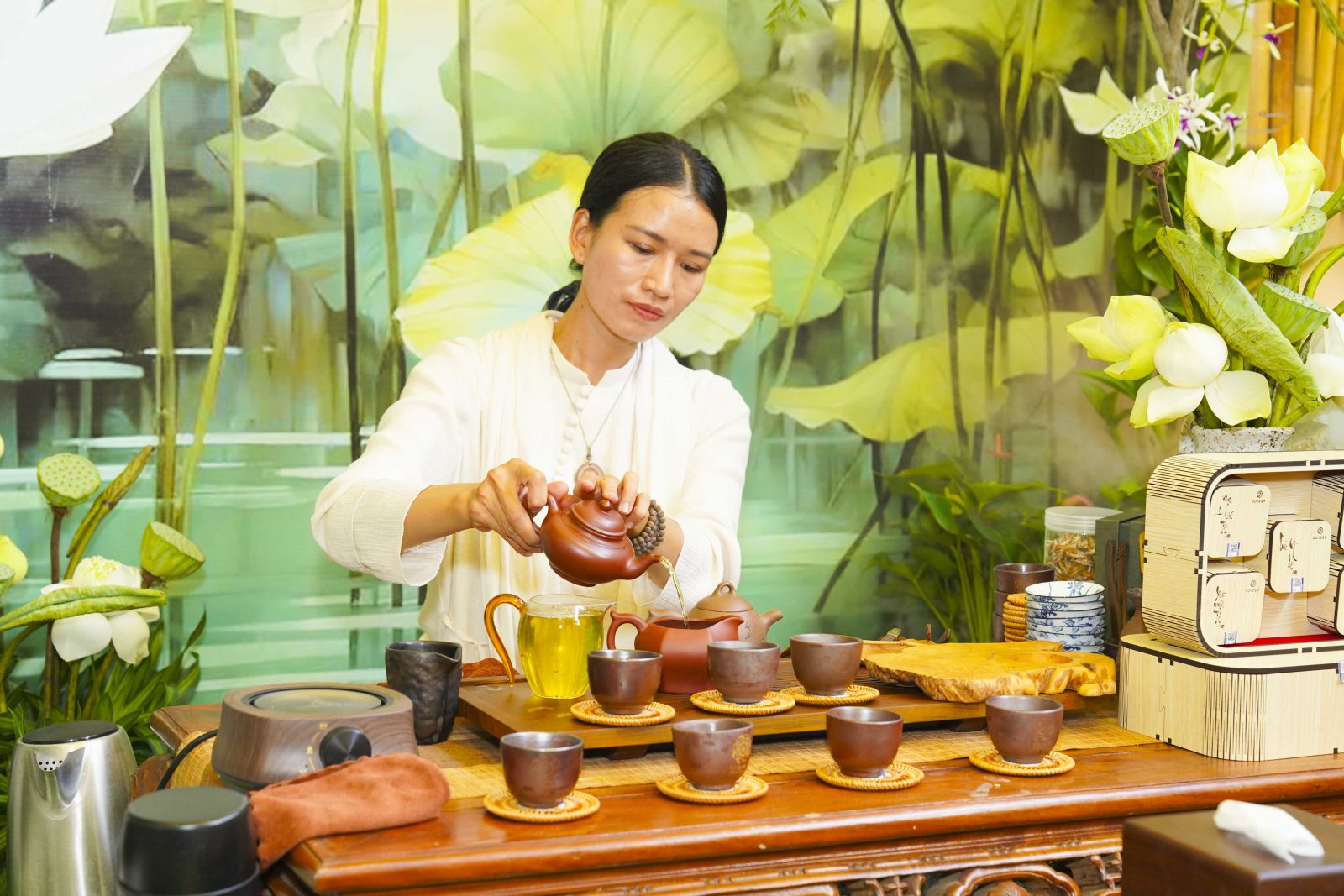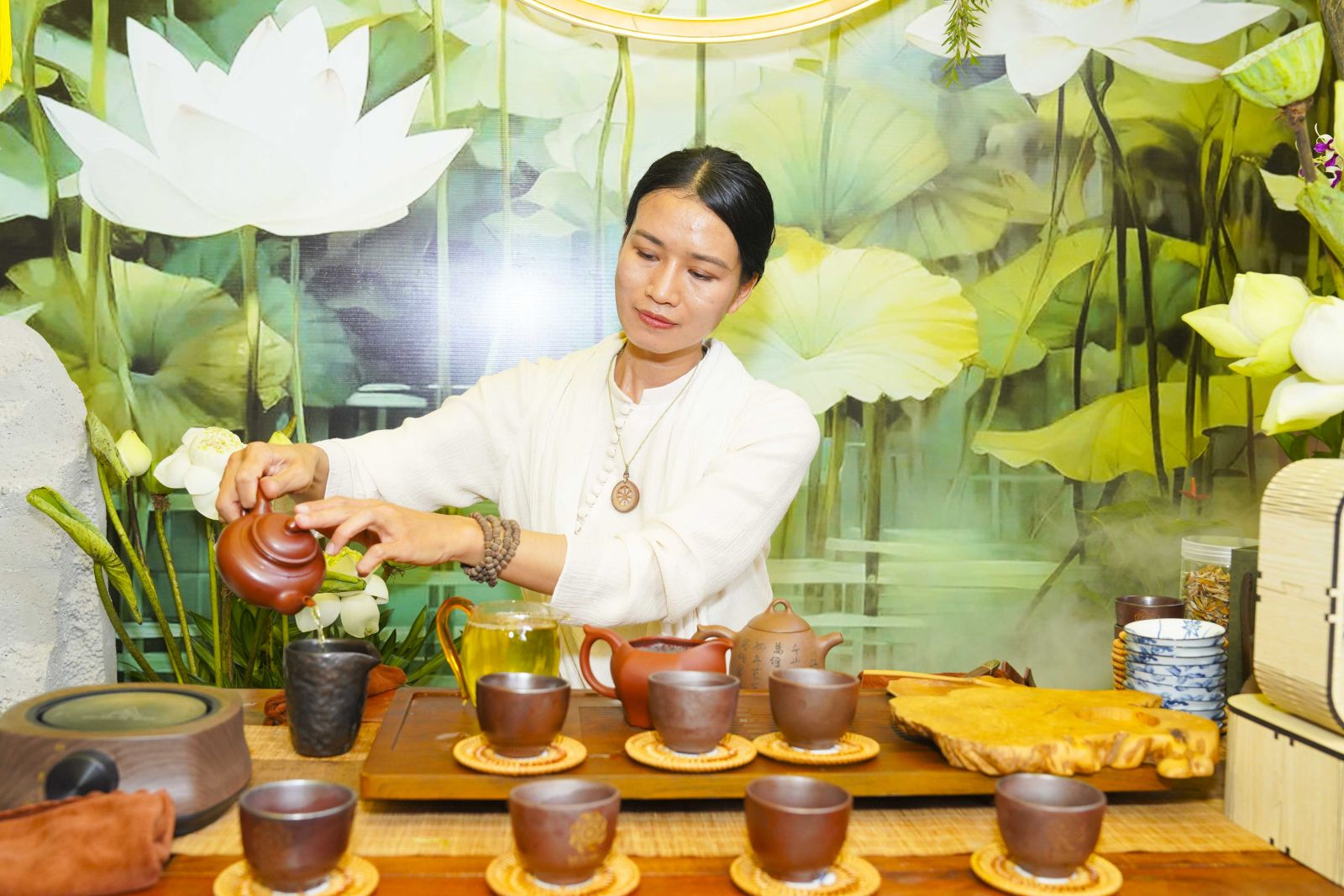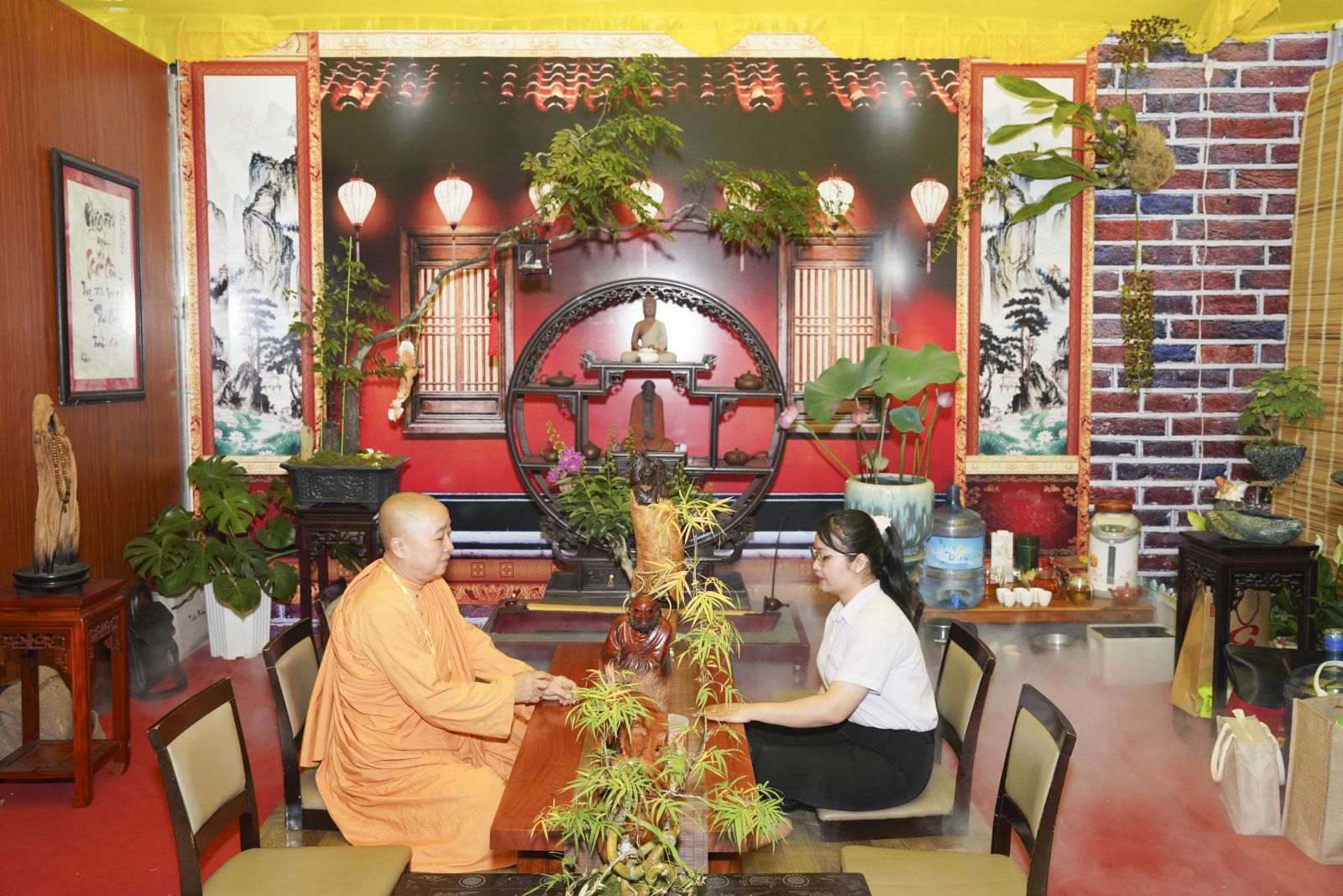 Không gian triển lãm được thiết kế trang nhã, mang đậm thiền vị, thể hiện tinh thần thanh tịnh, trí tuệ và hòa hợp của đạo Phật. Tổng thể được bố trí hài hòa, kết hợp giữa mỹ thuật truyền thống và cách trình bày hiện đại, tạo nên một không gian trầm lắng, sâu sắc, giúp người tham quan cảm nhận rõ nét chiều sâu tâm linh cũng như giá trị văn hóa mà Phật giáo đã vun bồi trong đời sống xã hội.