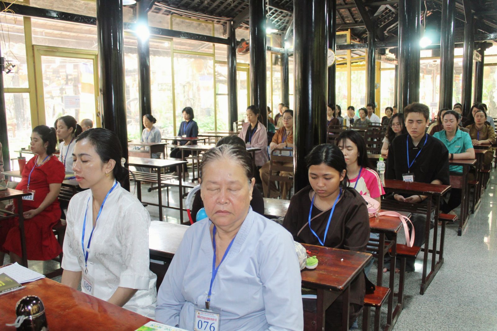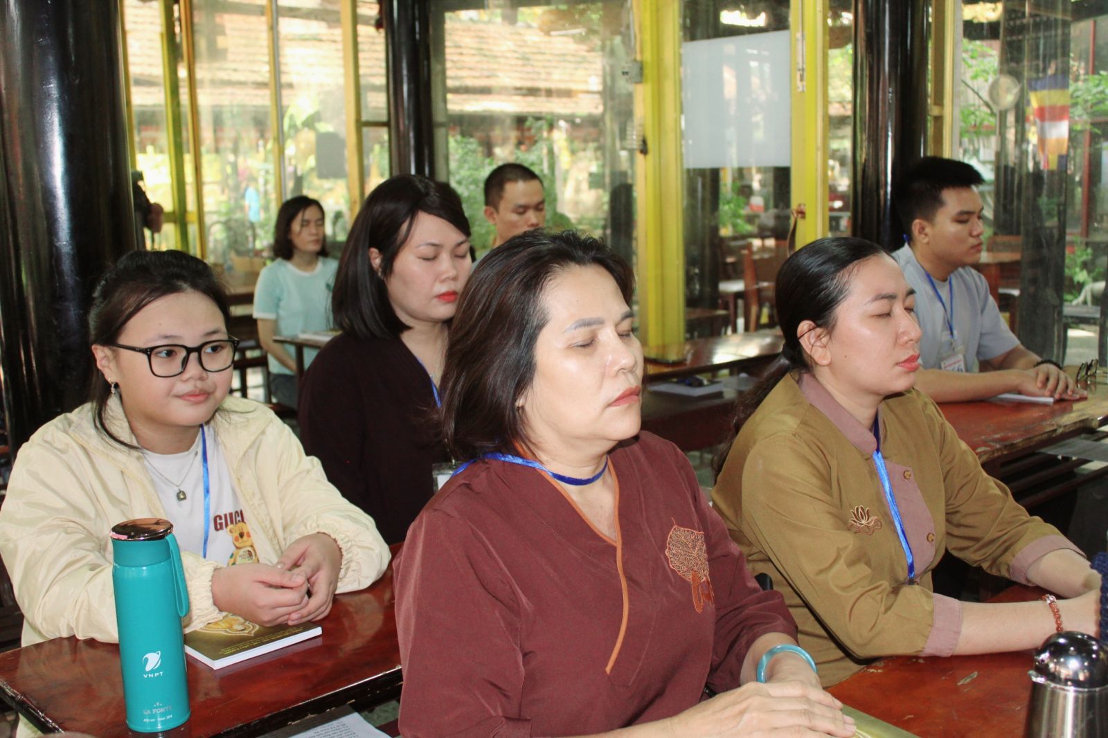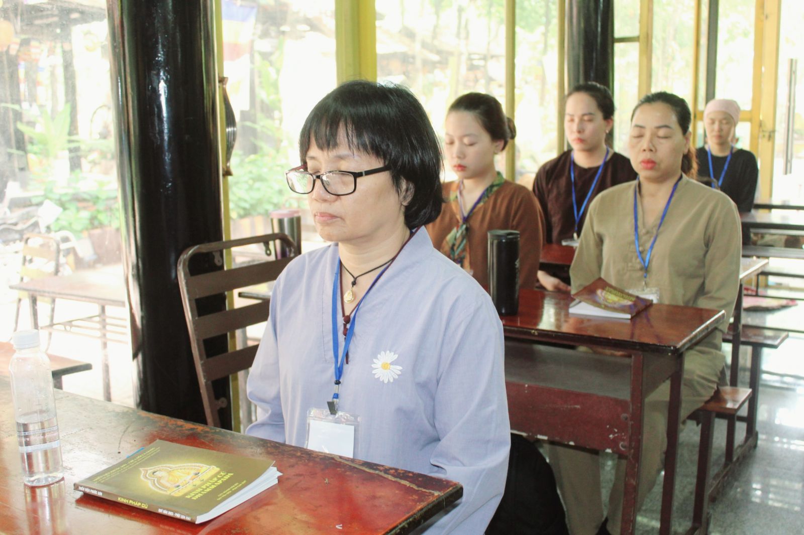 Sau 20 phút tọa thiền, hòa thượng Thích Bửu Chánh - Phó thường trực ban trị sự GHPGVN tỉnh Đồng Nai; trụ trì TV Phước Sơn; trưởng ban tổ chức khóa tu Kinh Pháp Cú, chia sẻ kinh nghiệm đã được vận dụng từ bản kinh Pháp Cú.