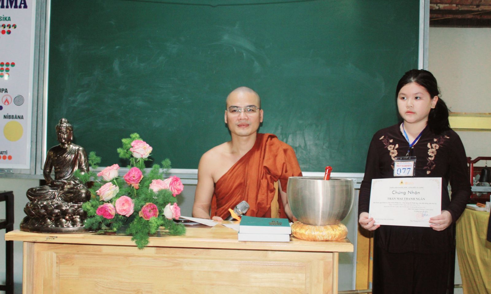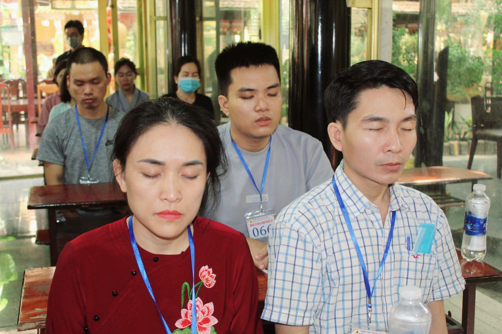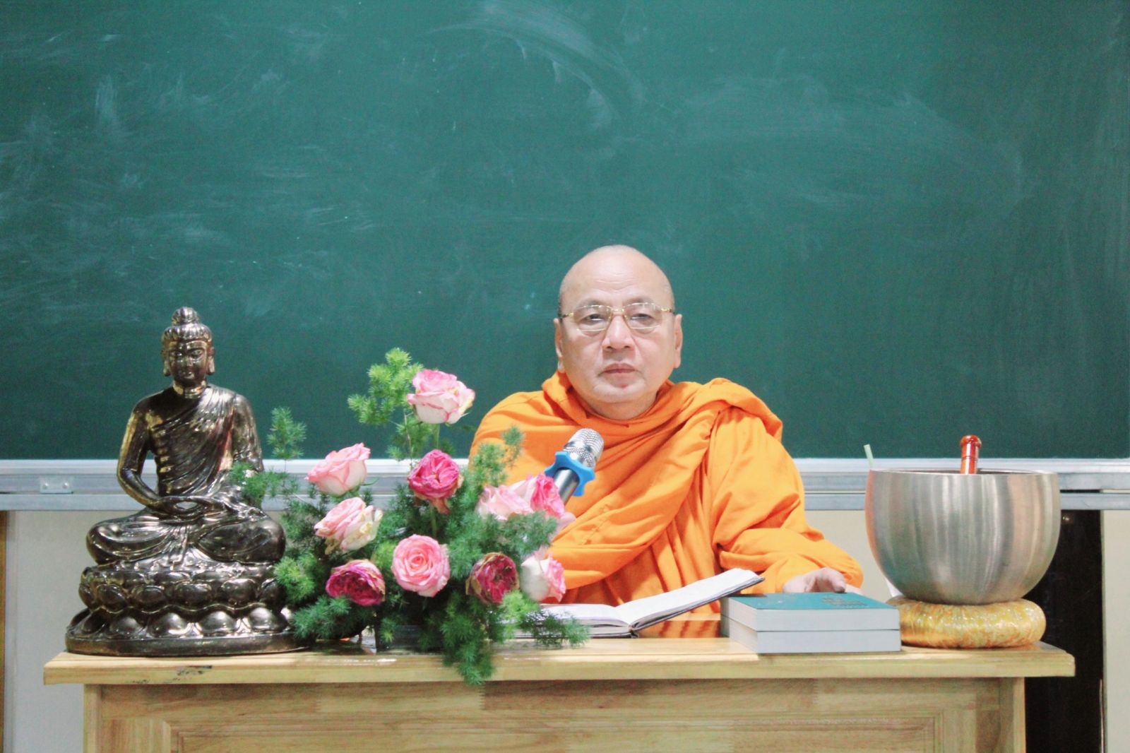 Sau 20 phút tọa thiền, hòa thượng Thích Bửu Chánh - Phó thường trực ban trị sự GHPGVN tỉnh Đồng Nai; trụ trì TV Phước Sơn; trưởng ban tổ chức khóa tu Kinh Pháp Cú, chia sẻ kinh nghiệm đã được vận dụng từ bản kinh Pháp Cú.