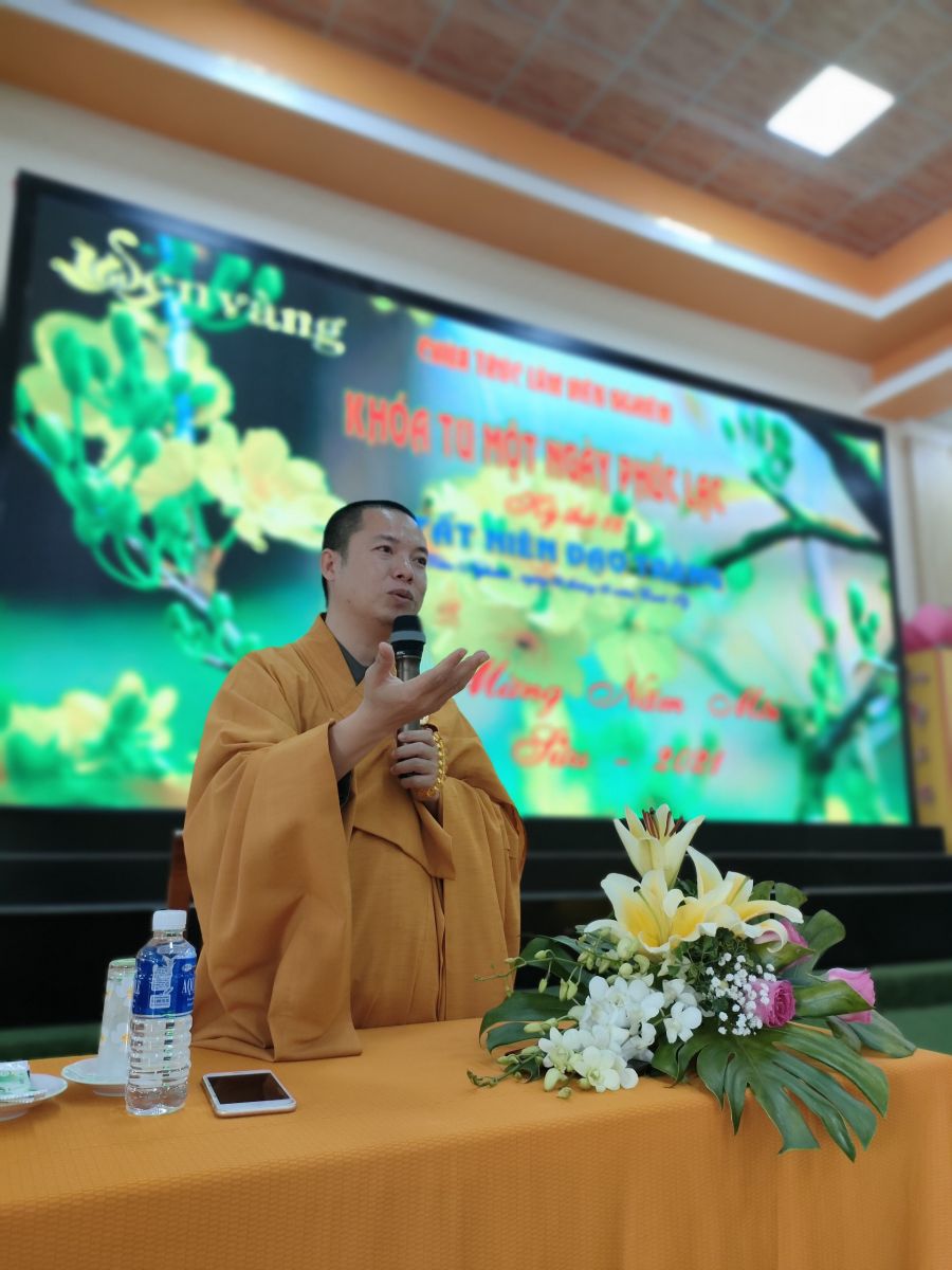 Đại Đức Thích Thiện Mỹ - Trụ trì chùa Trúc Lâm Viên Nghiêm, Trưởng ban tổ chức Khóa tu Phúc Lạc từ bi ban bố đạo từ pháp nhũ và sách tấn tới hàng phật tử trong quá trình tu học năm 2021 sắp tới.