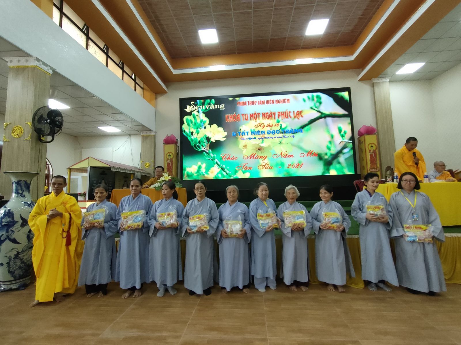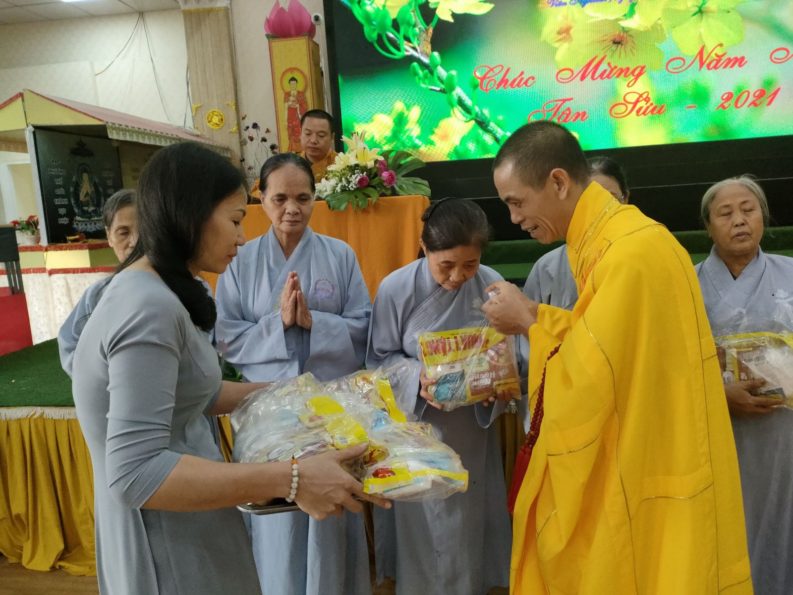 Cũng nhân dịp này, chư Tăng trao tặng quà đến quý Phật tử có công đức quý báu với những đóng góp lớn lao, hết lòng với các hoạt động Phật sự của Giáo hội, của chùa cũng như hoạt động thiện nguyện của Ban Văn hóa Phật giáo Sen Vàng. Tuy phần quà bé nhỏ nhưng chan chứa tình cảm, động viên của quý Ngài dành cho các phật tử.