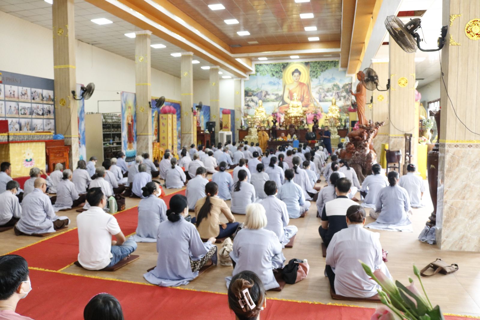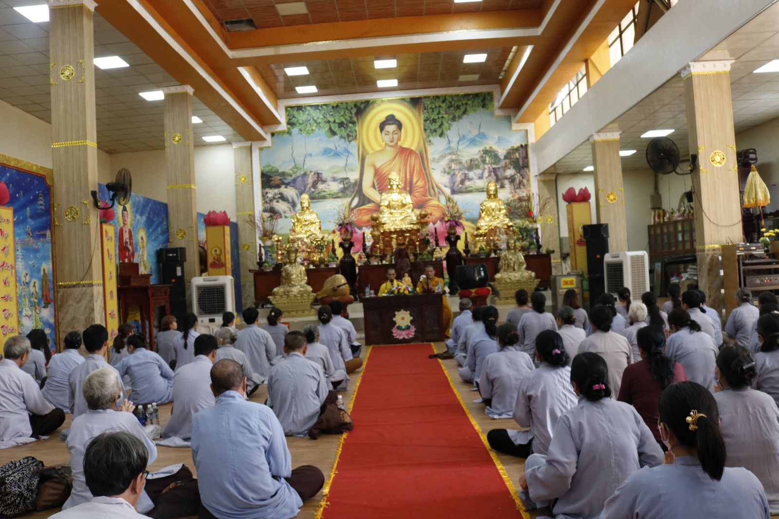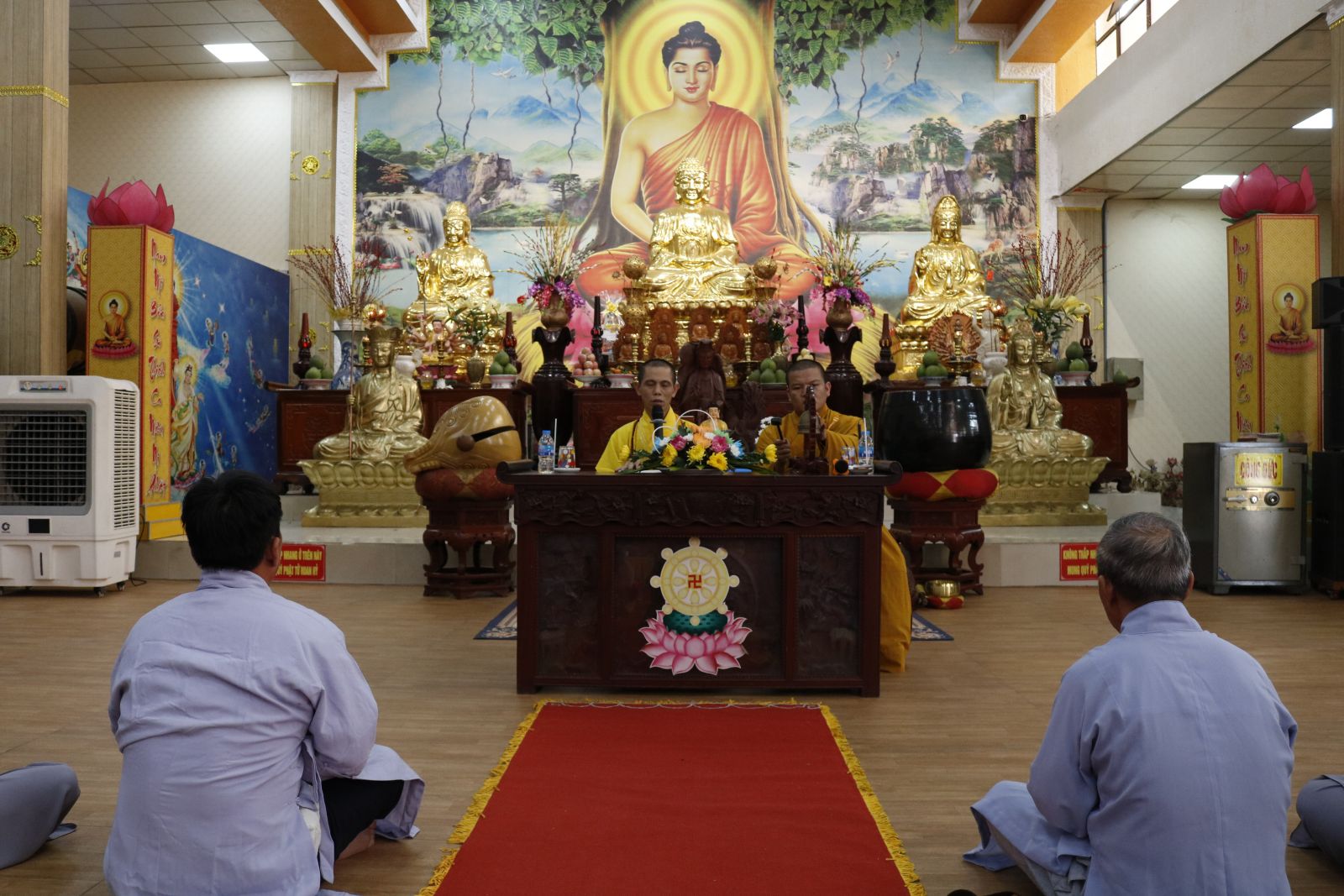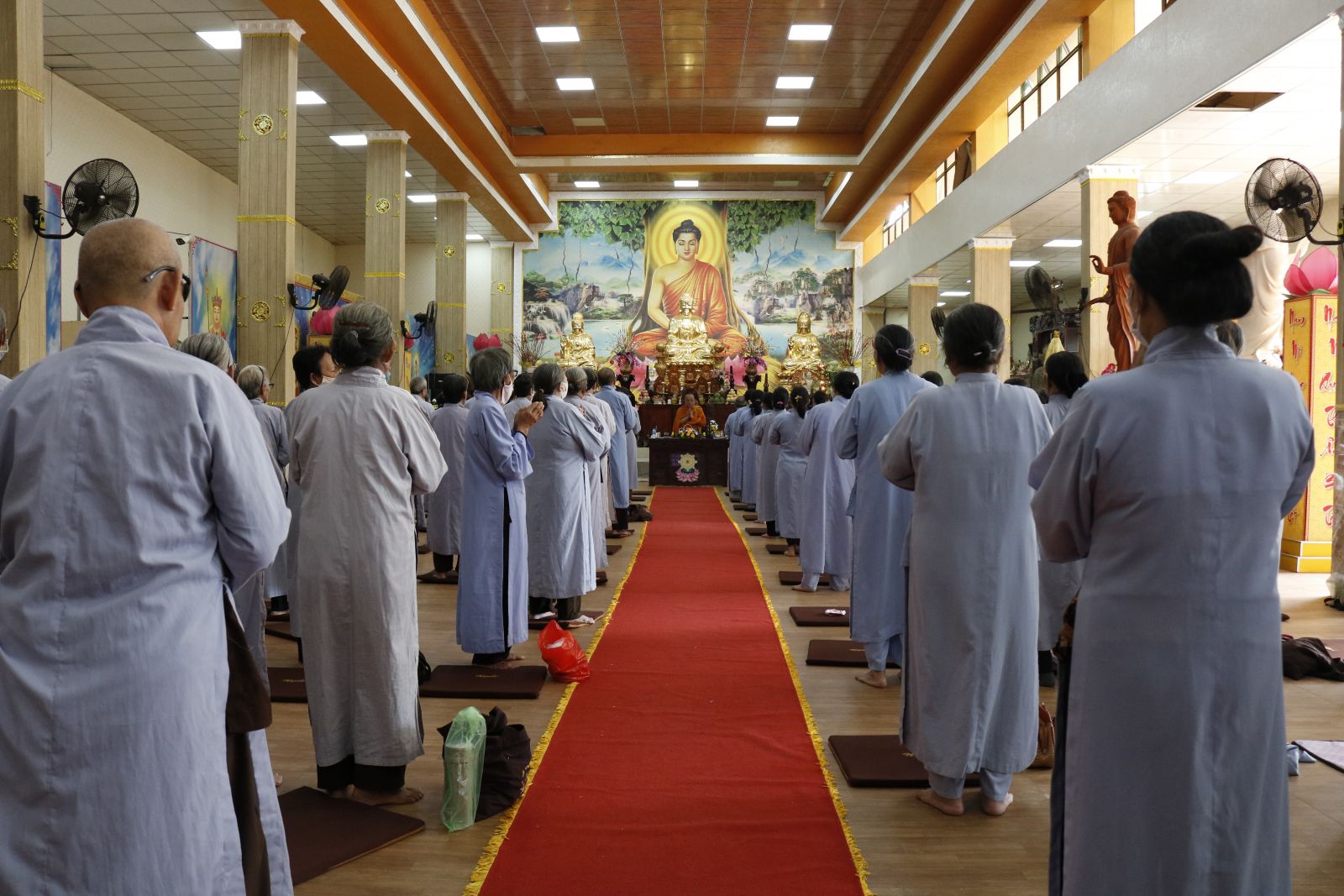 Sau khóa giảng, chư Tăng tại bổn tự hướng dẫn đạo tràng Phật tử tụng kinh, niệm Phật, kinh hành và cúng ngọ, thọ trai.