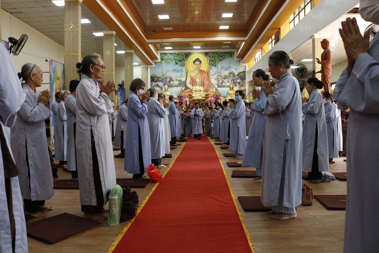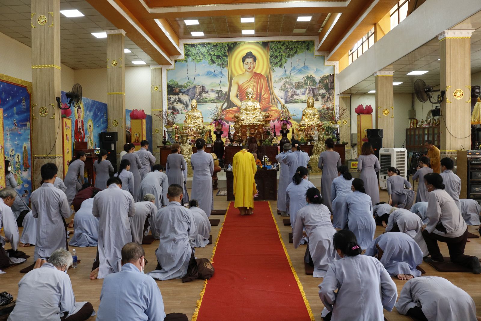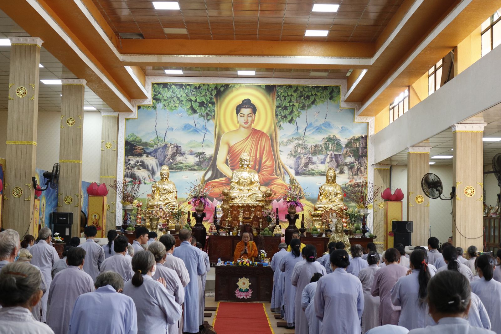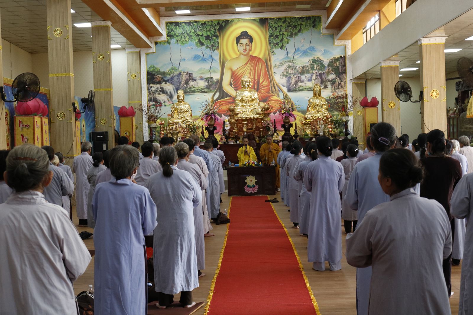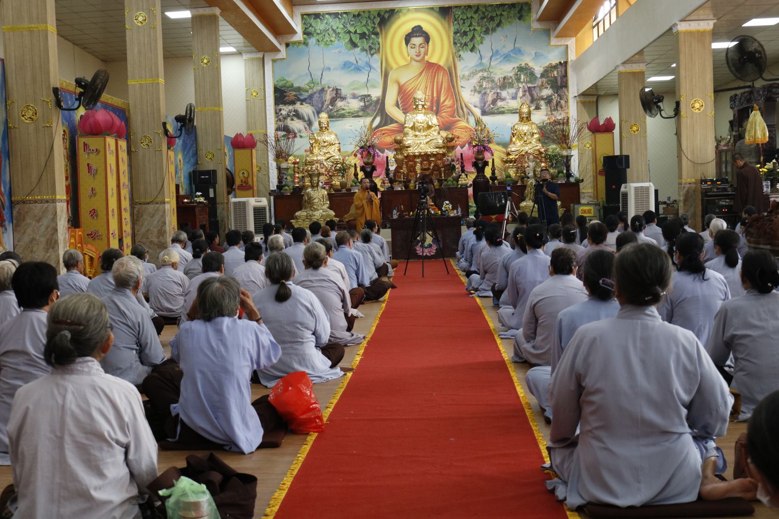 Sau khóa giảng, chư Tăng tại bổn tự hướng dẫn đạo tràng Phật tử tụng kinh, niệm Phật, kinh hành và cúng ngọ, thọ trai.