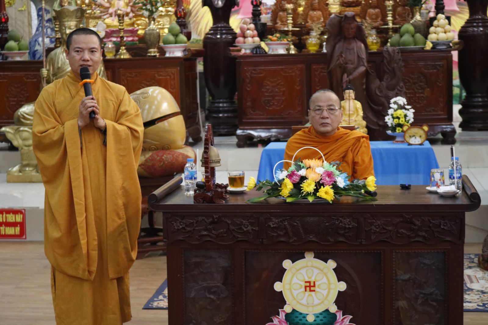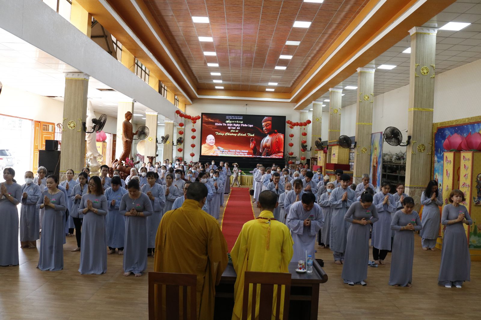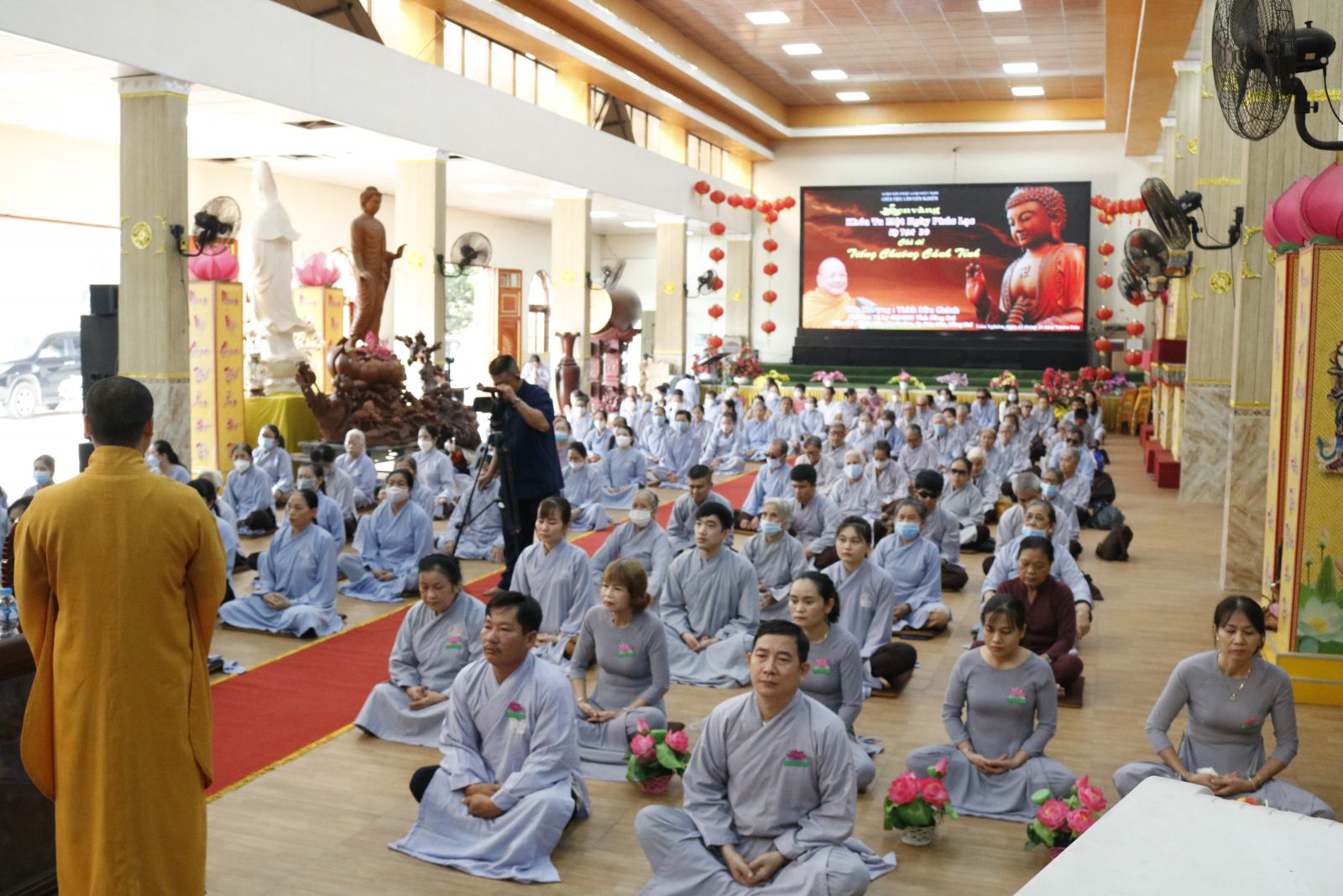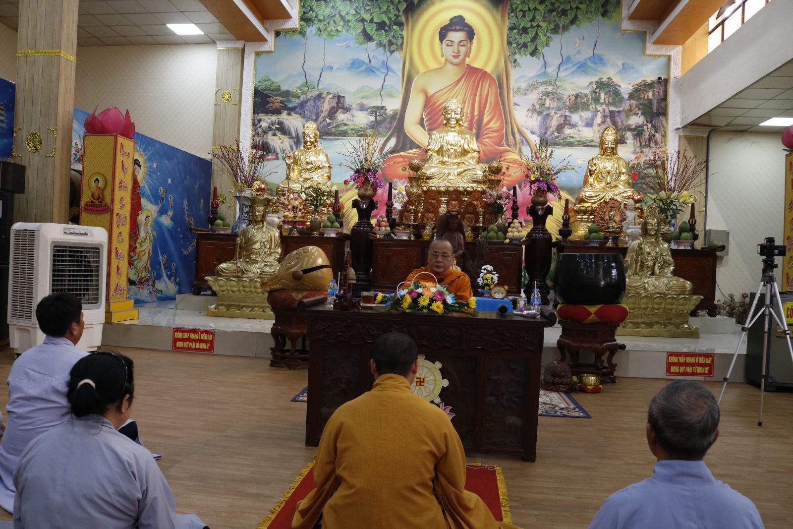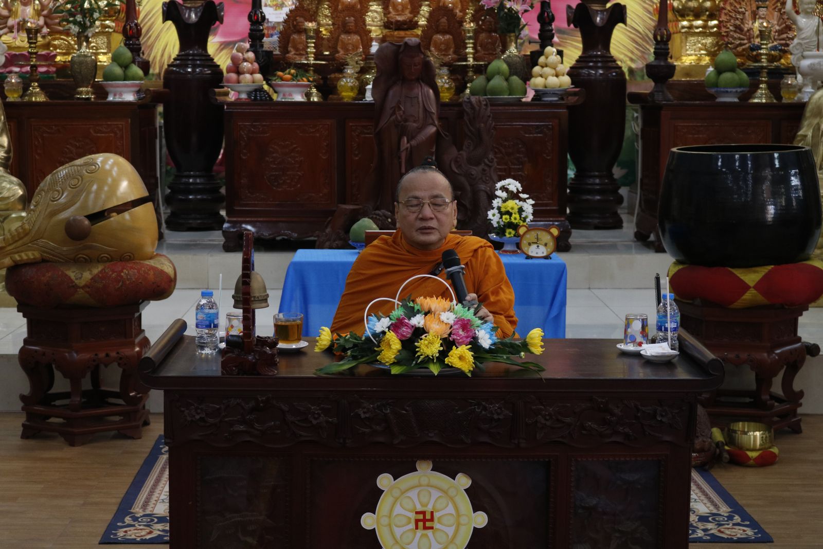 Sau lễ truyền giới, toàn thể đạo tràng Phật tử trang nghiêm cung thỉnh HT. Thích Bửu Chánh - Ủy viên thư ký HĐTS TW GHPGVN, Phó ban thường trực BTS GHPGVN tỉnh Đồng Nai, quang lâm thuyết giảng với chủ đề: “Tiếng Chuông Cảnh Tỉnh”.