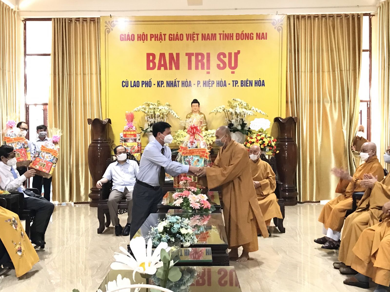Buổi thăm và chúc mừng được diễn ra tại Chùa Tỉnh Hội – Trụ sở BTS GHPGVN tỉnh Đồng Nai. Đón tiếp đoàn lãnh đạo tỉnh ủy có HT. Thích Thiện Đạo – cố vấn BTS GHPGVN tỉnh Đồng Nai; HT. Thích Nhật Quang - Ủy viên thường trực HĐTS, trưởng ban Ban Trị sự GHPGVN tỉnh Đồng Nai; TT. Thích Huệ Khai – Phó thường trực BTS GHPGVN tỉnh; HT. Thích Liêm Chính – Phó Ban Trị sự, Trưởng ban Hoằng Pháp GHPGVN tỉnh; HT. Thích Phước Tú – Phó Ban Trị sự, Trưởng ban Nghi lễ GHPGVN tỉnh; HT. Thích Minh Ngạn – Phó Ban trị sự, Trưởng Ban Kiểm Soát GHPGVN tỉnh; HT. Thích Bửu Chánh – Phó ban kiêm chánh thư ký BTS GHPGVN tỉnh; TT. Thích Huệ Sanh – Phó Ban trị sự, Trưởng ban Phật giáo quốc tế GHPGVN tỉnh; TT. Thích Thông Hạnh – Trưởng ban văn hóa GHPGVN tỉnh; TT. Thích Đạo Huy – Phó thư ký Chánh văn phòng BTS GHPGVN tỉnh; ĐĐ. Thích Thiện Mỹ - Trưởng Ban Thông Tin Truyền Thông GHPGVN tỉnh.