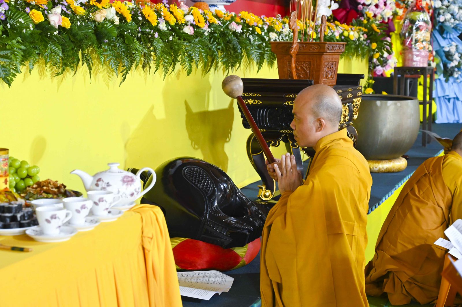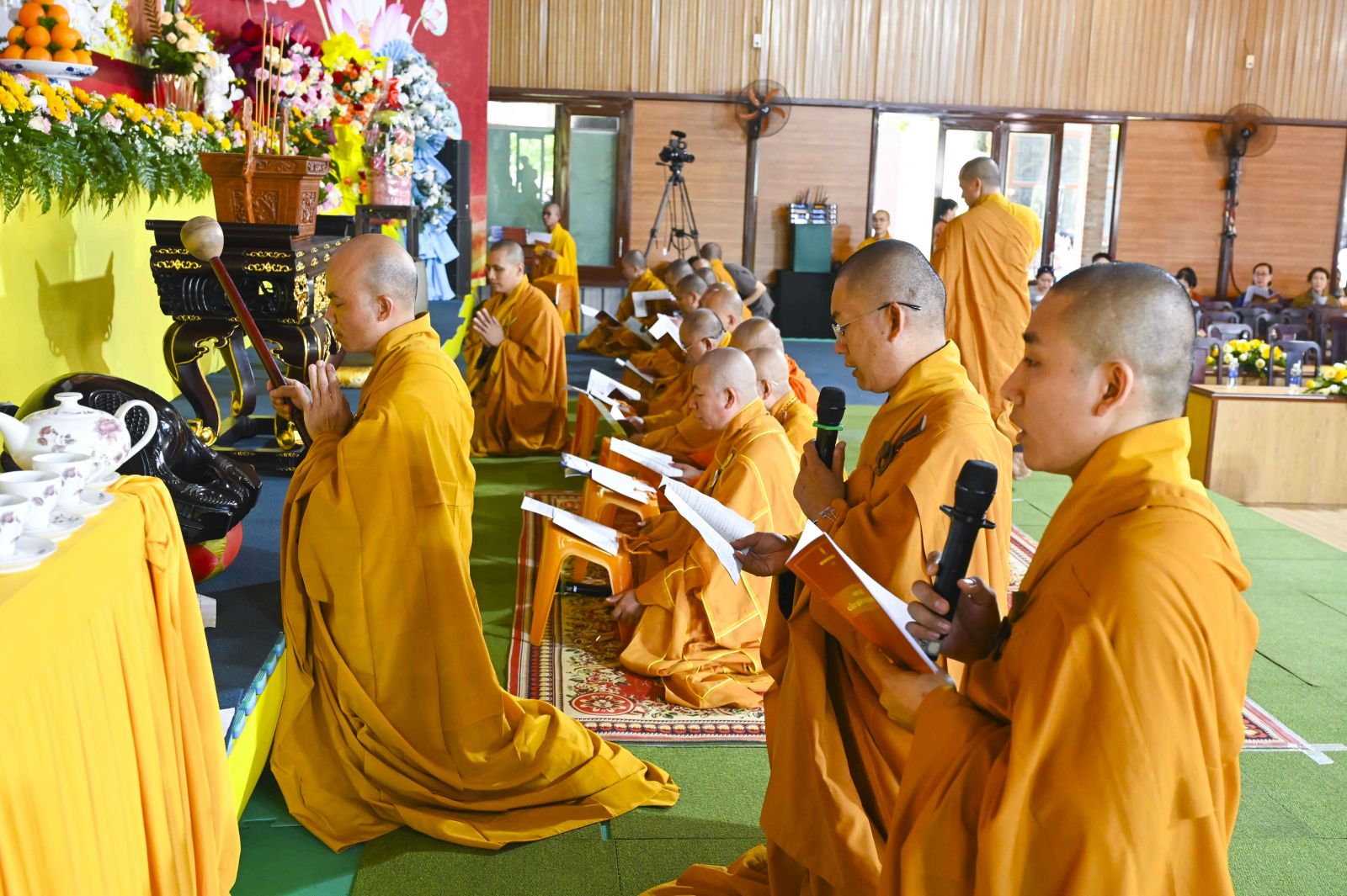 Trong phần nghi lễ chính của đàn tràng Cầu Quốc Thái Dân An, chư Tôn đức đã trang nghiêm trì tụng kinh điển, xưng tán hồng danh chư Phật, cầu nguyện cho quốc thái dân an, mưa thuận gió hòa, đất nước thanh bình, nhân dân ấm no, đạo pháp trường tồn. Từng câu kinh, tiếng mõ, lời kệ vang lên nhịp nhàng, sâu lắng, lan tỏa năng lượng an lành đến muôn nơi.