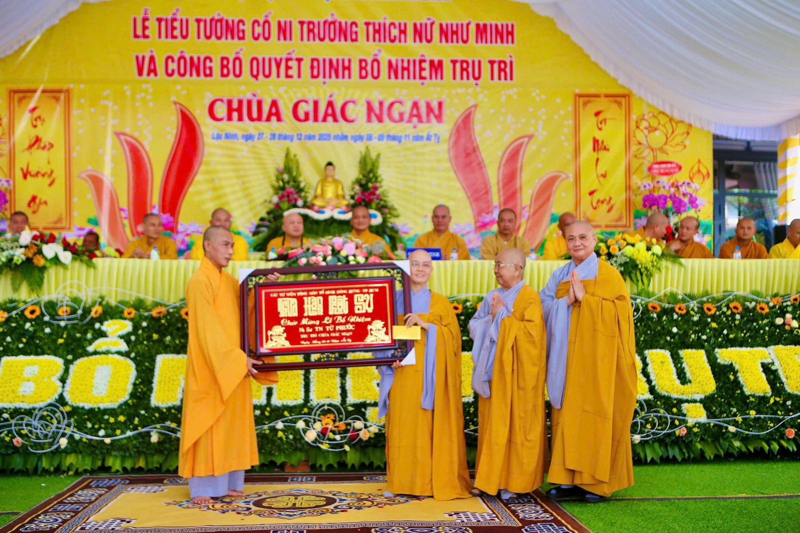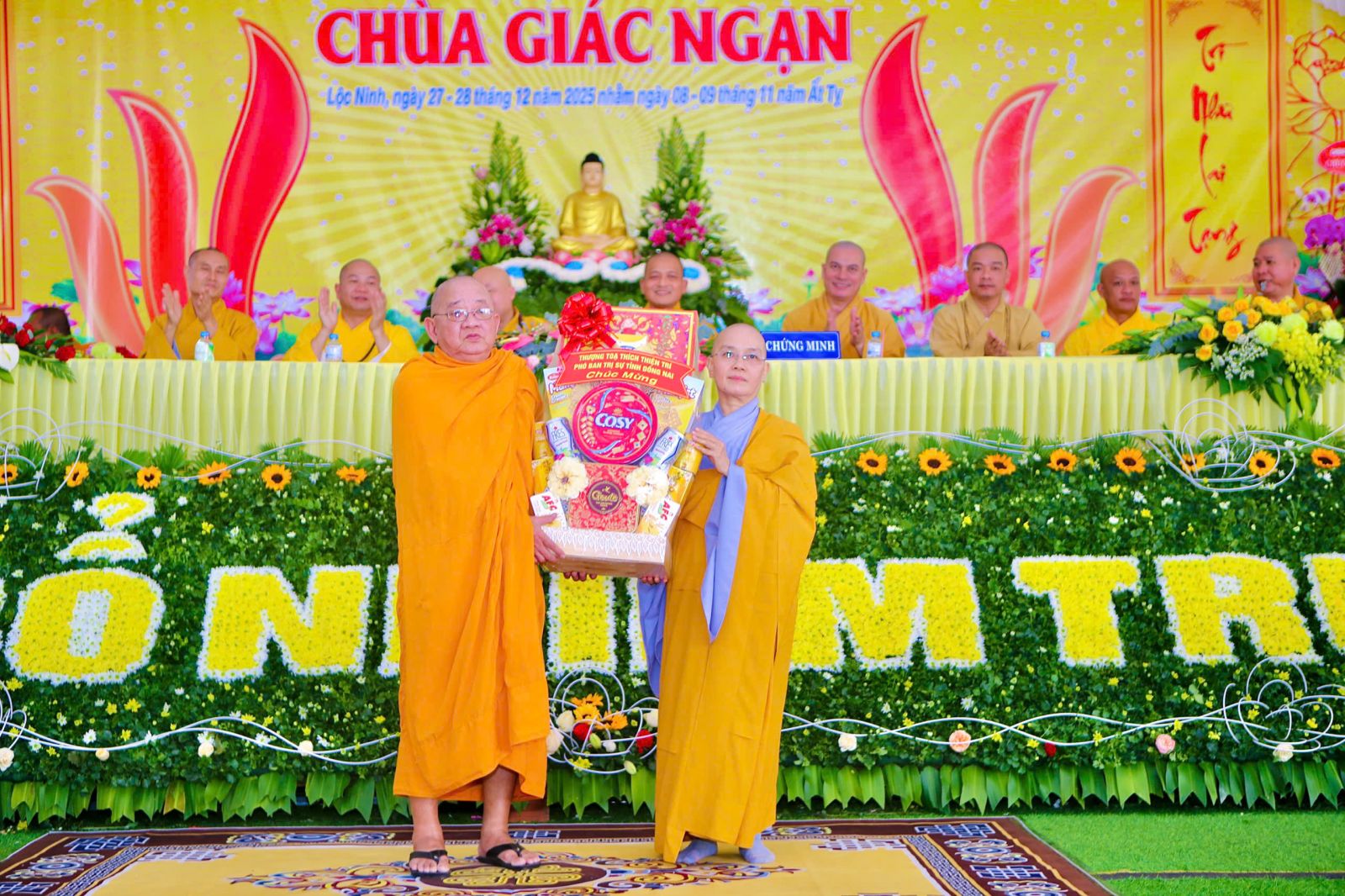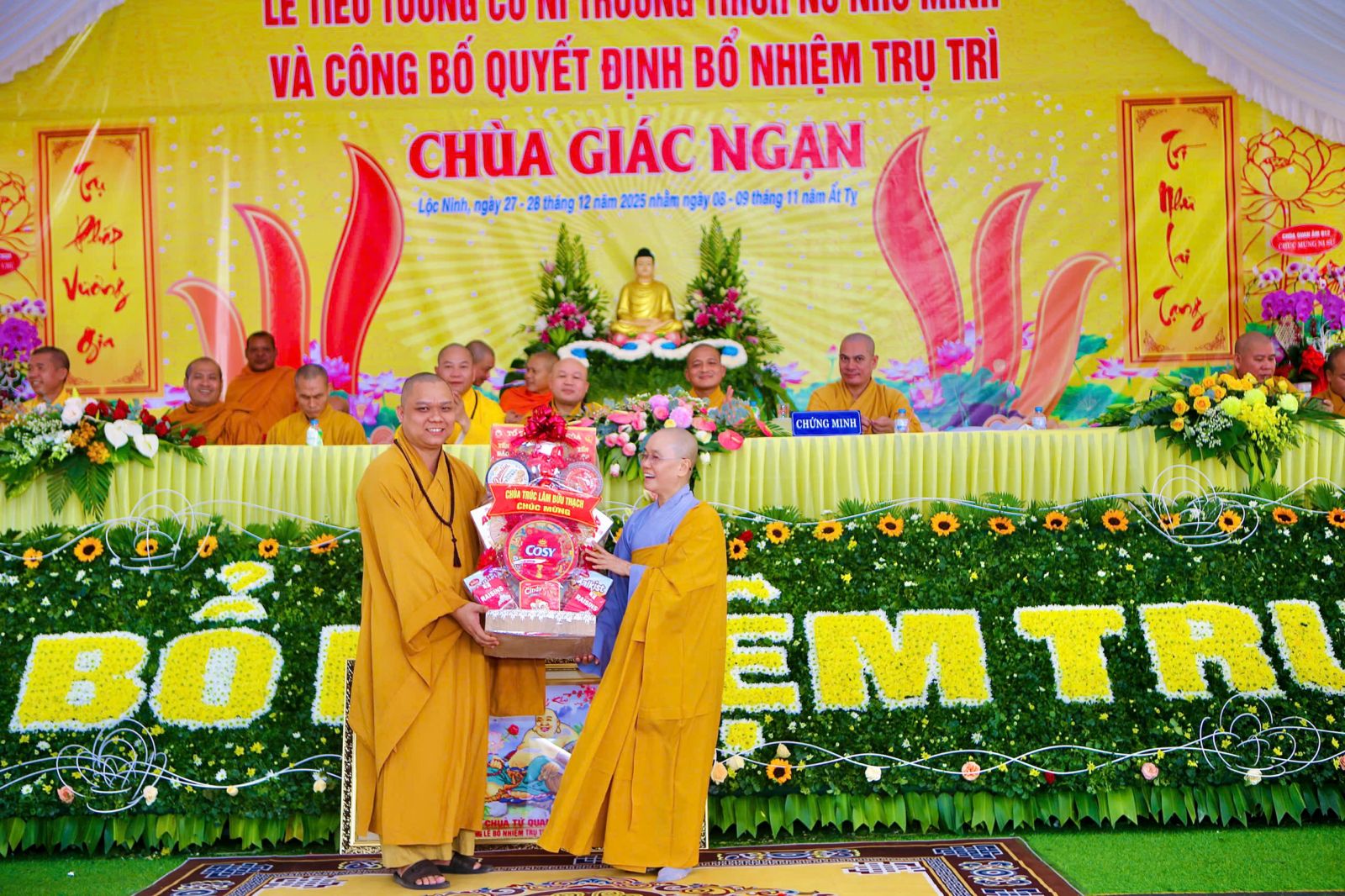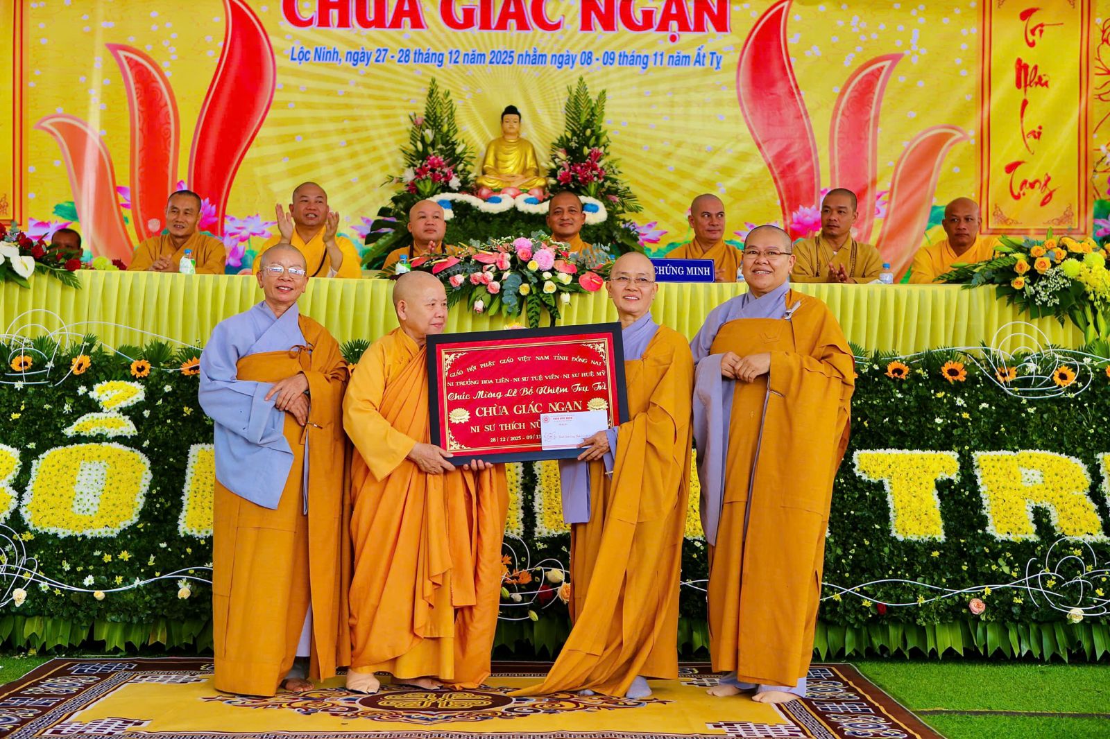Thay mặt Ban Chứng minh, Hoà Thượng Thích Cường UV HĐTS, Phó trưởng ban Thường trực ban đạo từ, xin chúc mừng Ni Sư Thích Nữ Từ Phước chính thức có cơ sở hành đạo tại Chùa Giác Ngạn, xã Lộc Ninh. Hoà Thượng cũng gửi lời khuyến tấn đến Ni Sư Thích Nữ Từ Phước tân trụ trì, mong Ni Sư luôn đồng hành cùng chính quyền trong các công tác an sinh xã hội, tích cực hỗ trợ những hoàn cảnh khó khăn, góp phần xây dựng đời sống văn hóa, tinh thần tại khu dân cư nơi chùa Giác Ngạn tọa lạc. Đồng thời, Hoà thượng cũng bày tỏ mong muốn các cấp chính quyền tiếp tục quan tâm, hỗ trợ và tạo điều kiện thuận lợi để Ni Sư Thích Nữ Từ Phước hoàn thành tốt các Phật sự được giao.