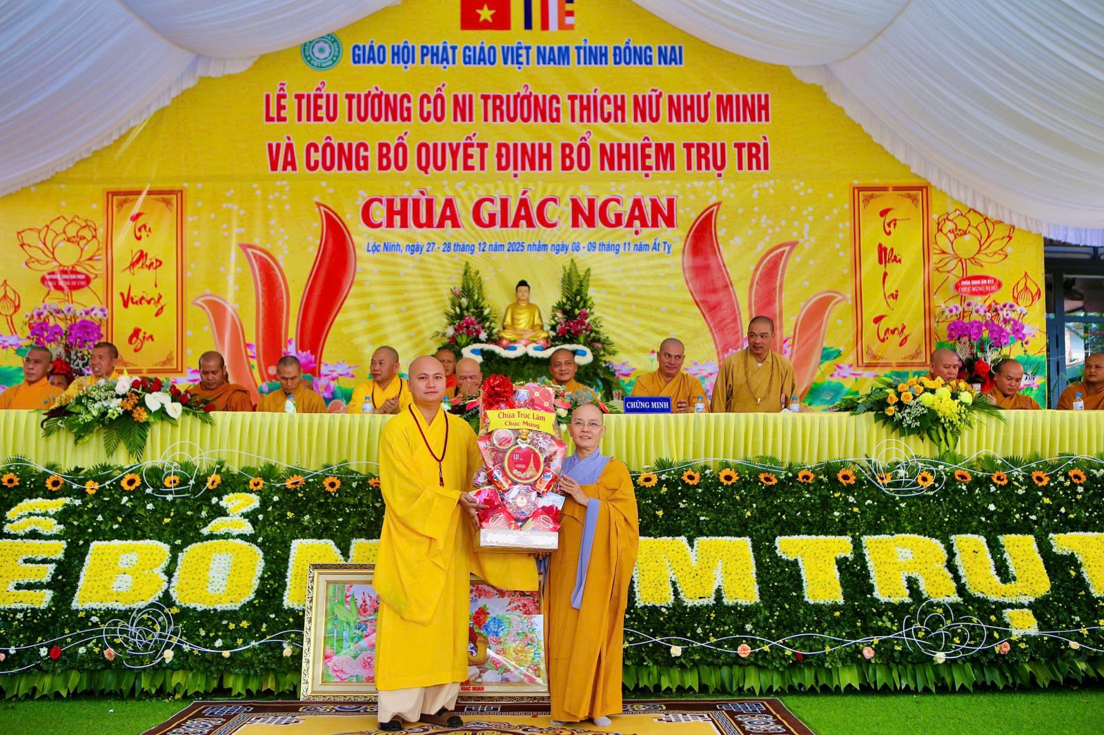 Trong niềm hoan hỷ của toàn thể đại chúng, thay mặt Ban Trị sự GHPGVN tỉnh Đồng Nai, TT Thích Pháp Quyền UV HĐTS trung ương GHPGVN phó BTS kiêm Chánh thư ký Ban Trị sự Phật giáo tỉnh, đã đọc công bố Quyết định bổ nhiệm trụ trì chùa Giác Ngạn.