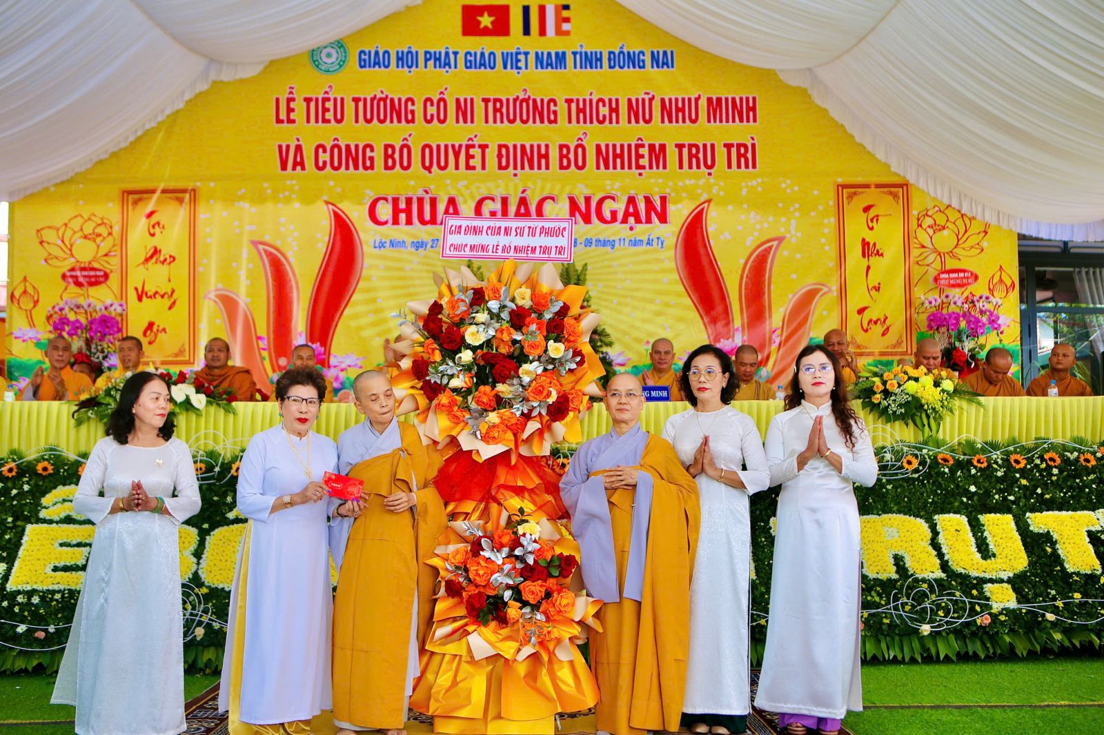 Về chư Tôn đức Ni có NT. Thích Nữ Nhật Khương – Ủy viên Thường trực HĐTS, Trưởng Phân ban Ni giới Trung ương GHPGVN; Ni trưởng Thích Nữ Từ Nhẫn – Phó trưởng Phân ban Ni giới kiêm Trưởng tiểu ban Kinh tế Tài chánh Phân ban Ni giới GHPGVN tỉnh Đồng Nai; chư Tôn đức Ban Trị sự GHPGVN tỉnh Đồng Nai, chư Tôn đức Ban Trị sự các tỉnh, thành phố lân cận, chư Tôn đức Tăng Ni huynh đệ môn phong pháp phái, Trụ trì các Tự viện cùng về tham dự buổi lễ.
