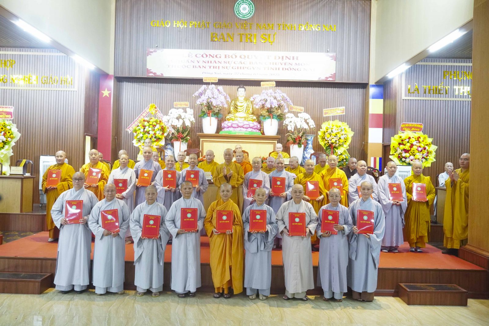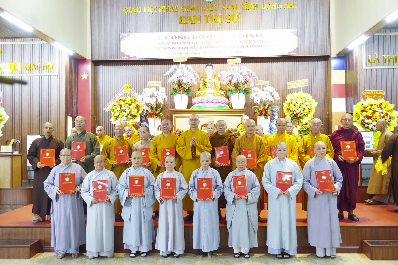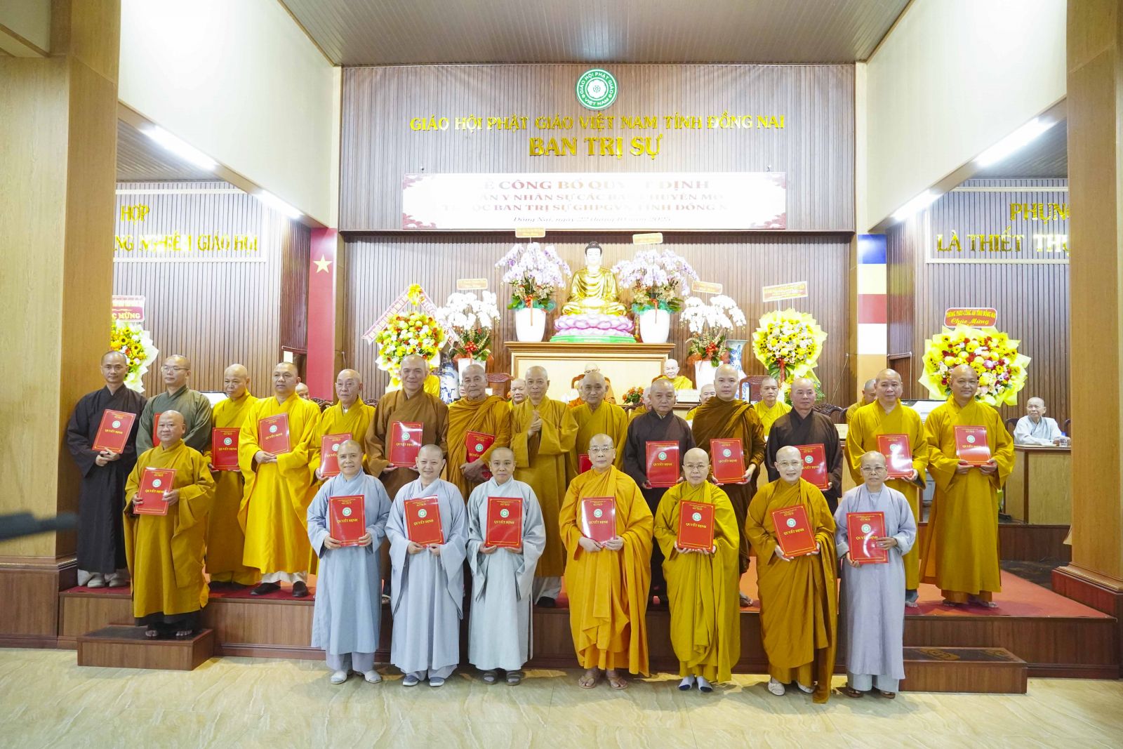 Trước tiên là quyết định tiếp nhận Trụ sở Ban Trị sự Phật giáo Thành phố Biên Hòa, Trụ sở Ban Trị sự Phật Giáo huyện Xuân Lộc, Trụ sở Ban Trị sự Phật giáo huyện Long Thành. Cùng với đó, Ban Trị sự Phật giáo tỉnh đã công cử TT. Thích Huệ Khai - Trưởng Ban Trị sự Phật giáo tỉnh, Trưởng Ban Quản Trị các tự viện và công cử TT. Thích Quảng Thành - Giám tự Chùa Đức Quang - phường Tân Triều, TT. Thích Huệ Quang - Giám tự Chùa Xuân Lộc - xã Xuân Lộc, ĐĐ. Thích Đạt ma Chí Hải - Giám tự Chùa Bửu Hưng - xã An Phước.