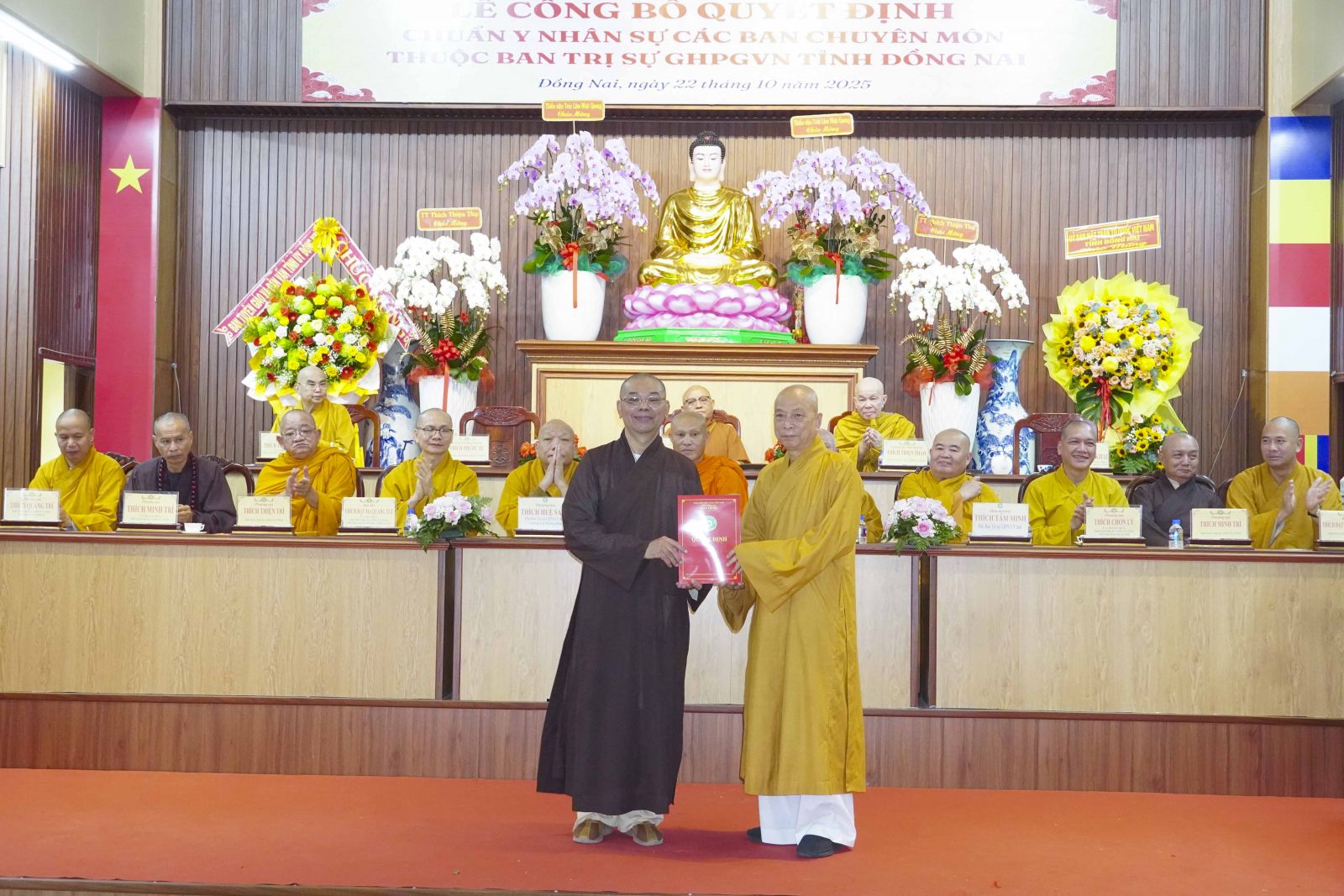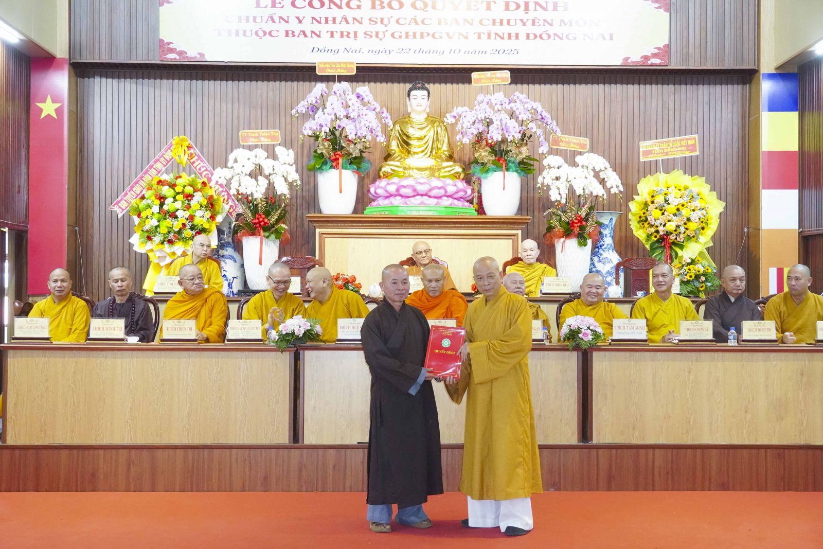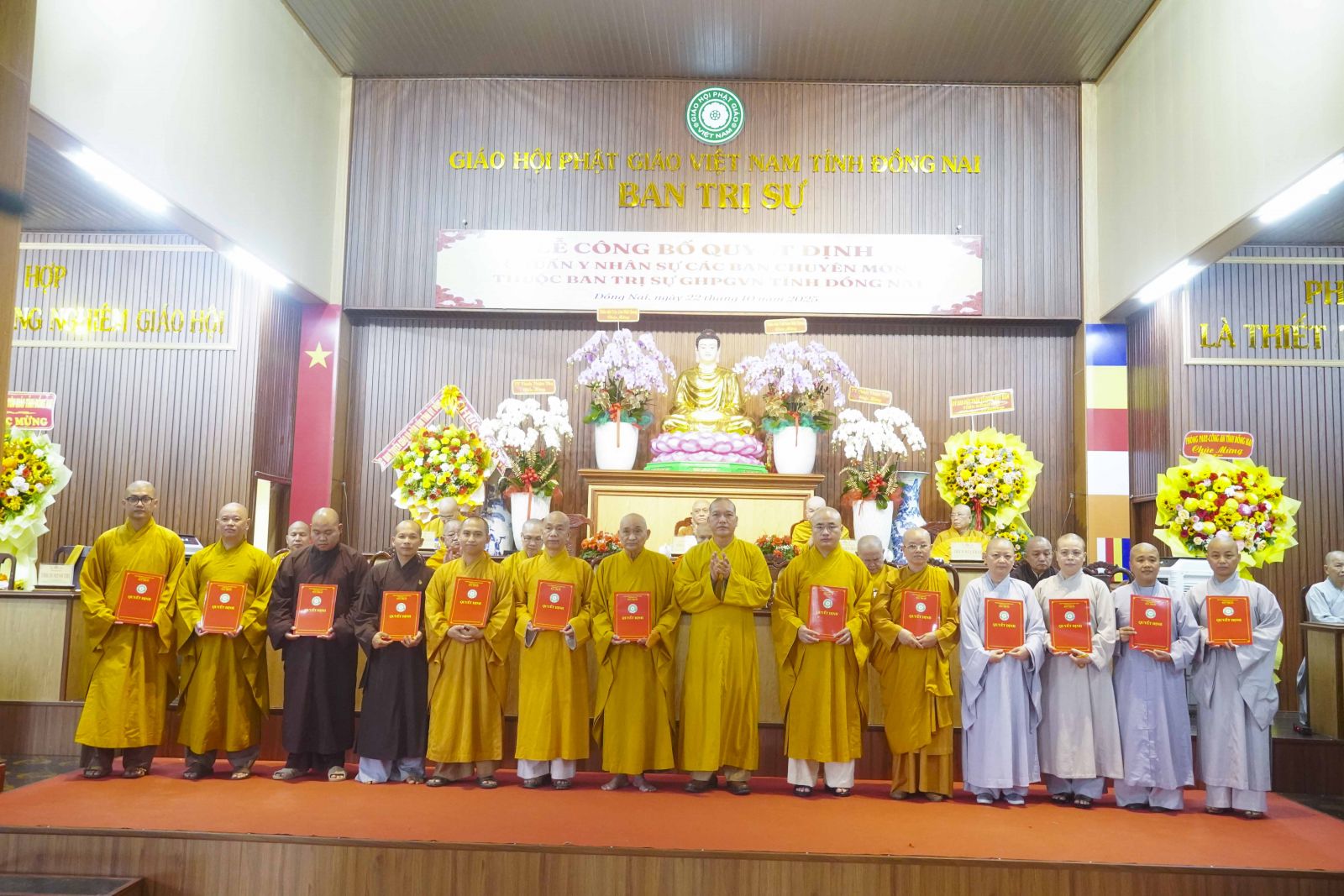 Trước tiên là quyết định tiếp nhận Trụ sở Ban Trị sự Phật giáo Thành phố Biên Hòa, Trụ sở Ban Trị sự Phật Giáo huyện Xuân Lộc, Trụ sở Ban Trị sự Phật giáo huyện Long Thành. Cùng với đó, Ban Trị sự Phật giáo tỉnh đã công cử TT. Thích Huệ Khai - Trưởng Ban Trị sự Phật giáo tỉnh, Trưởng Ban Quản Trị các tự viện và công cử TT. Thích Quảng Thành - Giám tự Chùa Đức Quang - phường Tân Triều, TT. Thích Huệ Quang - Giám tự Chùa Xuân Lộc - xã Xuân Lộc, ĐĐ. Thích Đạt ma Chí Hải - Giám tự Chùa Bửu Hưng - xã An Phước.