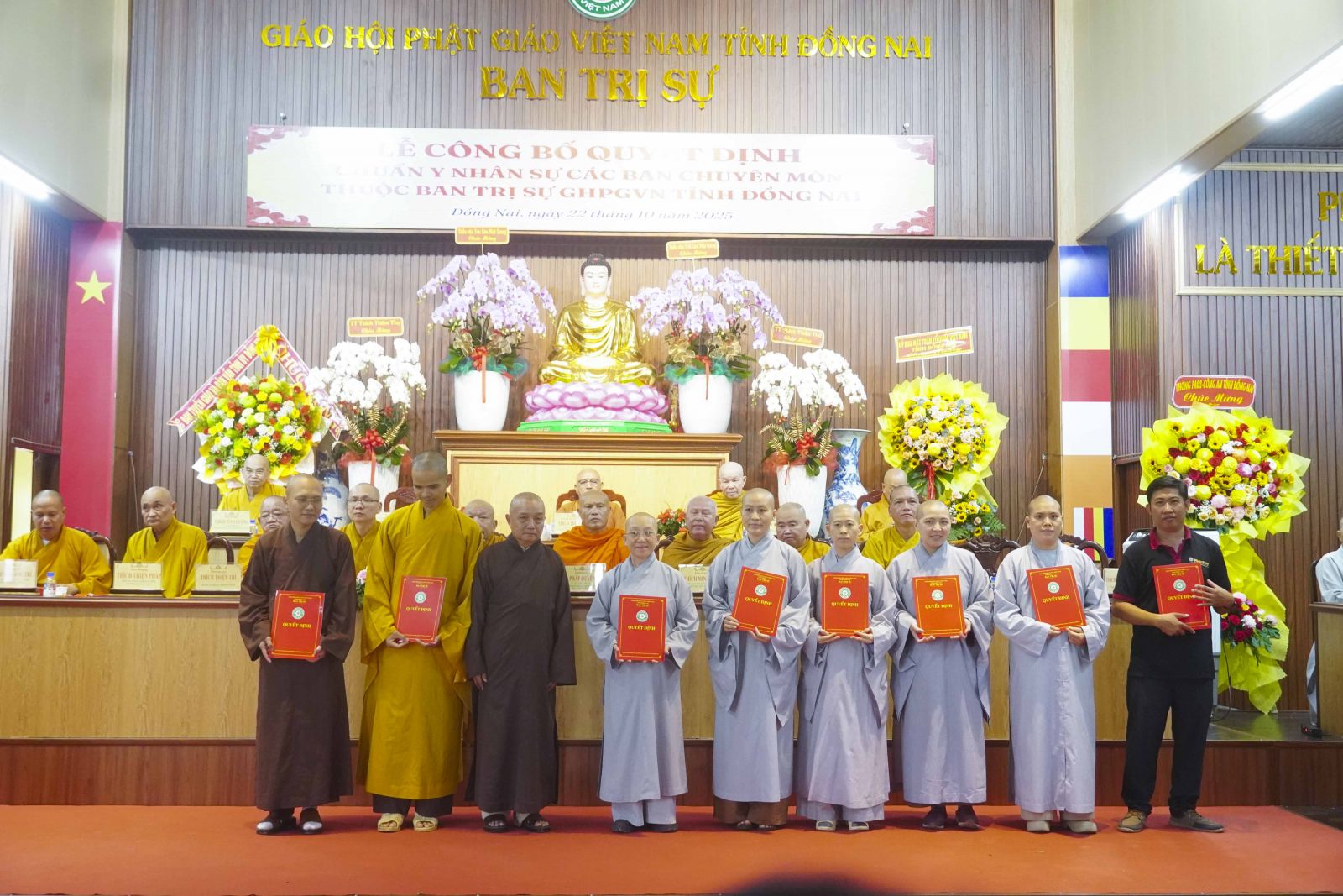 Tại buổi lễ, TT. Thích Huệ Khai - Trưởng Ban Trị sự Phật giáo tỉnh đã phát biểu khai mạc lễ công bố quyết định nhân sự các ban chuyên môn, là dấu mốc quan trọng trong tiến trình kiện toàn nhân sự, củng cố tổ chức, và triển khai các nhiệm vụ trọng tâm của Phật giáo Đồng Nai hướng đến đại hội đại biểu Phật giáo tỉnh nhiệm kỳ 2026-2031. Trải qua nhiều nhiệm kỳ, các ban chuyên môn đã đóng góp thiết thực tạo nên sự phát triển đồng bộ của Phật sự toàn tỉnh. Để tiếp tục nâng cao hiệu quả hoạt động, ban trị sự tỉnh đã xét duyệt và ban hành quyết định kiện toàn nhân sự các ban chuyên môn, đồng thời công cử các vị Tăng Ni đại diện tại xã phường thị trấn nhằm tăng cường sự kết nối giữa Giáo hội và chính quyền địa phương, tạo điều kiện thuận lợi cho công tác hướng dẫn Phật tử tu học, sinh hoạt tôn giáo thuần túy đúng pháp luật. Bên cạnh đó, việc phân công chư Tăng Ni đảm nhiệm vai trò giám tự các tự viện là bước đi cần thiết, thể hiện tinh thần trách nhiệm trong công tác quản lý sinh hoạt và hướng dẫn Tăng Ni Phật tử tu học đúng hiến chương và quy chế hoạt động ban Tăng sự trung ương Giáo hội. Từ nay đến đại hội đại biểu Phật giáo tỉnh Đồng Nai 2026, ban trị sự xác định 5 nhiệm vụ trọng tâm cần thực hiện".