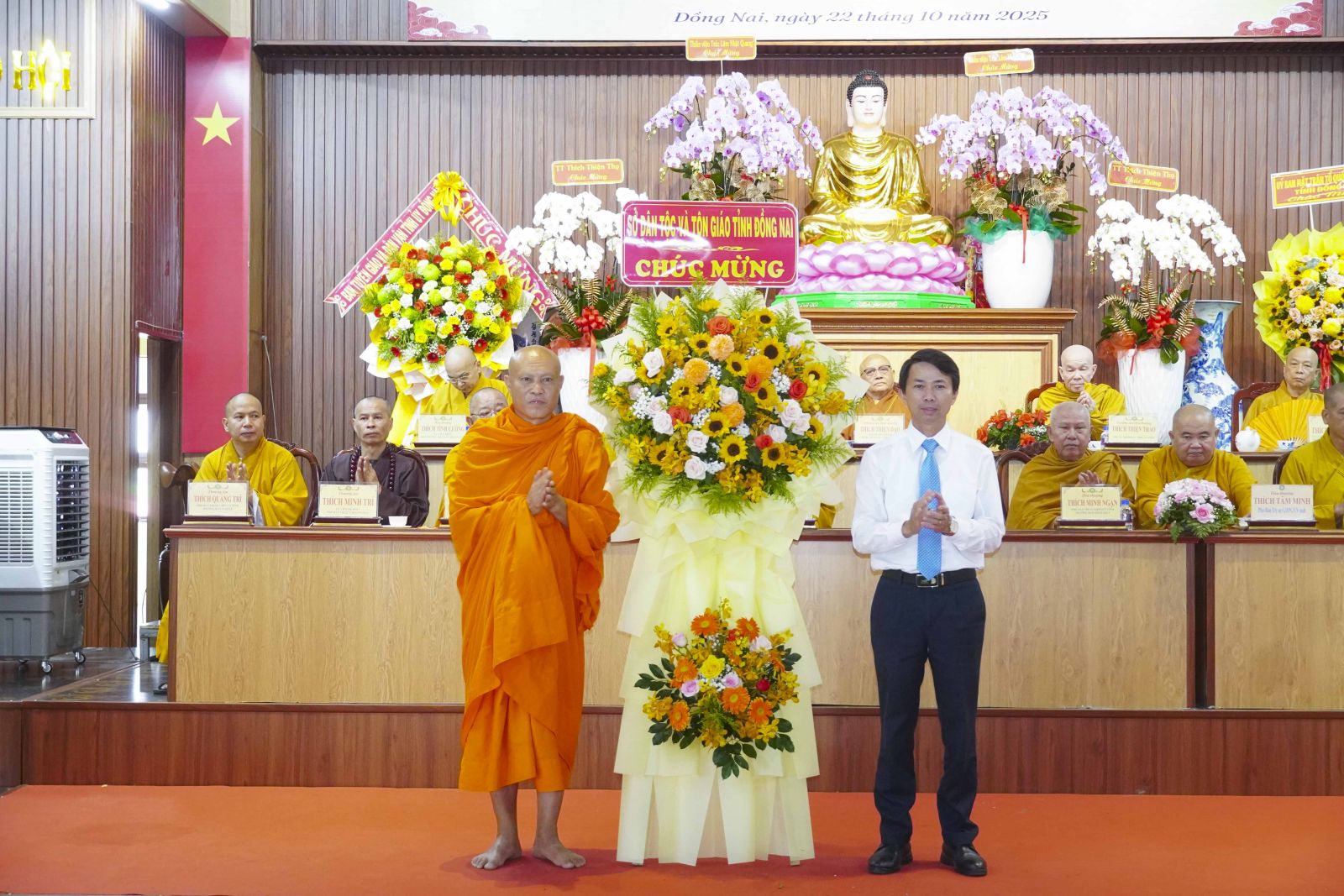 Đại diện các cấp lãnh đạo Chính quyền tỉnh Đồng Nai có ông Lê Thanh Tiến - Trưởng phòng Dân vận các cơ quan nhà nước Dân tộc và Tôn giáo ban Tuyên giáo và Dân vận Tỉnh ủy; ông Nguyễn Tấn Phú - Phó Chủ tịch UBMTTQVN tỉnh; ông Hoàng Cư - Phó Giám đốc Sở Dân tộc và Tôn giáo tỉnh; Thượng tá Nguyễn Văn Lương - Phó Trưởng phòng PA 02 Công an tỉnh Đồng Nai; bà Nguyễn Kim Bích Tuyên - Phó Chủ tịch UBND phường Trấn Biên; cùng đại diện các cấp tham dự buổi lễ.