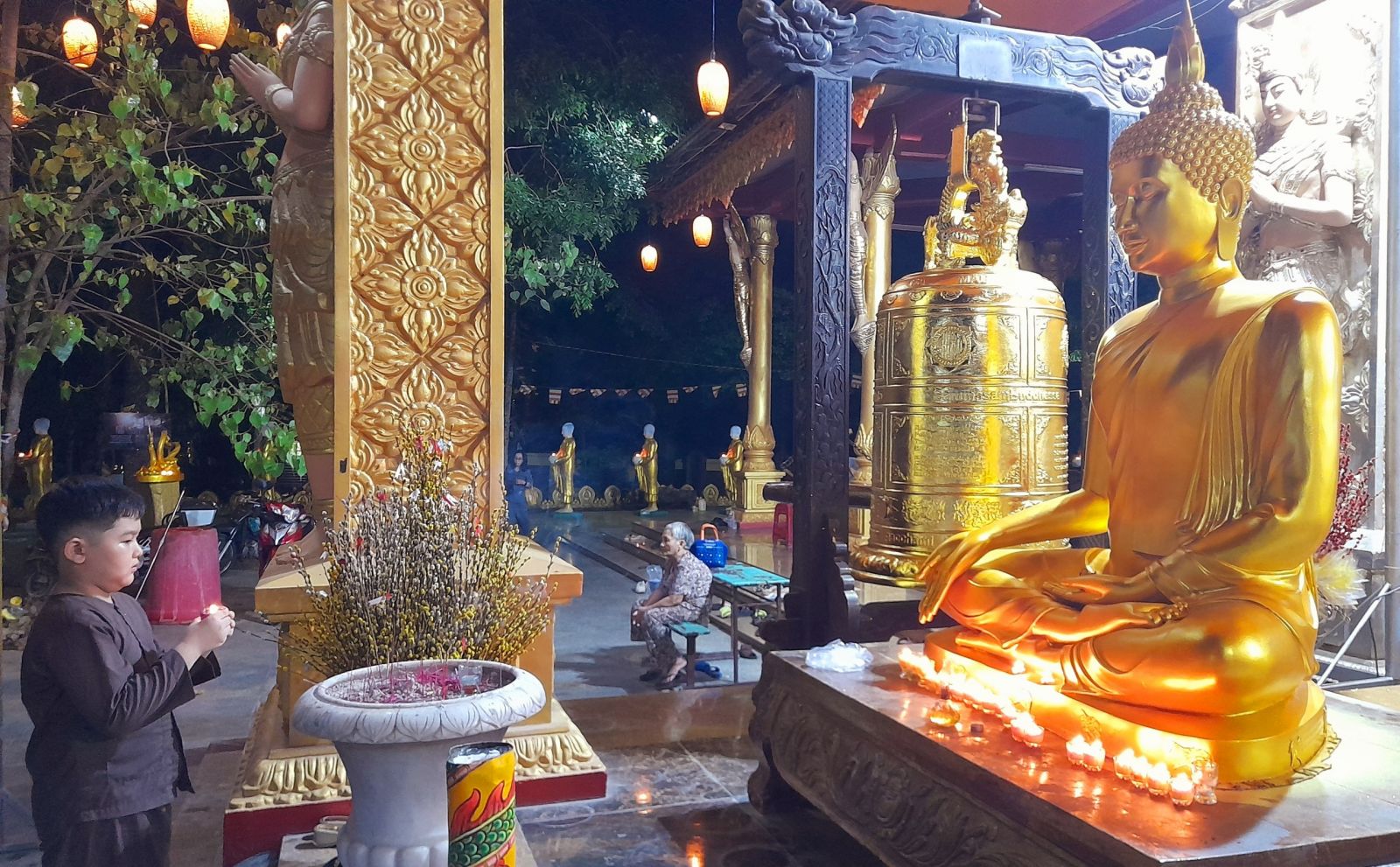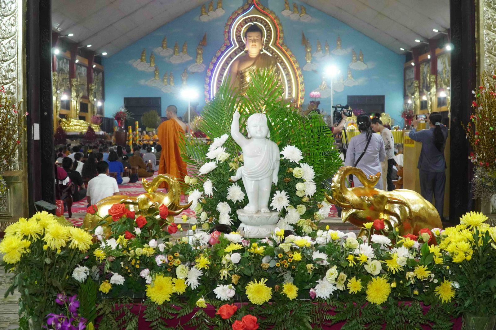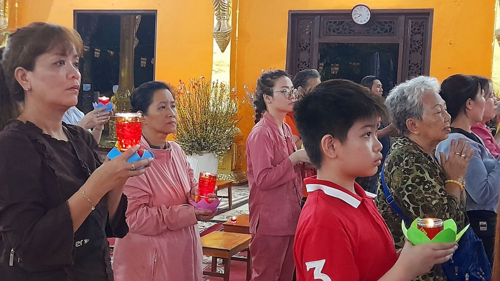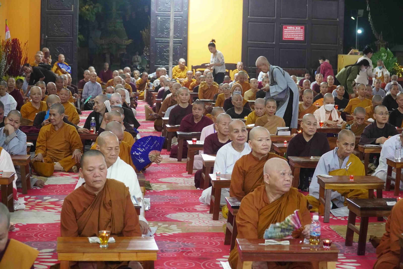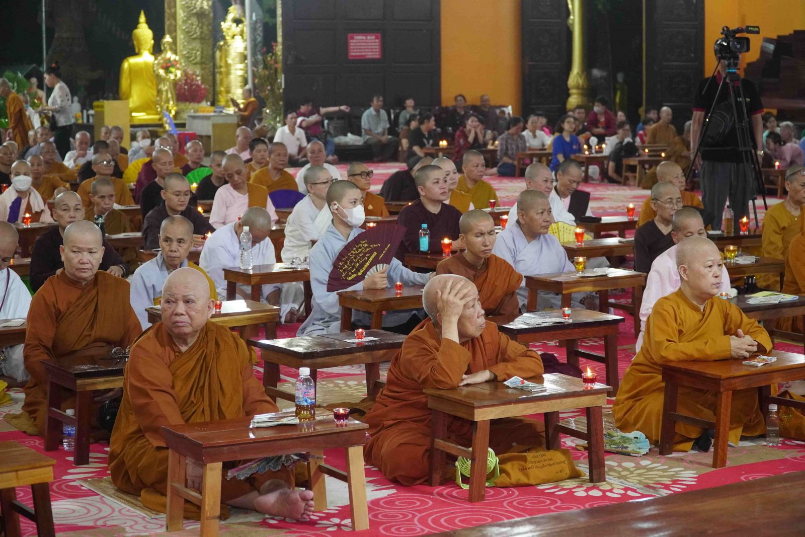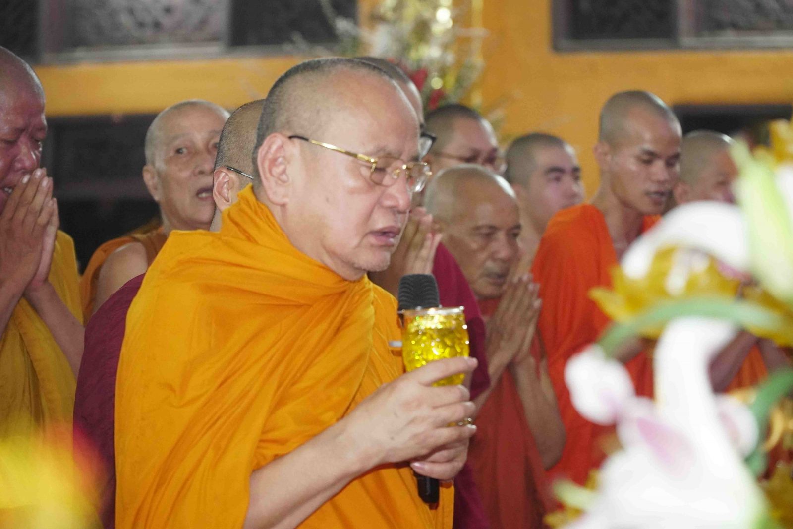 Theo sự điều phối của hòa thượng, đại chúng tụng kinh cầu an chúc phúc, dâng cúng đèn và đi nhiễu đăng từ quảng trường Bồ-Đề về chánh điện. Hòa thượng nhắn nhủ, mỗi ngọn đèn tỏa sáng lung linh đại diện cho trí tuệ. Ánh sáng của ngọn đèn xua tan u mê tăm tối luân hồi, đại chúng cần tinh tấn thắp sáng ngọn đèn trong tâm bằng tất cả sự thành kính thanh tịnh và cầu nguyện cho chính pháp luôn trường tồn.