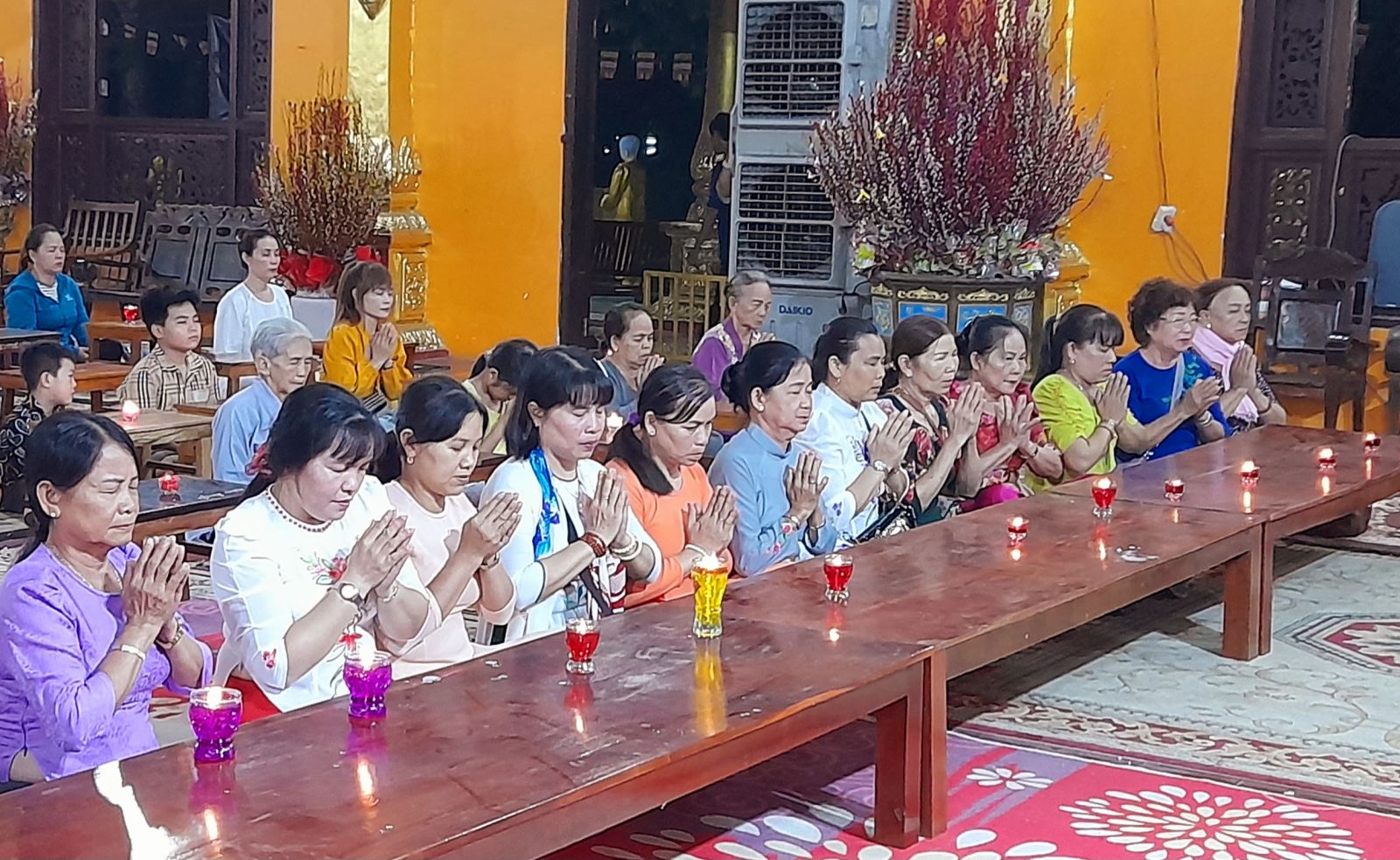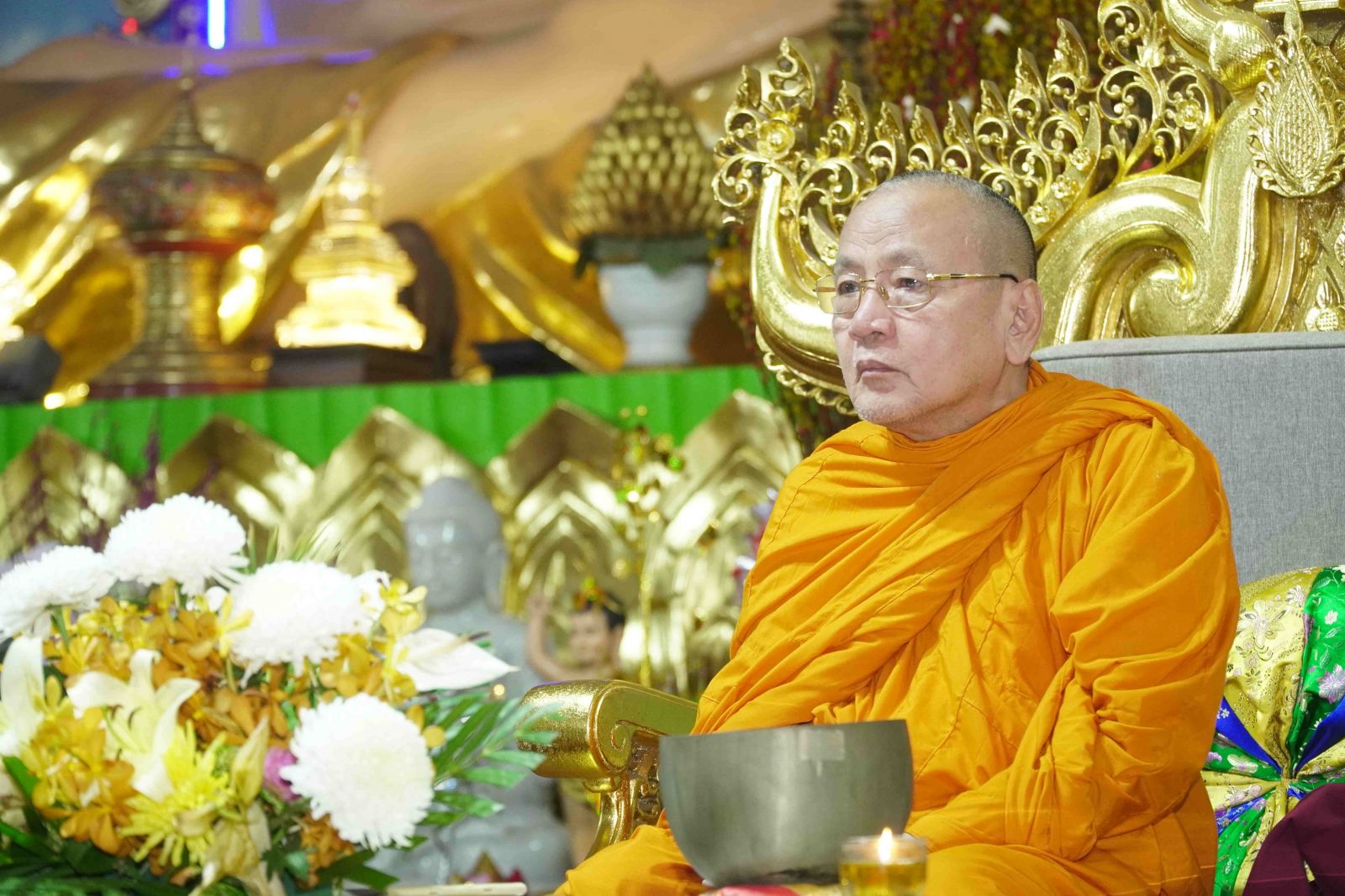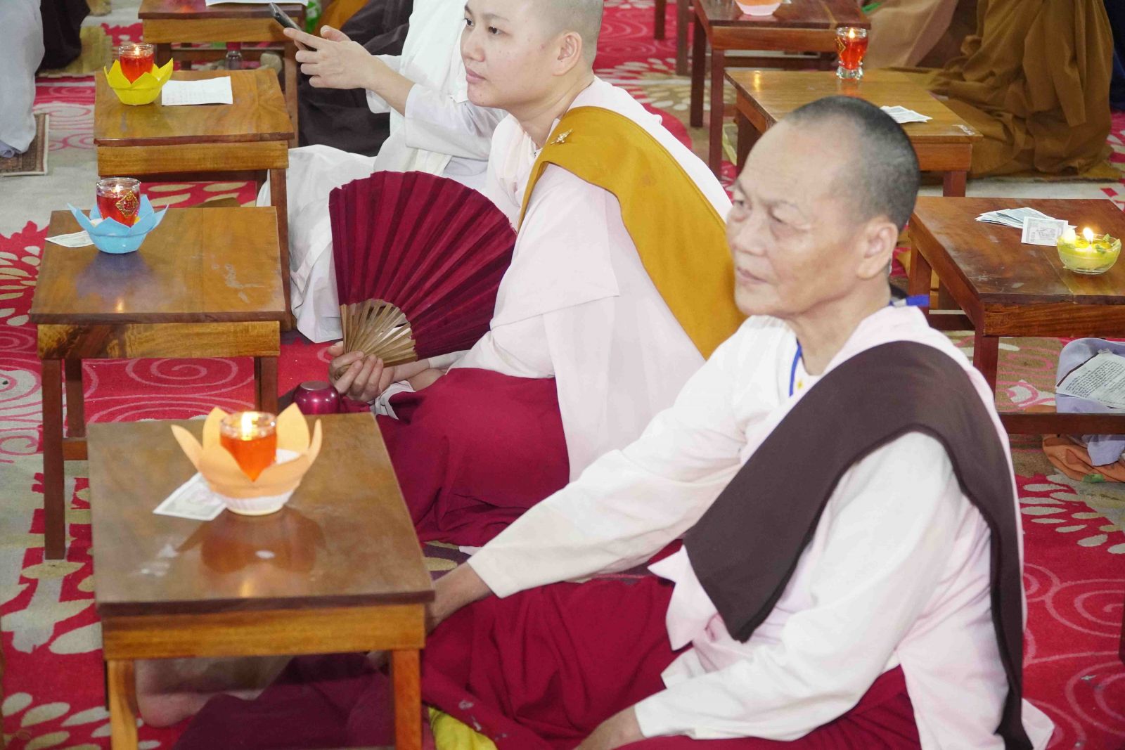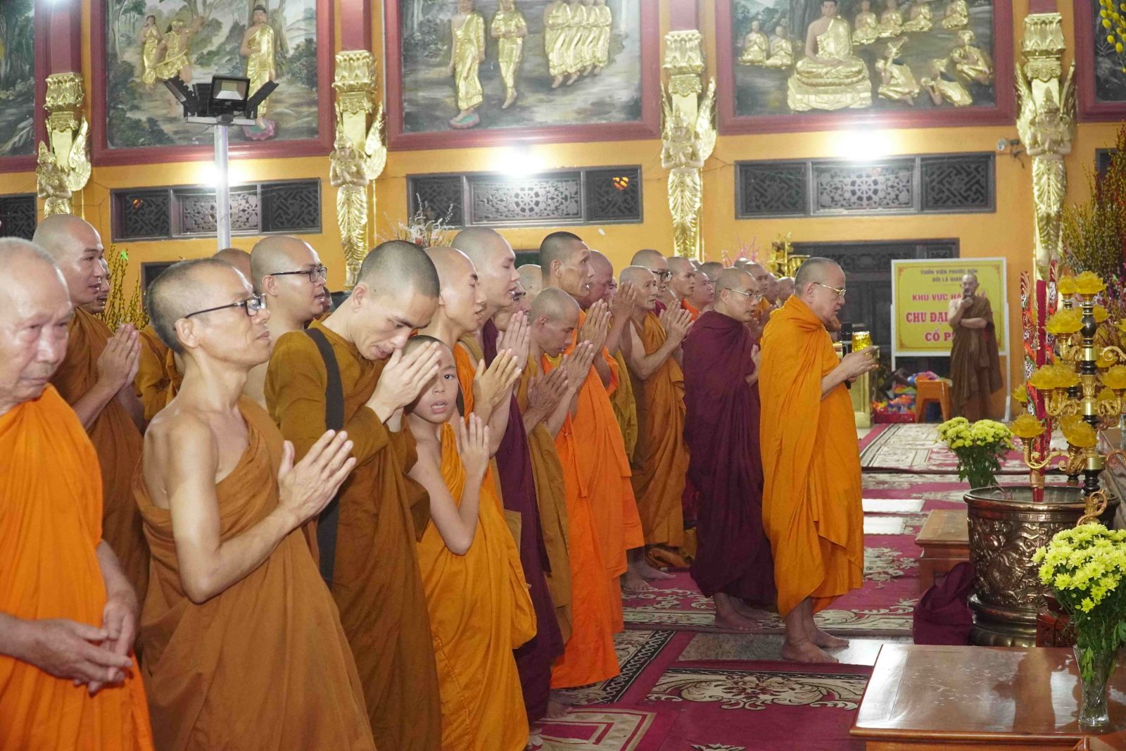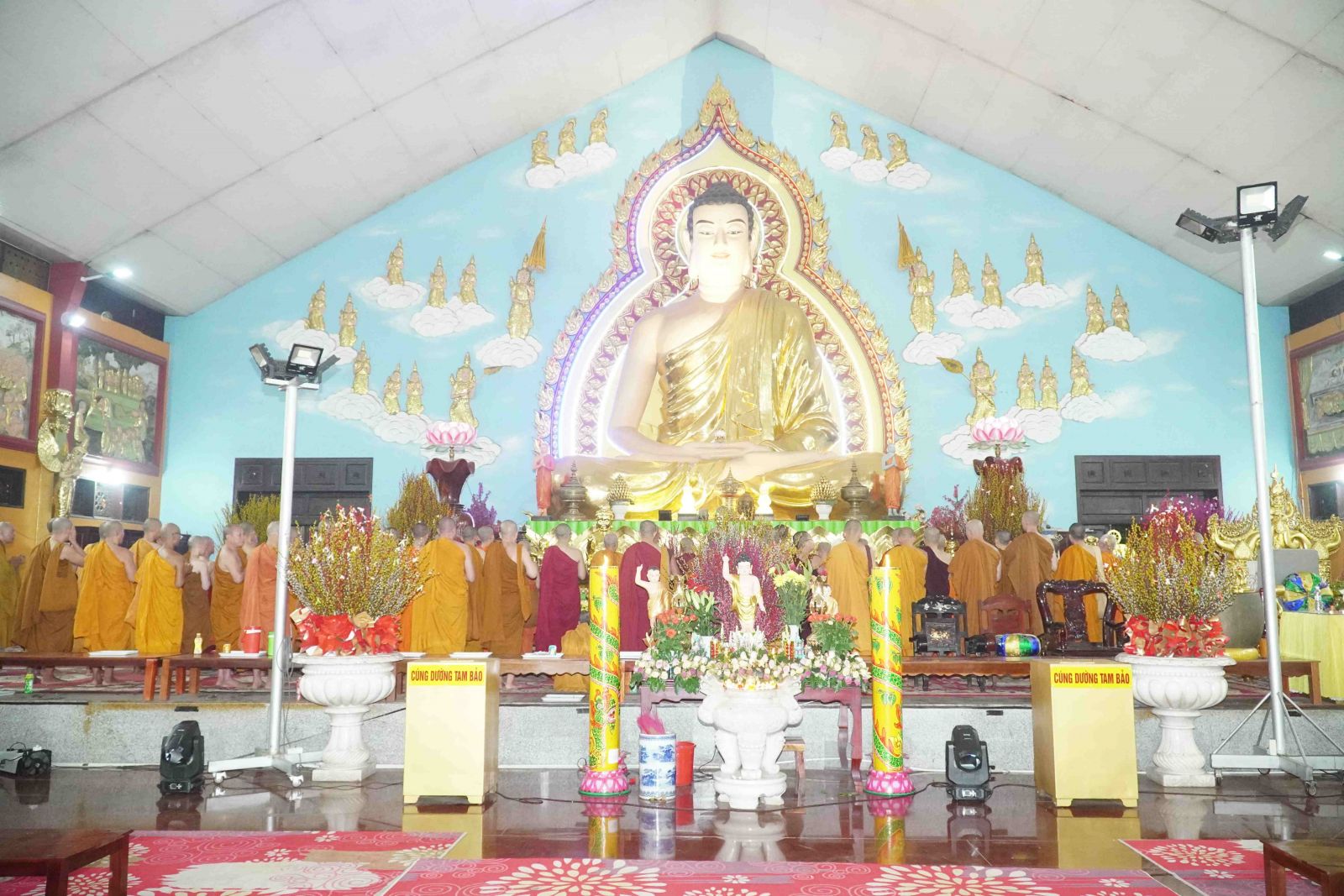 Theo sự điều phối của hòa thượng, đại chúng tụng kinh cầu an chúc phúc, dâng cúng đèn và đi nhiễu đăng từ quảng trường Bồ-Đề về chánh điện. Hòa thượng nhắn nhủ, mỗi ngọn đèn tỏa sáng lung linh đại diện cho trí tuệ. Ánh sáng của ngọn đèn xua tan u mê tăm tối luân hồi, đại chúng cần tinh tấn thắp sáng ngọn đèn trong tâm bằng tất cả sự thành kính thanh tịnh và cầu nguyện cho chính pháp luôn trường tồn.