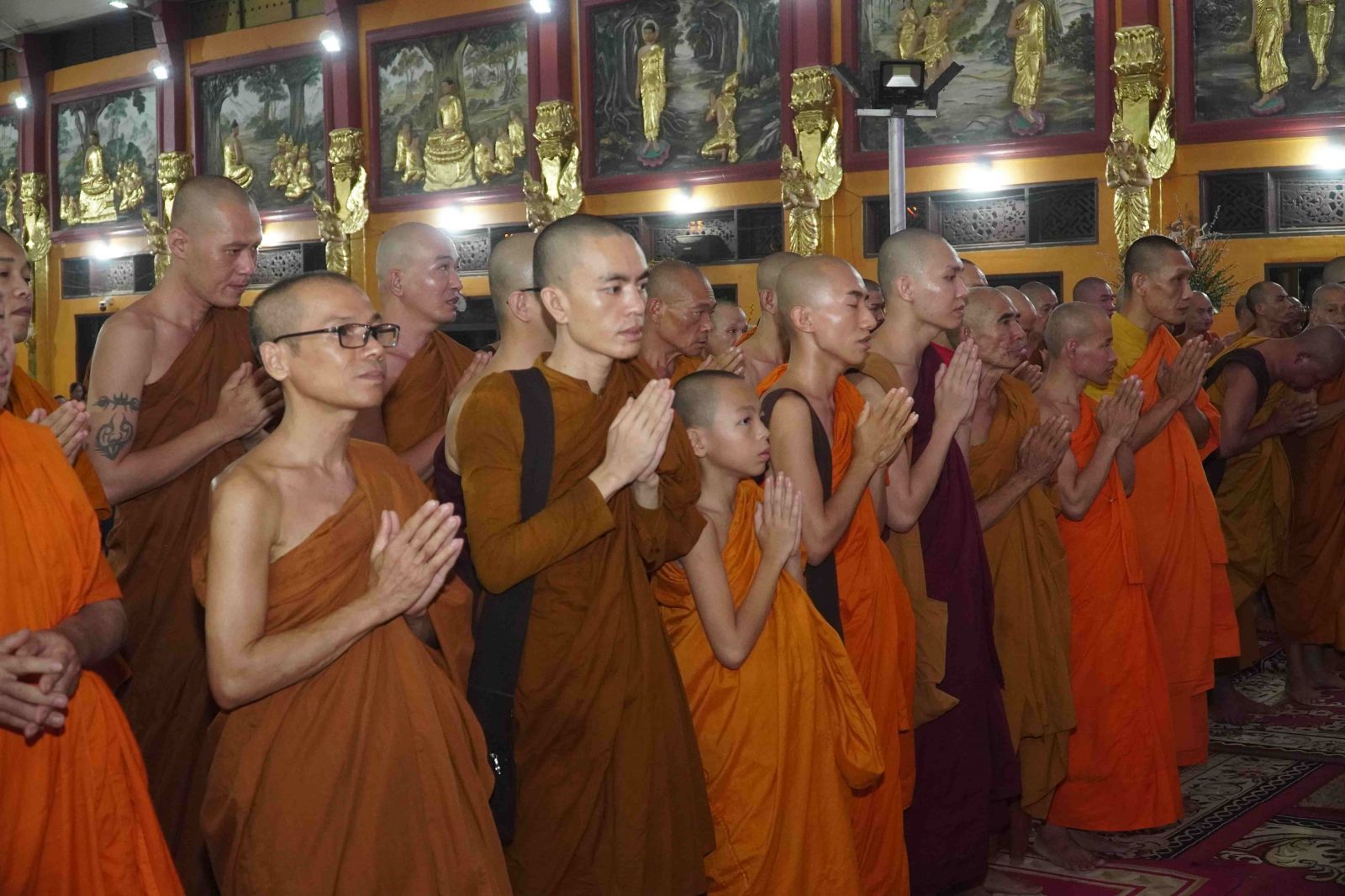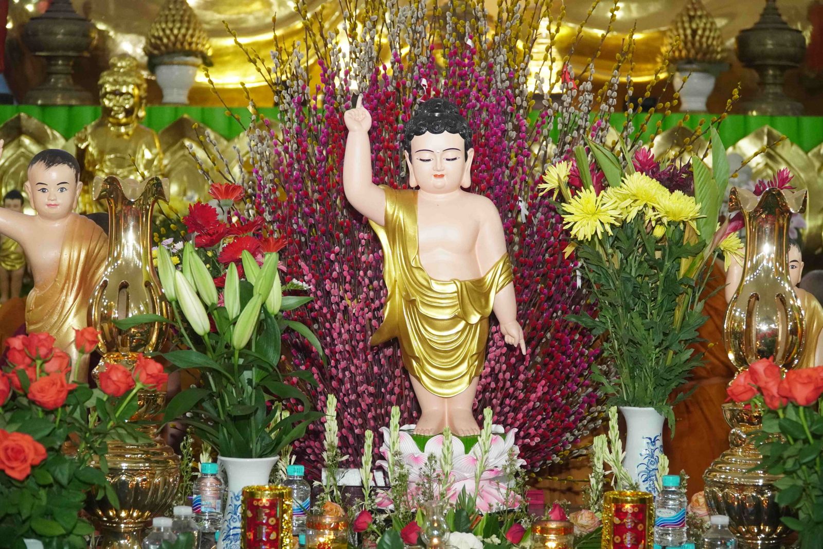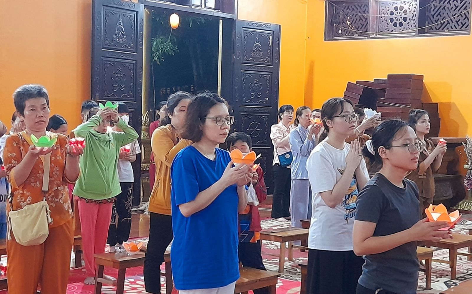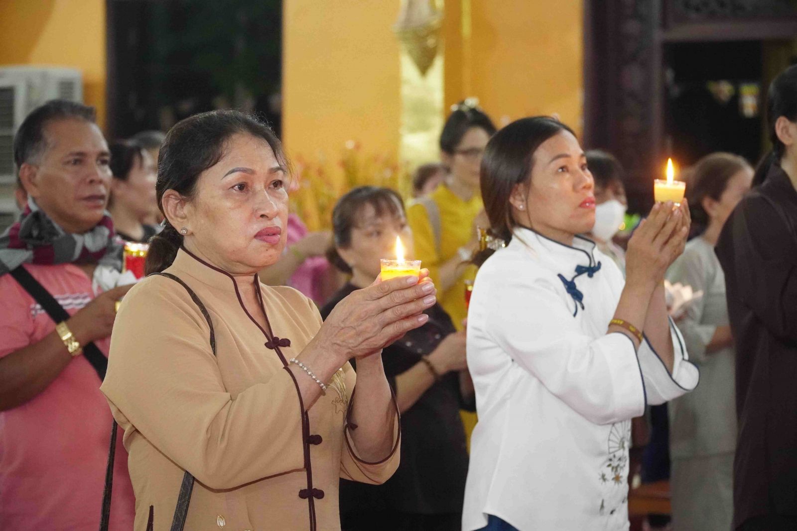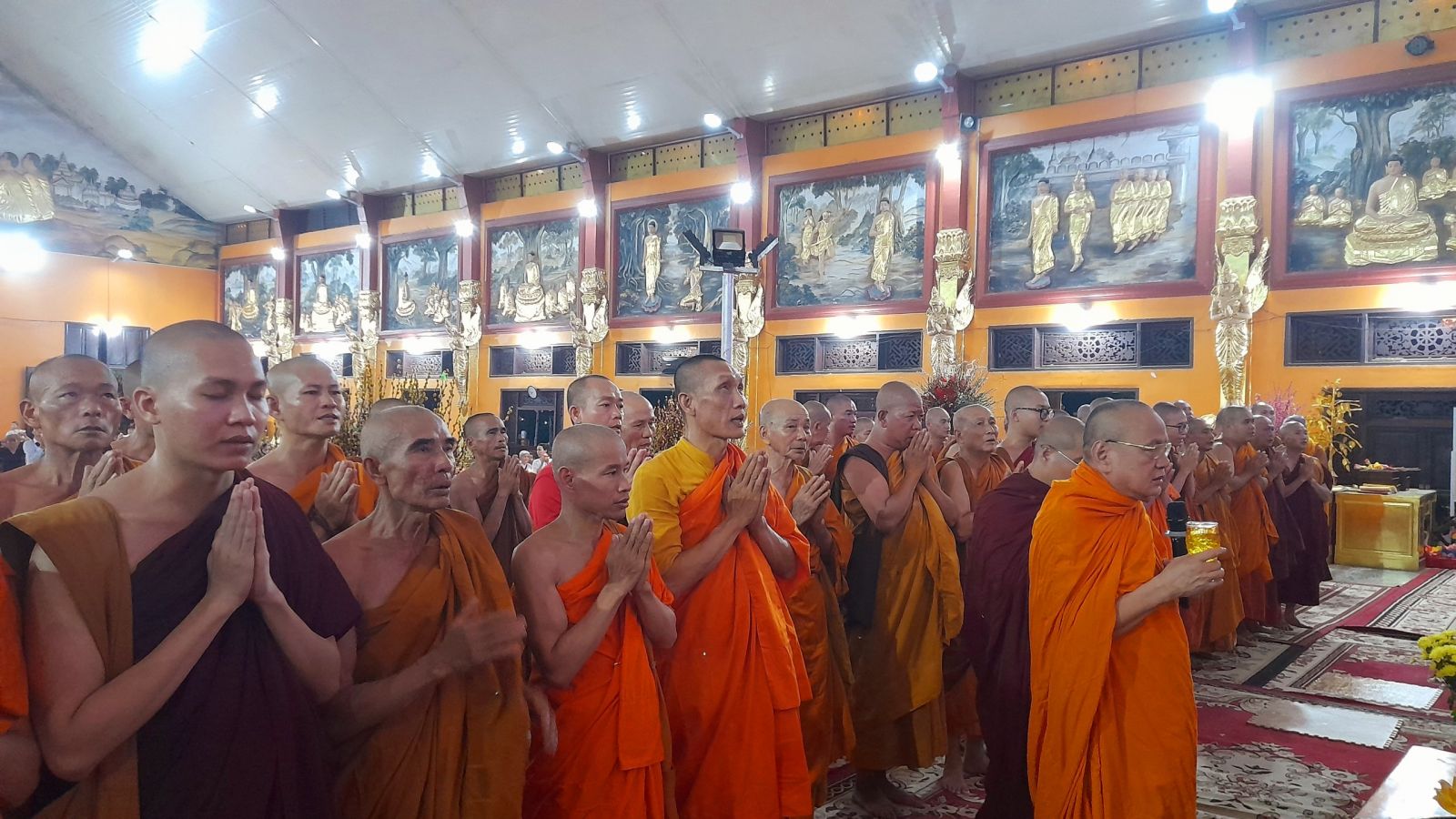 Theo sự điều phối của hòa thượng, đại chúng tụng kinh cầu an chúc phúc, dâng cúng đèn và đi nhiễu đăng từ quảng trường Bồ-Đề về chánh điện. Hòa thượng nhắn nhủ, mỗi ngọn đèn tỏa sáng lung linh đại diện cho trí tuệ. Ánh sáng của ngọn đèn xua tan u mê tăm tối luân hồi, đại chúng cần tinh tấn thắp sáng ngọn đèn trong tâm bằng tất cả sự thành kính thanh tịnh và cầu nguyện cho chính pháp luôn trường tồn.