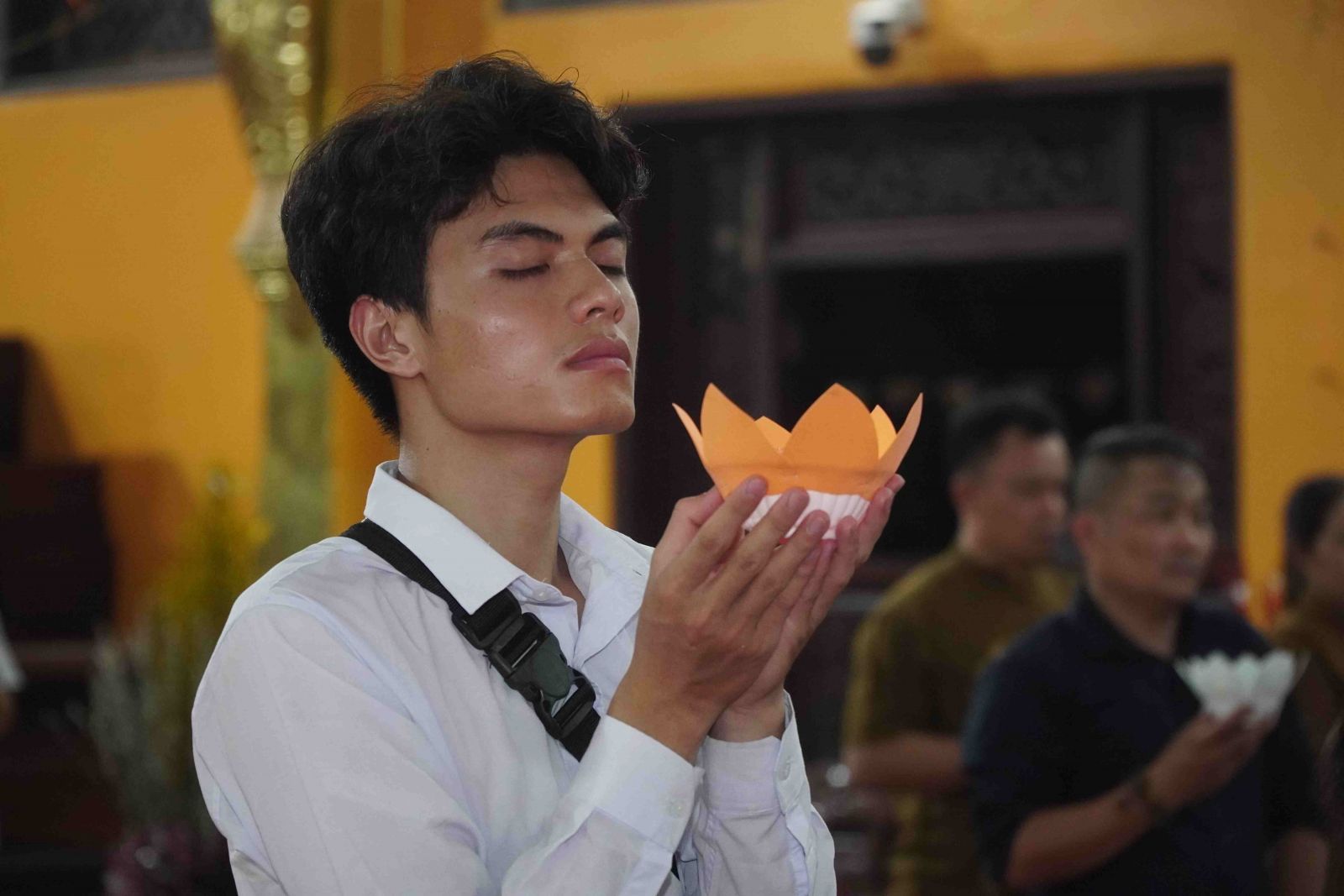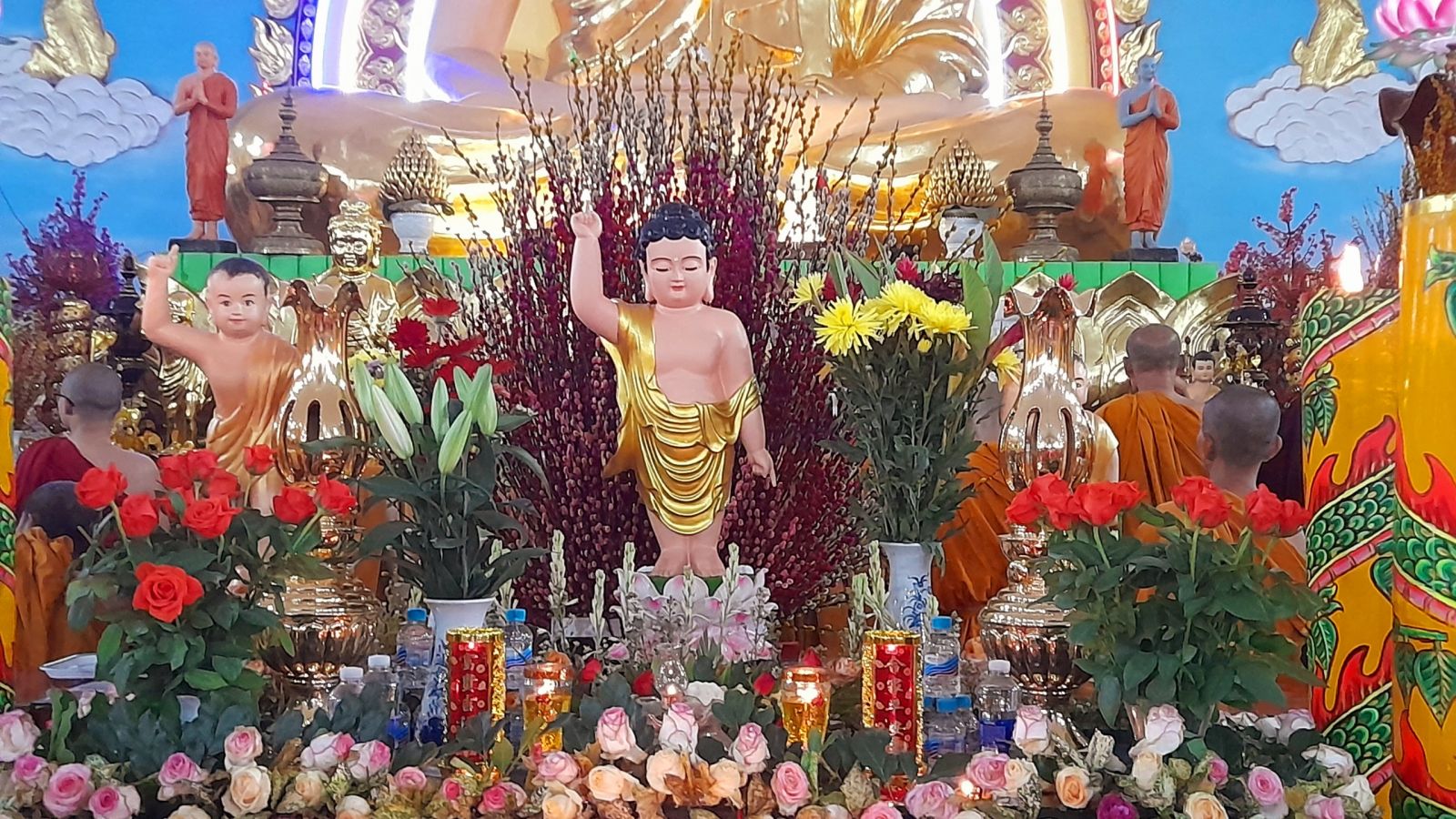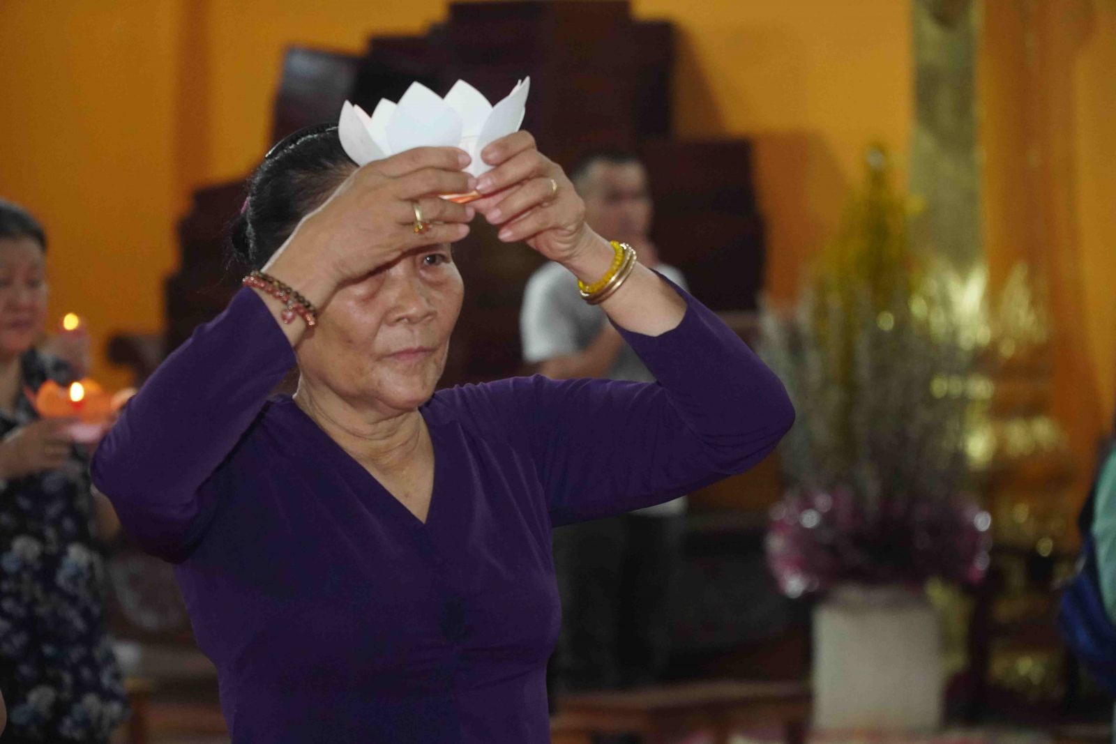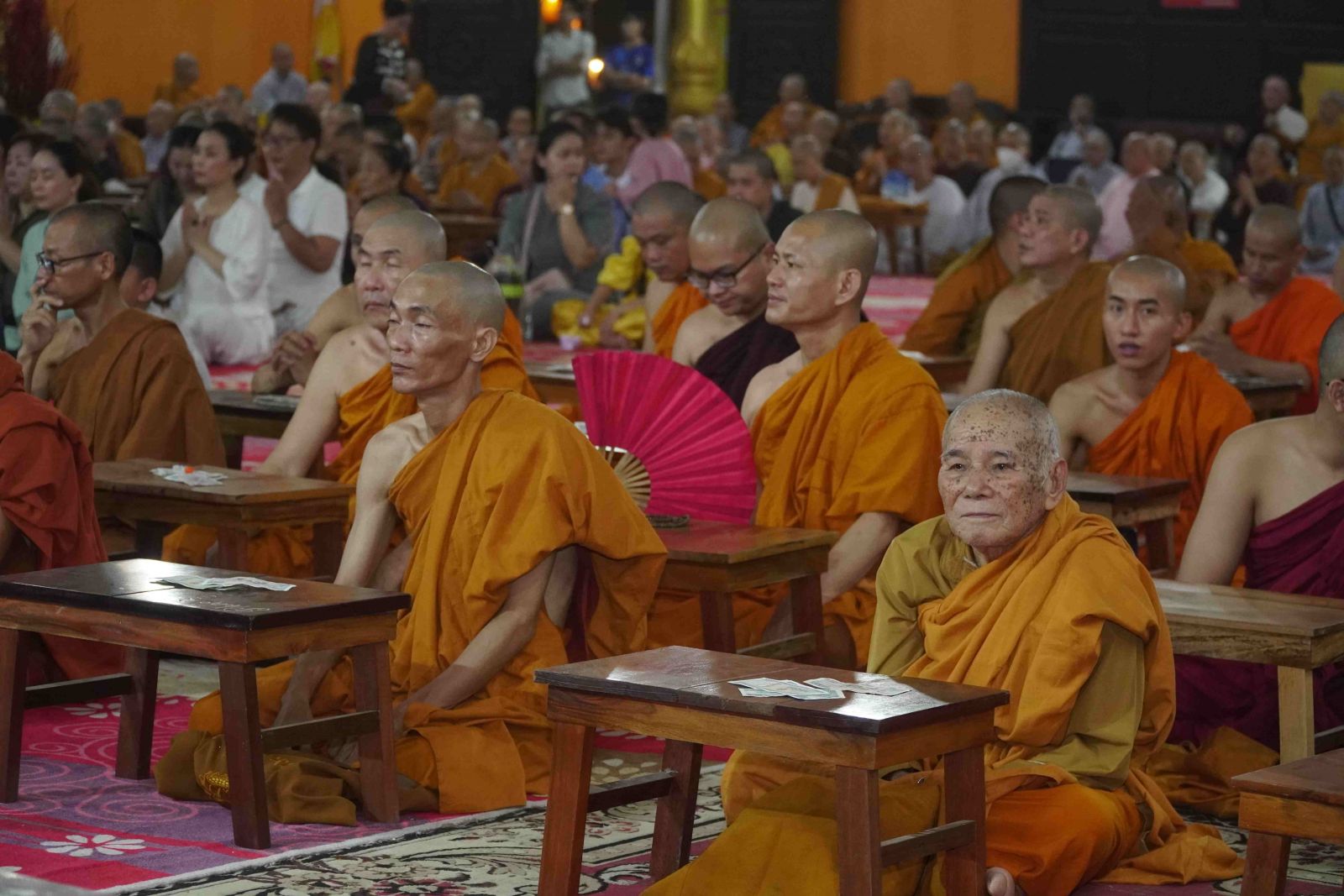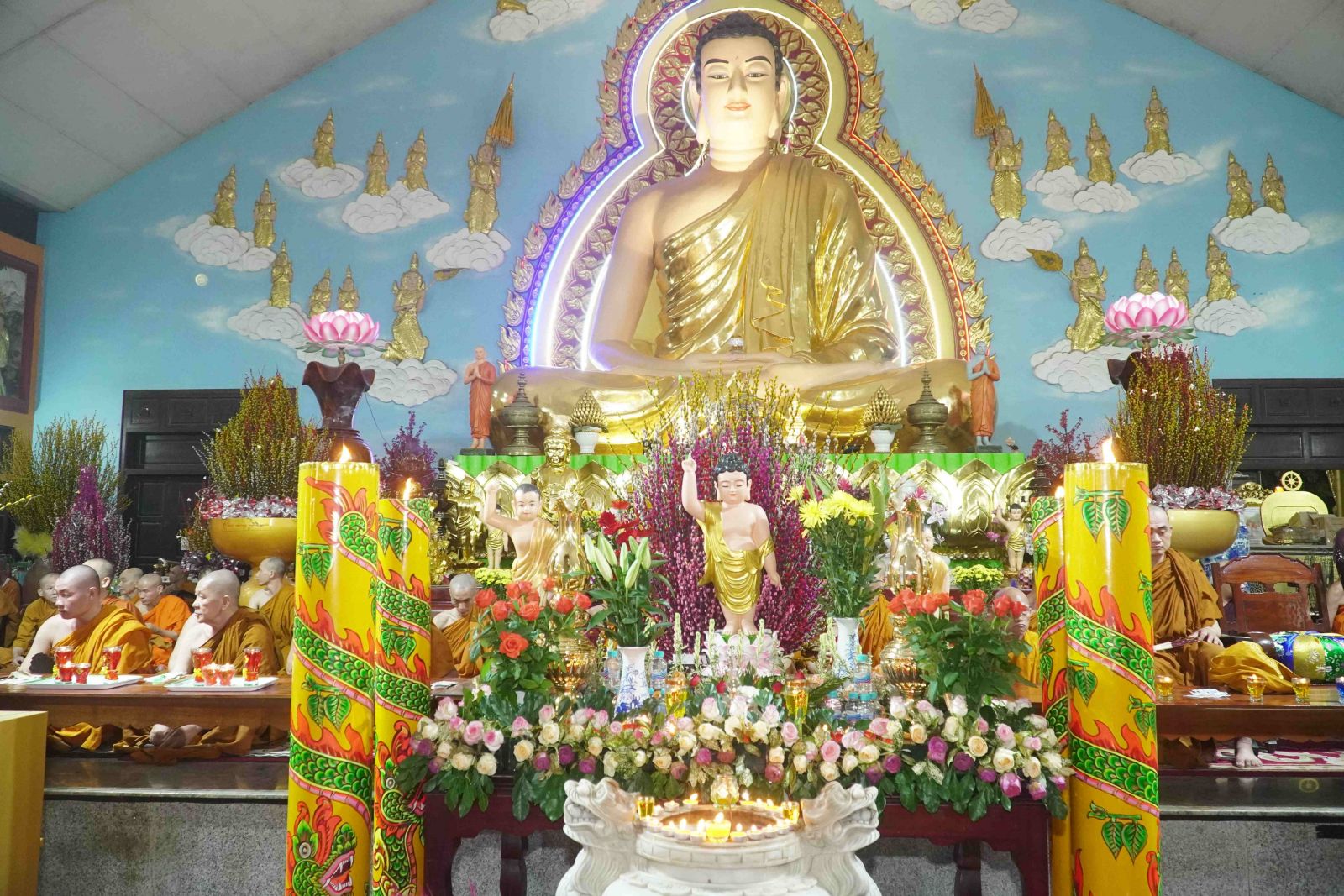 Theo sự điều phối của hòa thượng, đại chúng tụng kinh cầu an chúc phúc, dâng cúng đèn và đi nhiễu đăng từ quảng trường Bồ-Đề về chánh điện. Hòa thượng nhắn nhủ, mỗi ngọn đèn tỏa sáng lung linh đại diện cho trí tuệ. Ánh sáng của ngọn đèn xua tan u mê tăm tối luân hồi, đại chúng cần tinh tấn thắp sáng ngọn đèn trong tâm bằng tất cả sự thành kính thanh tịnh và cầu nguyện cho chính pháp luôn trường tồn.