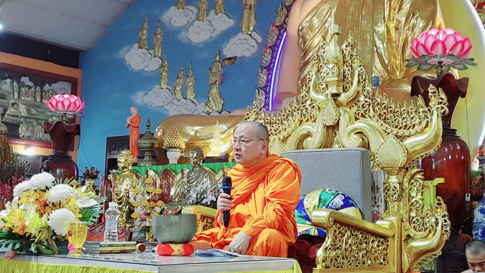 Sau thời khóa lễ bái tam bảo, tọa thiền, hòa thượng Thích Bửu Chánh thuyết giảng tóm tắt câu thứ 194 trong kinh Pháp Cú nói về ba ngôi Tam Bảo, Thánh phàm đồng tu.