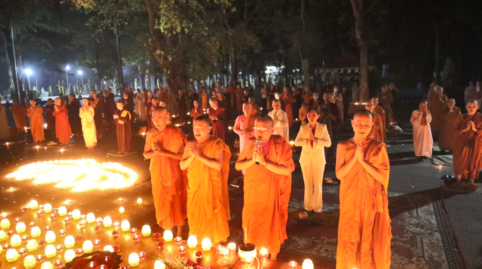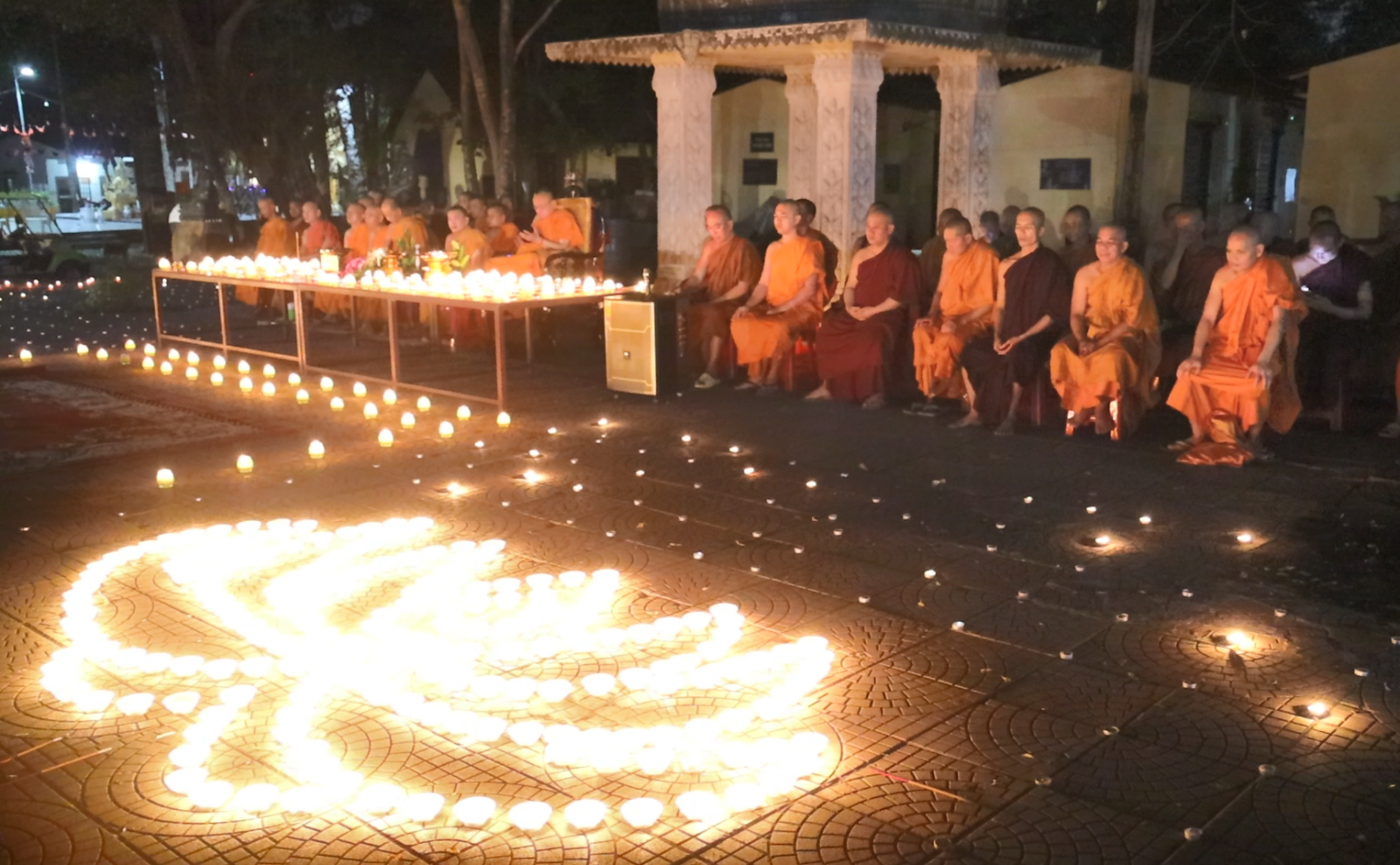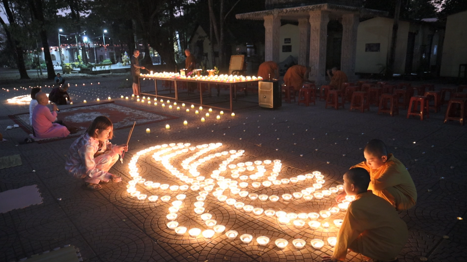 Sau nghi thức lễ bái Tam bảo. Các ngọn nến đượ thắp lên, ánh sáng trí tuệ, ánh sáng của từ bi lan tỏa rộng khắp với nguyện cầu hòa bình thế giới, Quốc thái Dân an, dịch bệnh tiêu trừ.