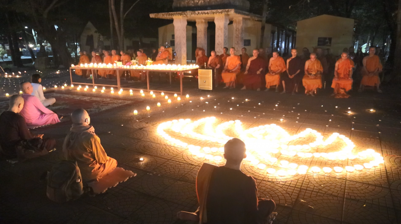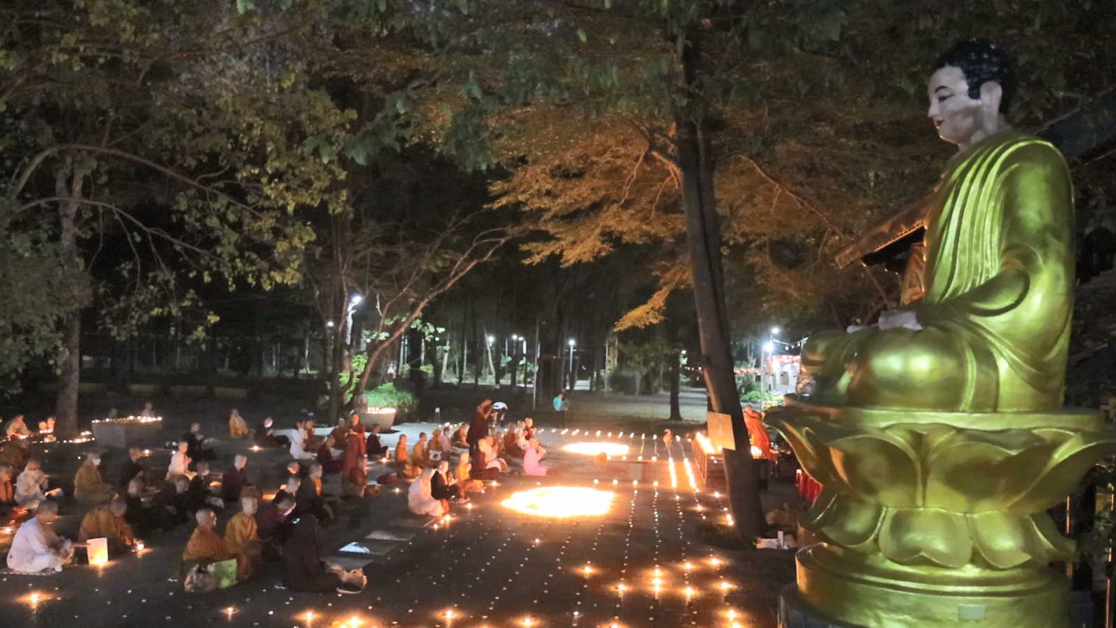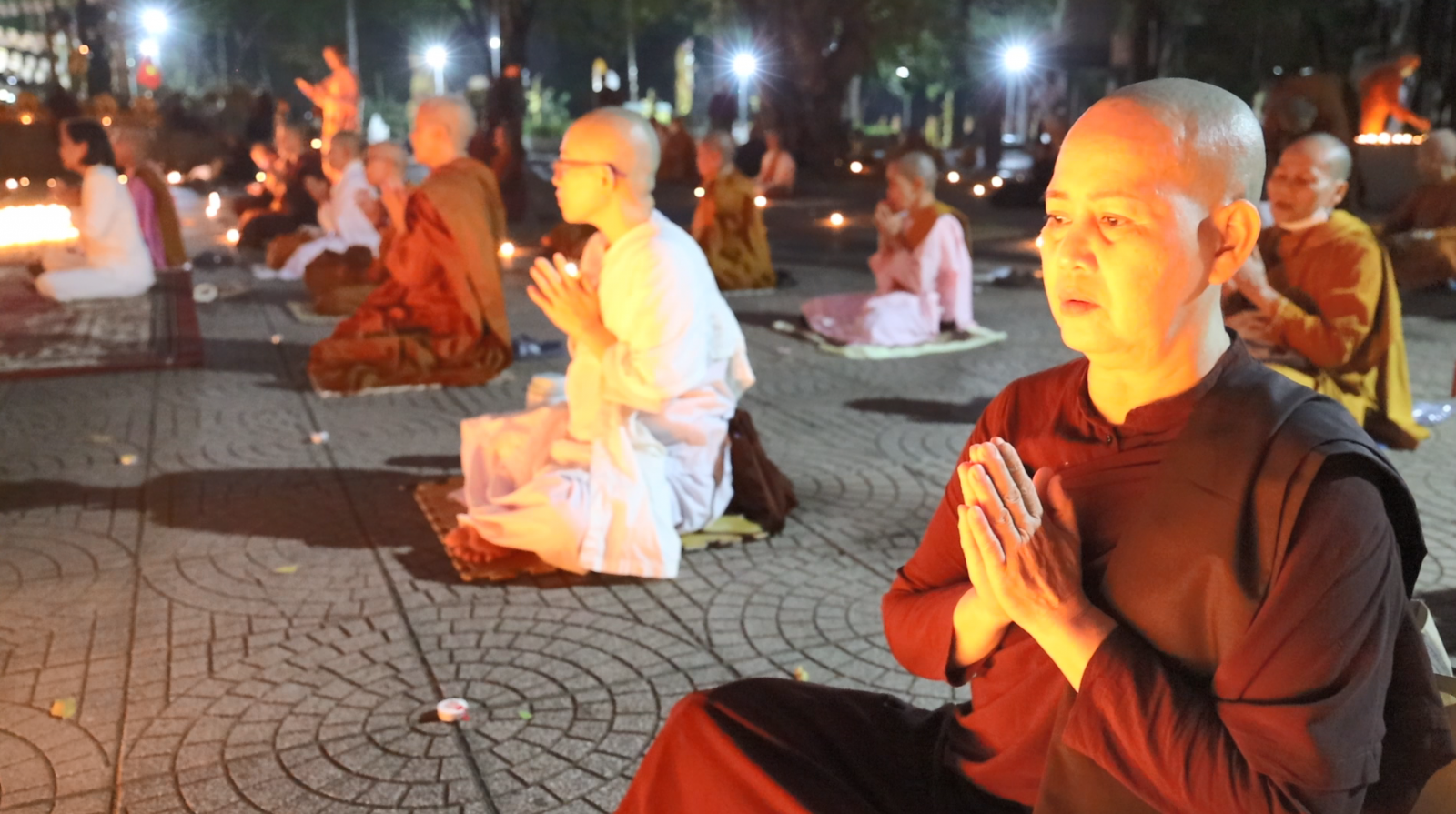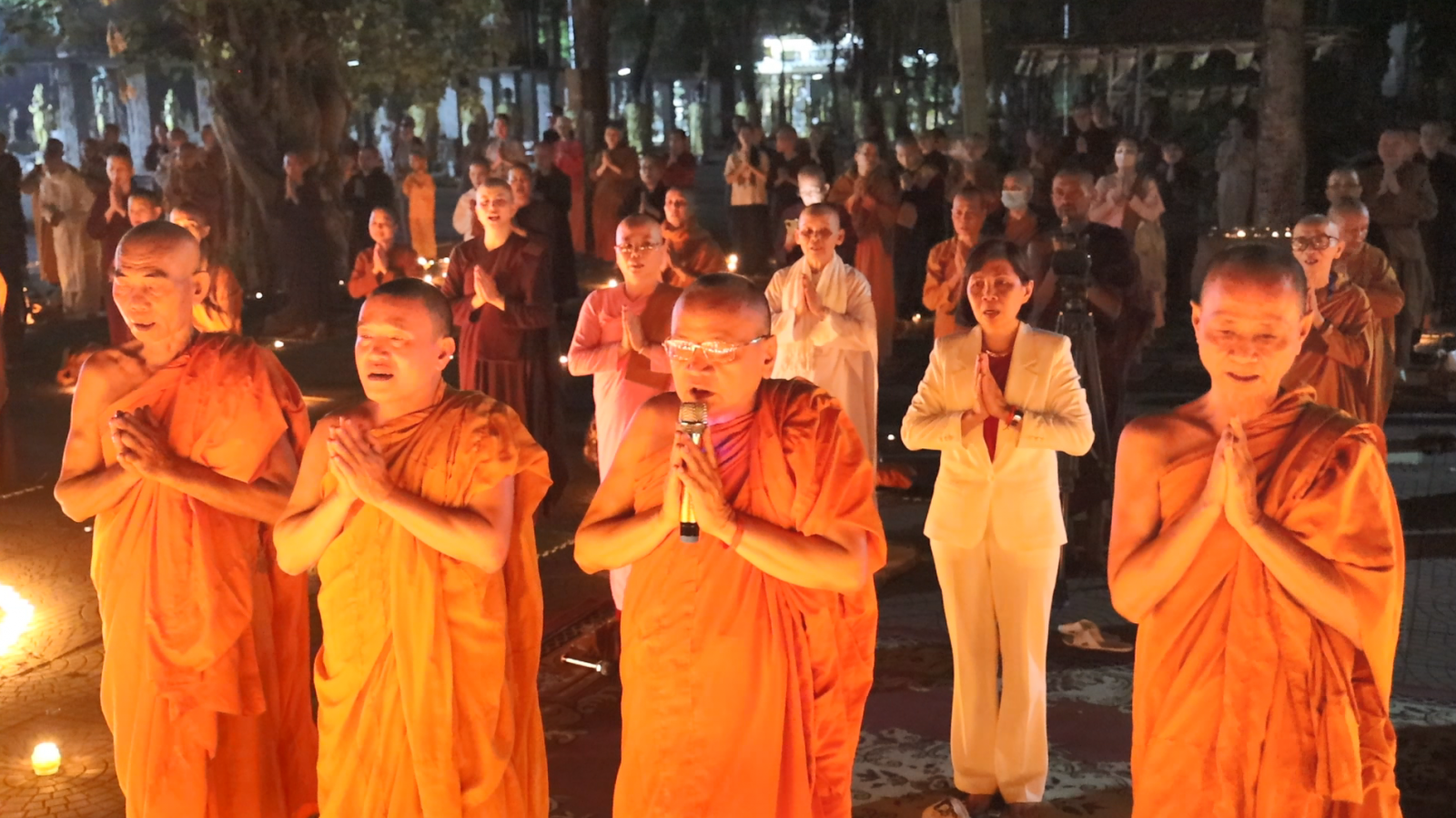 Sau nghi thức lễ bái Tam bảo. Các ngọn nến đượ thắp lên, ánh sáng trí tuệ, ánh sáng của từ bi lan tỏa rộng khắp với nguyện cầu hòa bình thế giới, Quốc thái Dân an, dịch bệnh tiêu trừ.