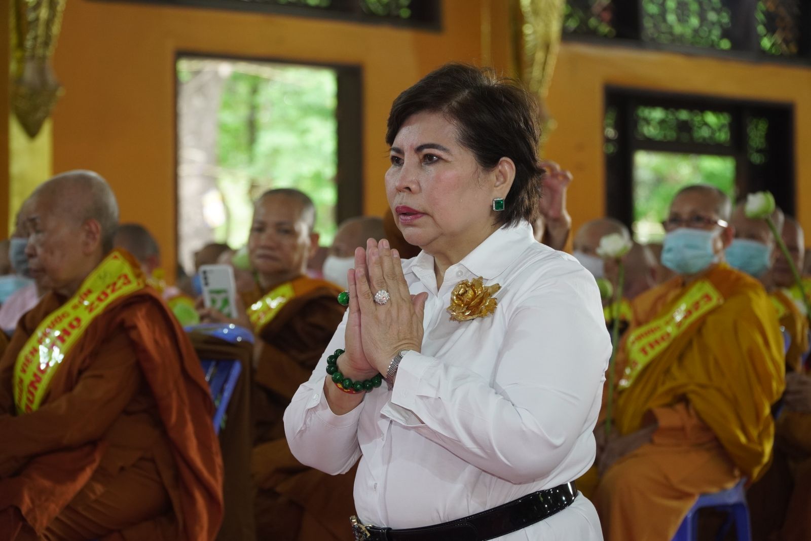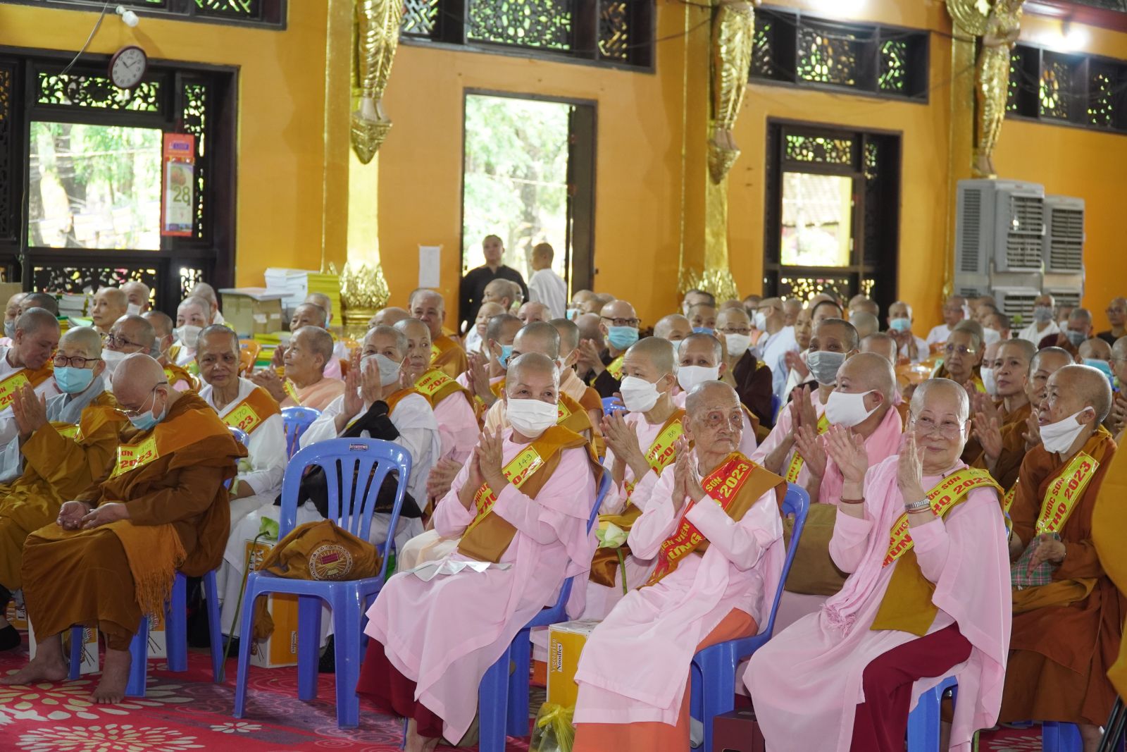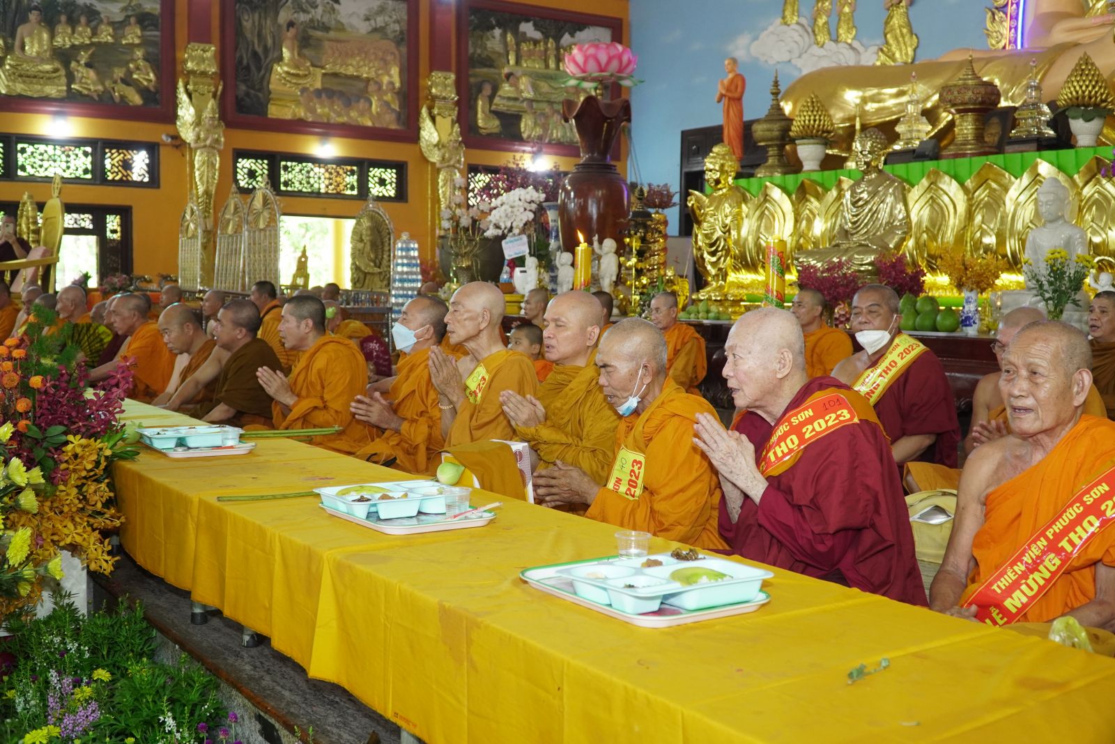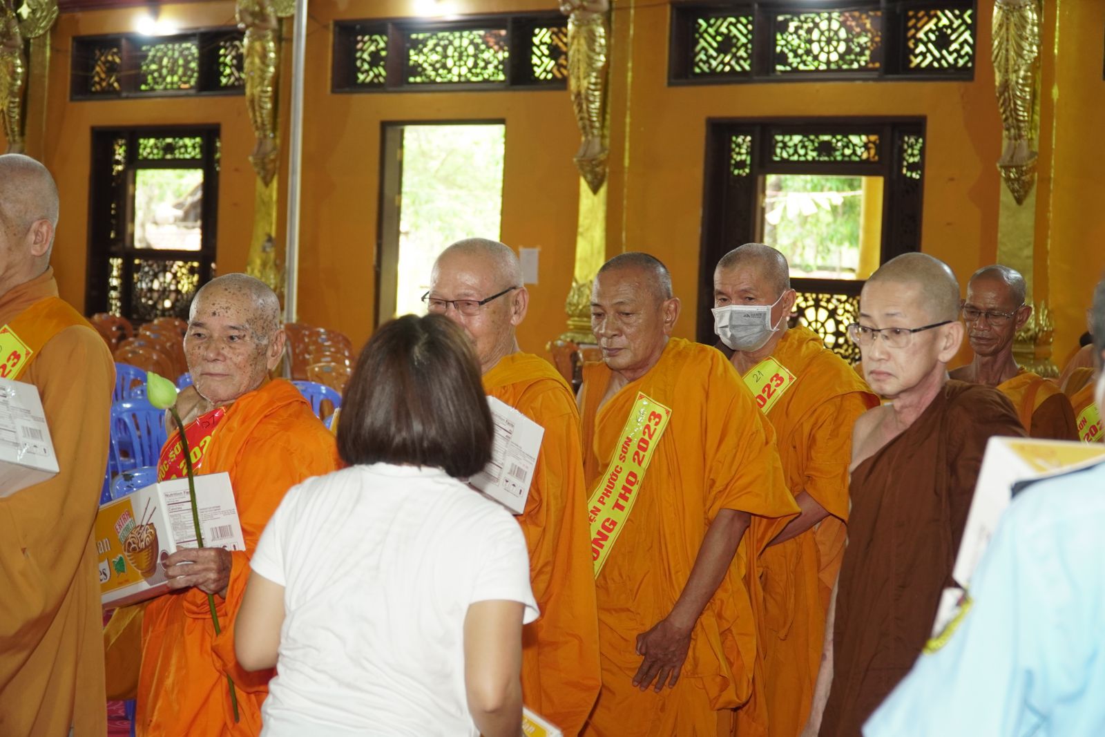 Nhân dịp này, Phật tử Phước Lộc (Lê Thị Giàu) phát tâm cúng dường, chúc thọ đến 250 vị chư tăng, tu nữ có tuổi 65-90.