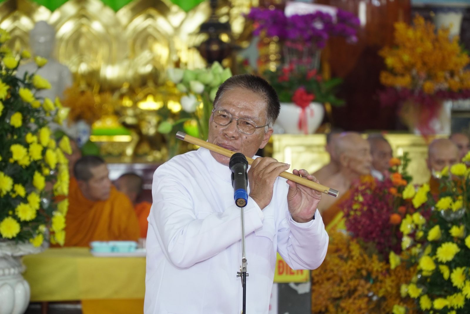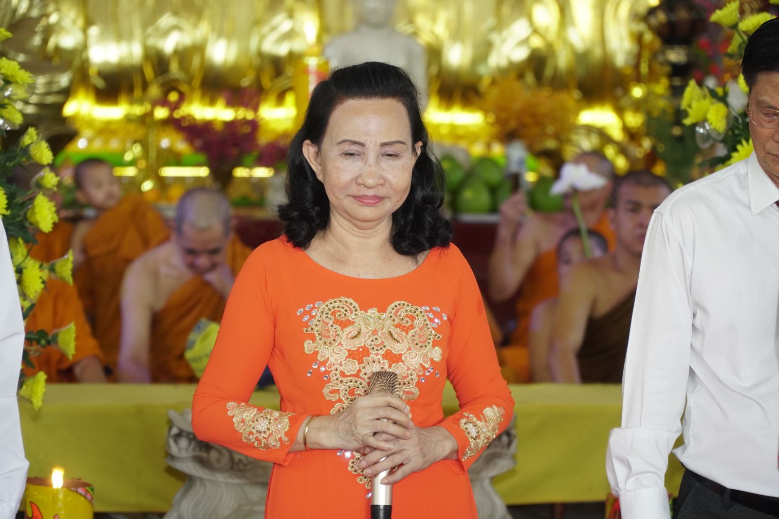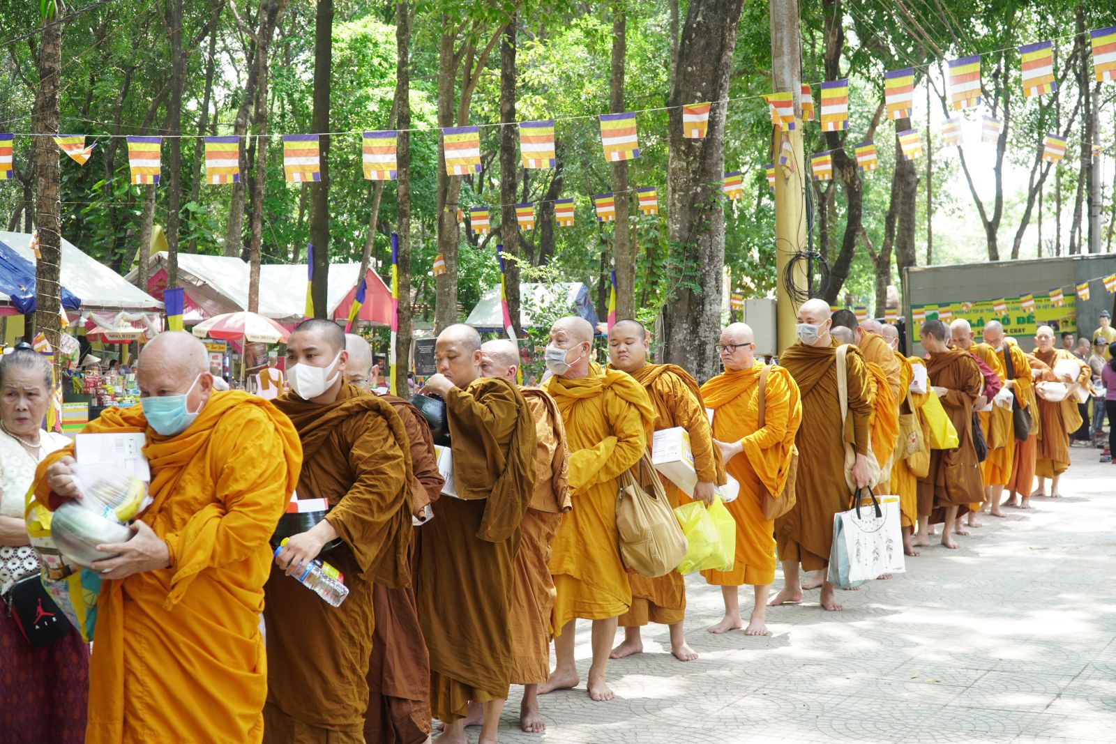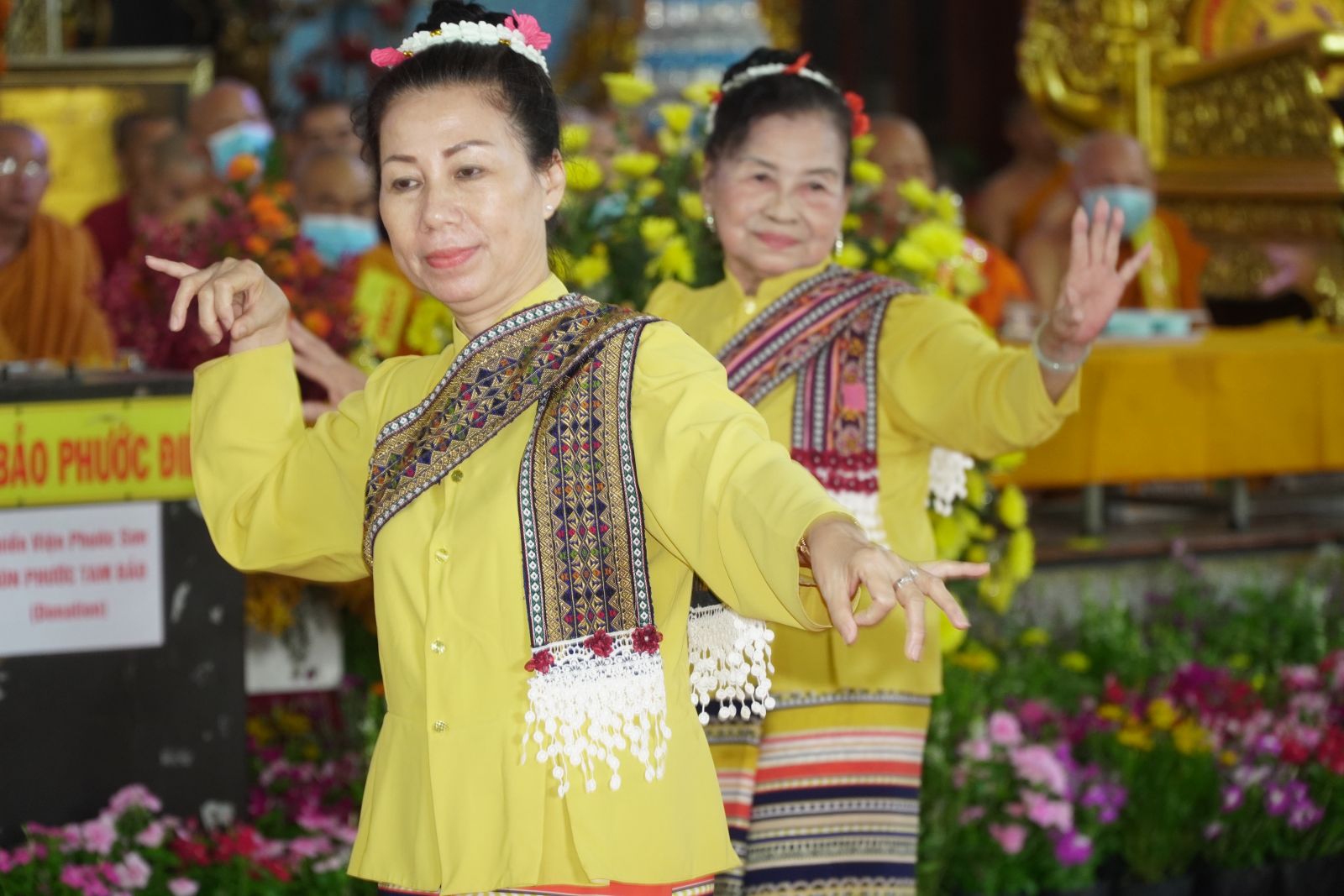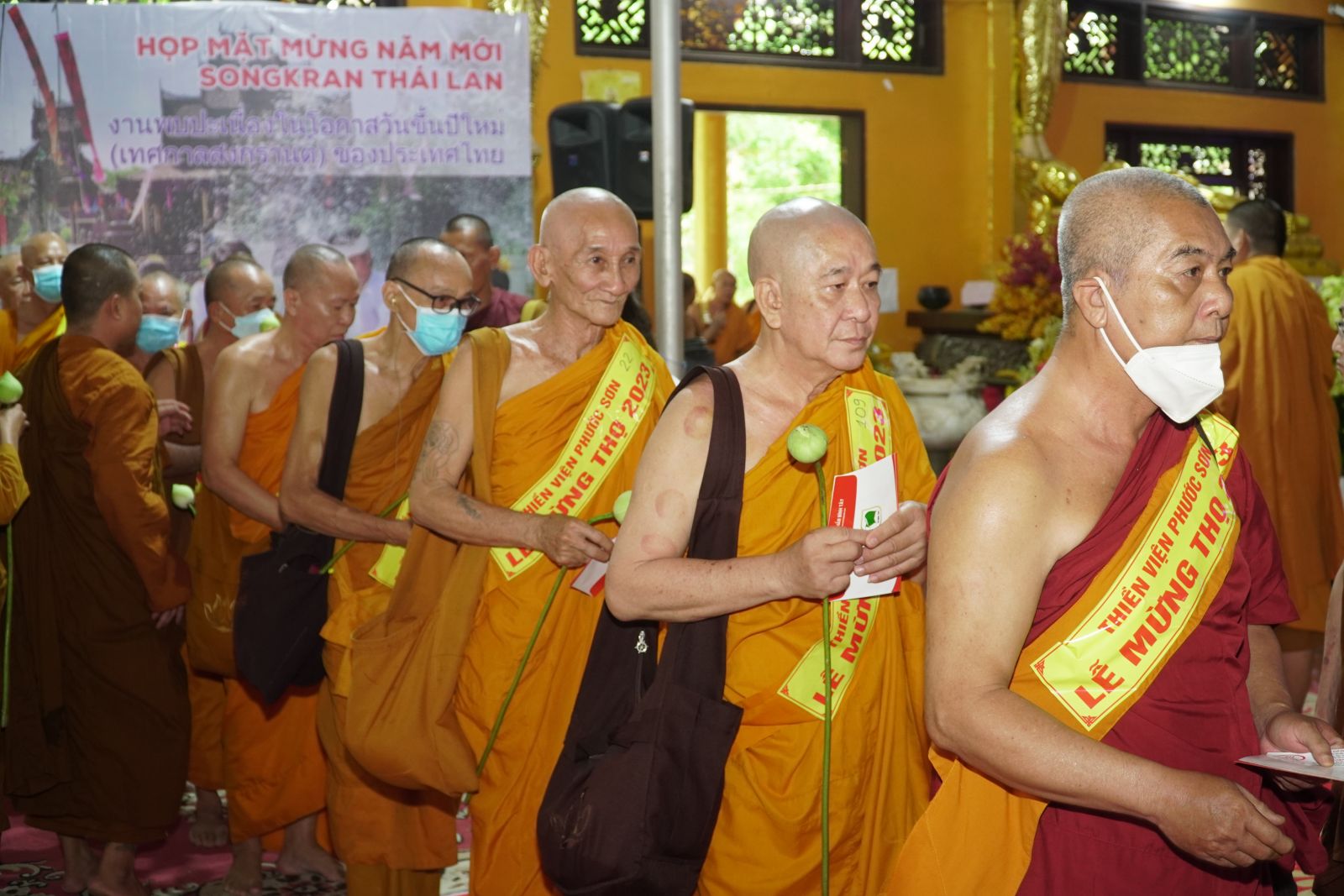 Nhân dịp này, Phật tử Phước Lộc (Lê Thị Giàu) phát tâm cúng dường, chúc thọ đến 250 vị chư tăng, tu nữ có tuổi 65-90.