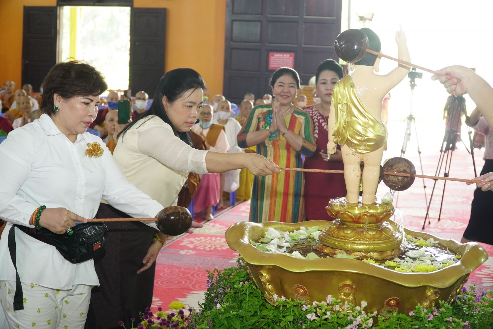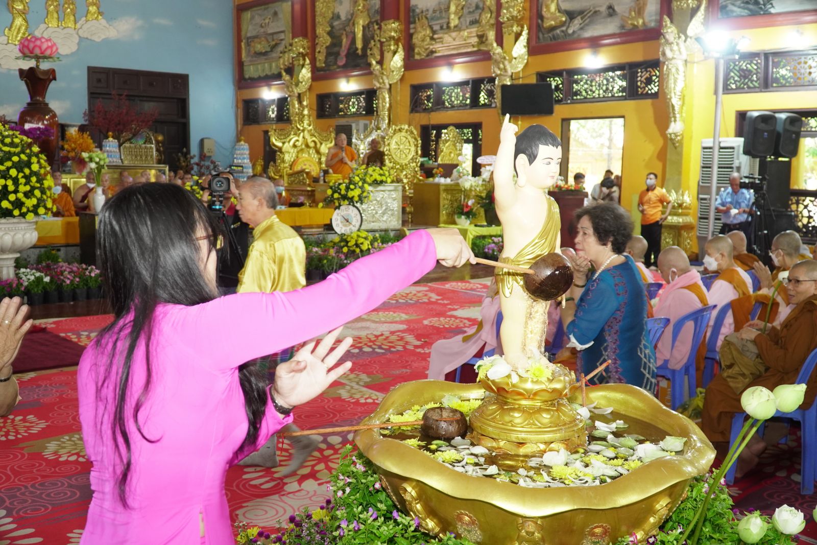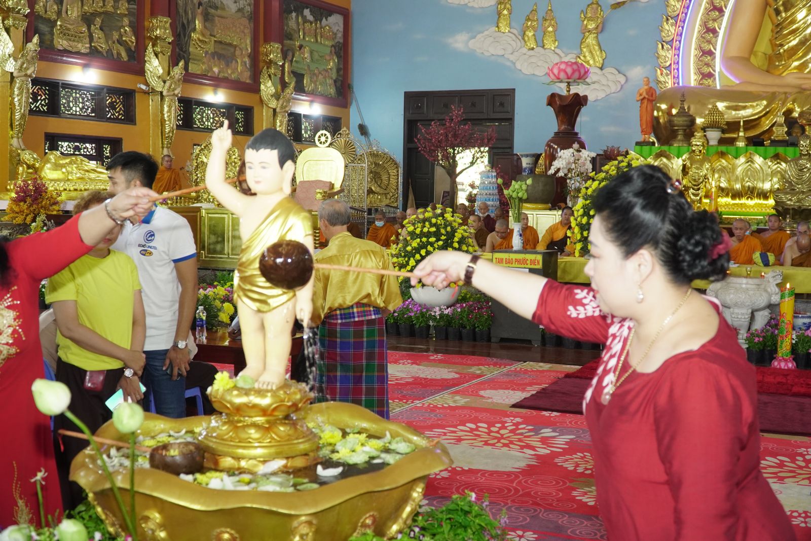 Sau thời khóa cầu an cầu siêu, tụng kinh chúc phúc lành, đại chúng cử hành nghi lễ Tắm Phật và đi bát hội.