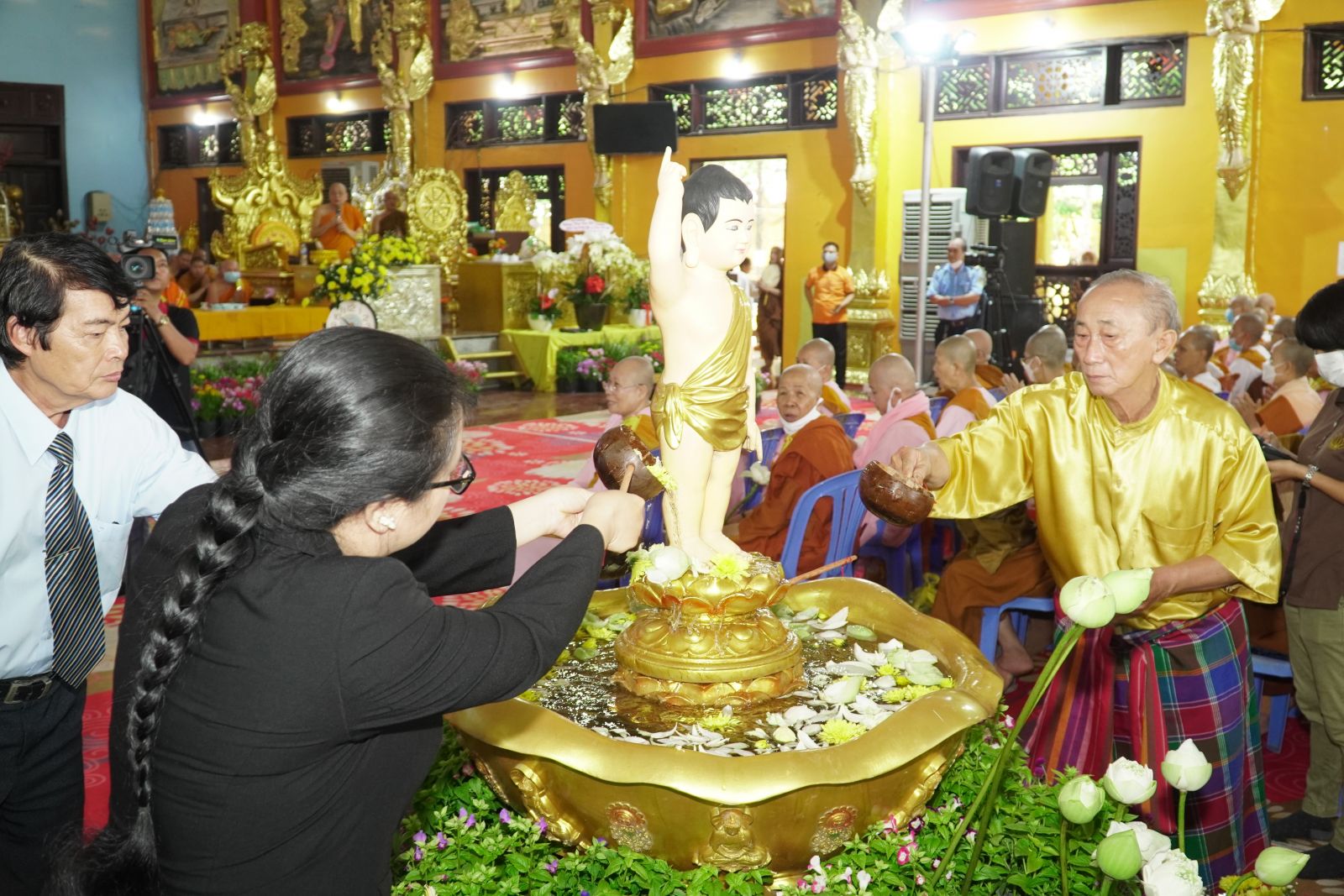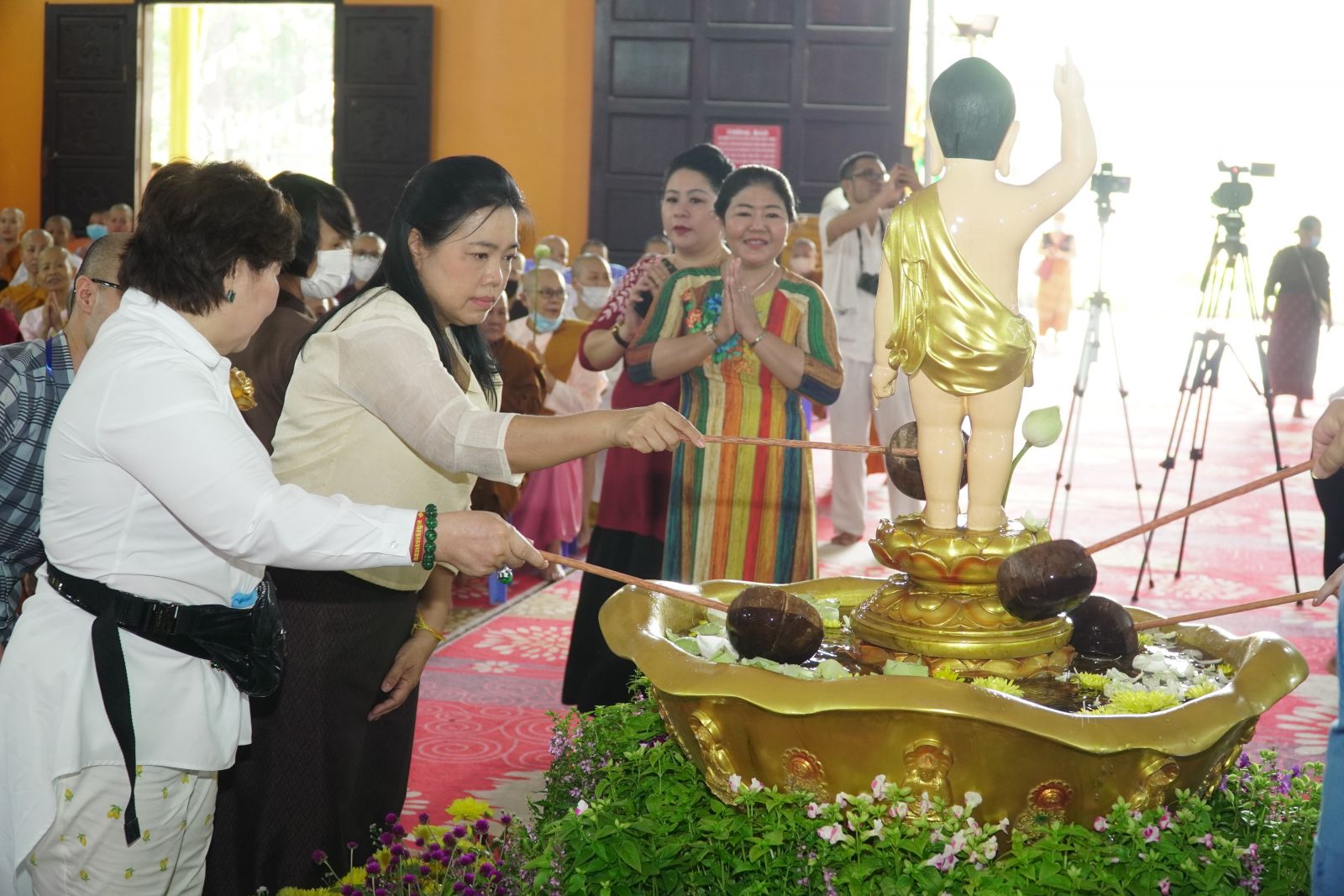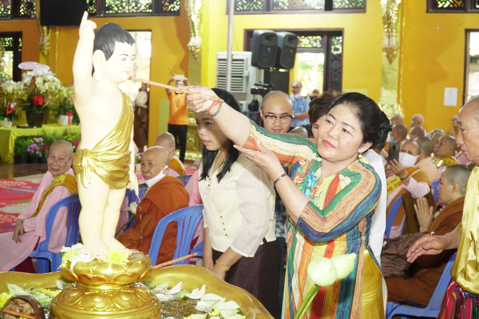 Sau thời khóa cầu an cầu siêu, tụng kinh chúc phúc lành, đại chúng cử hành nghi lễ Tắm Phật và đi bát hội.