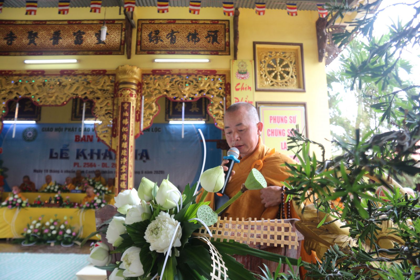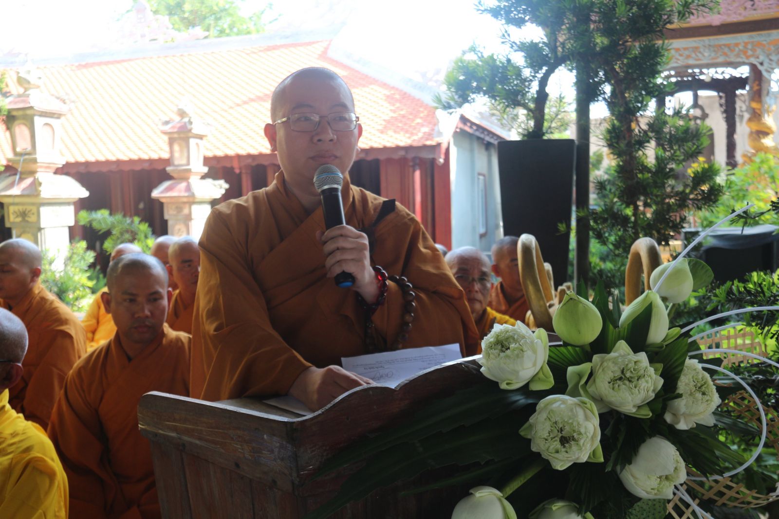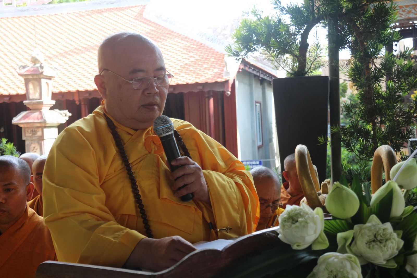 ĐĐ. Thích Thiện Trí - Phó Ban kiêm Chánh Thư ký Ban Tăng sự đọc giấy phép tổ chức an cư của Ban Tôn giáo và của Ban Trị sự tỉnh Đồng Nai.