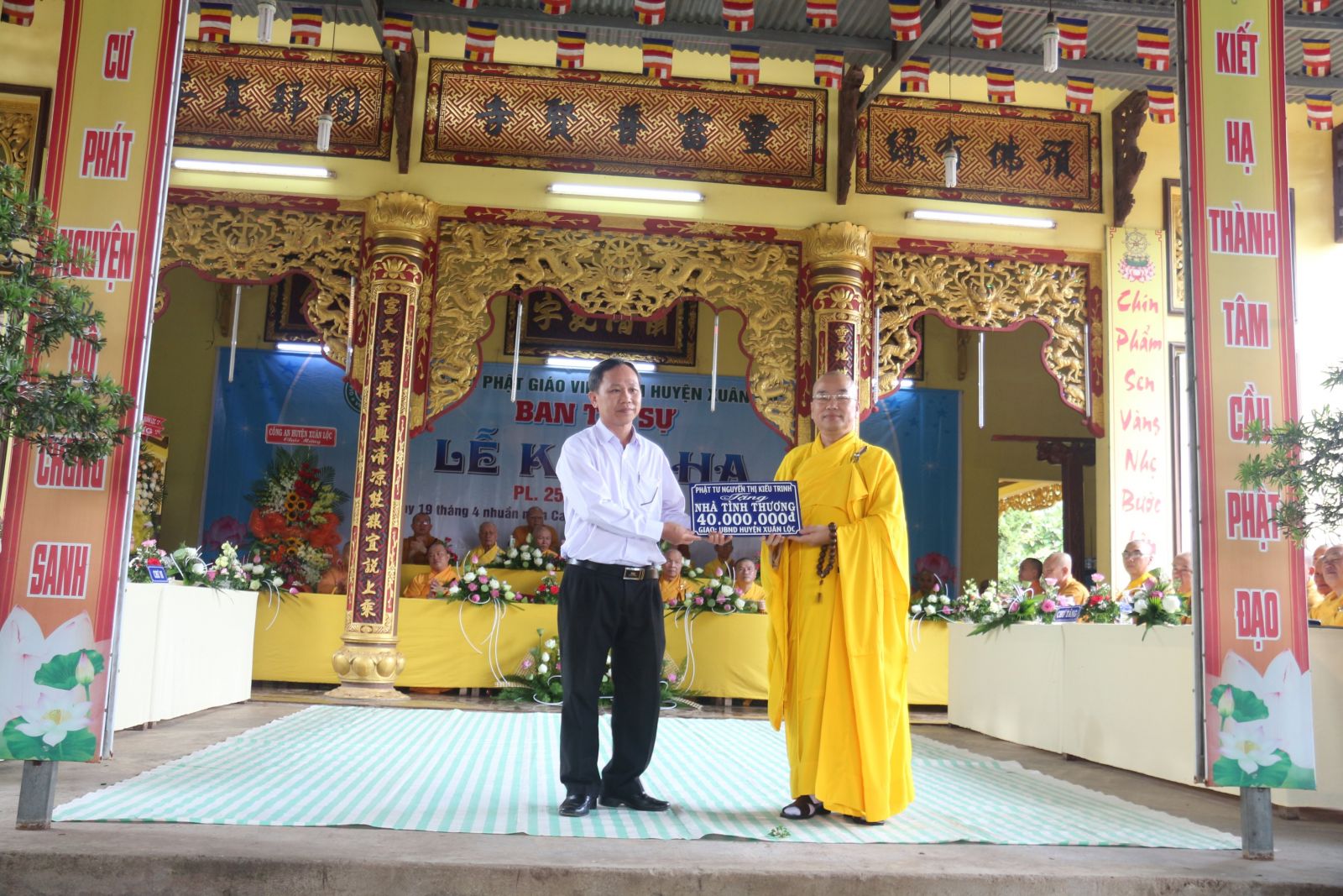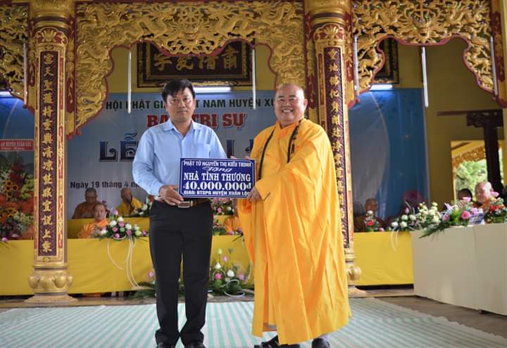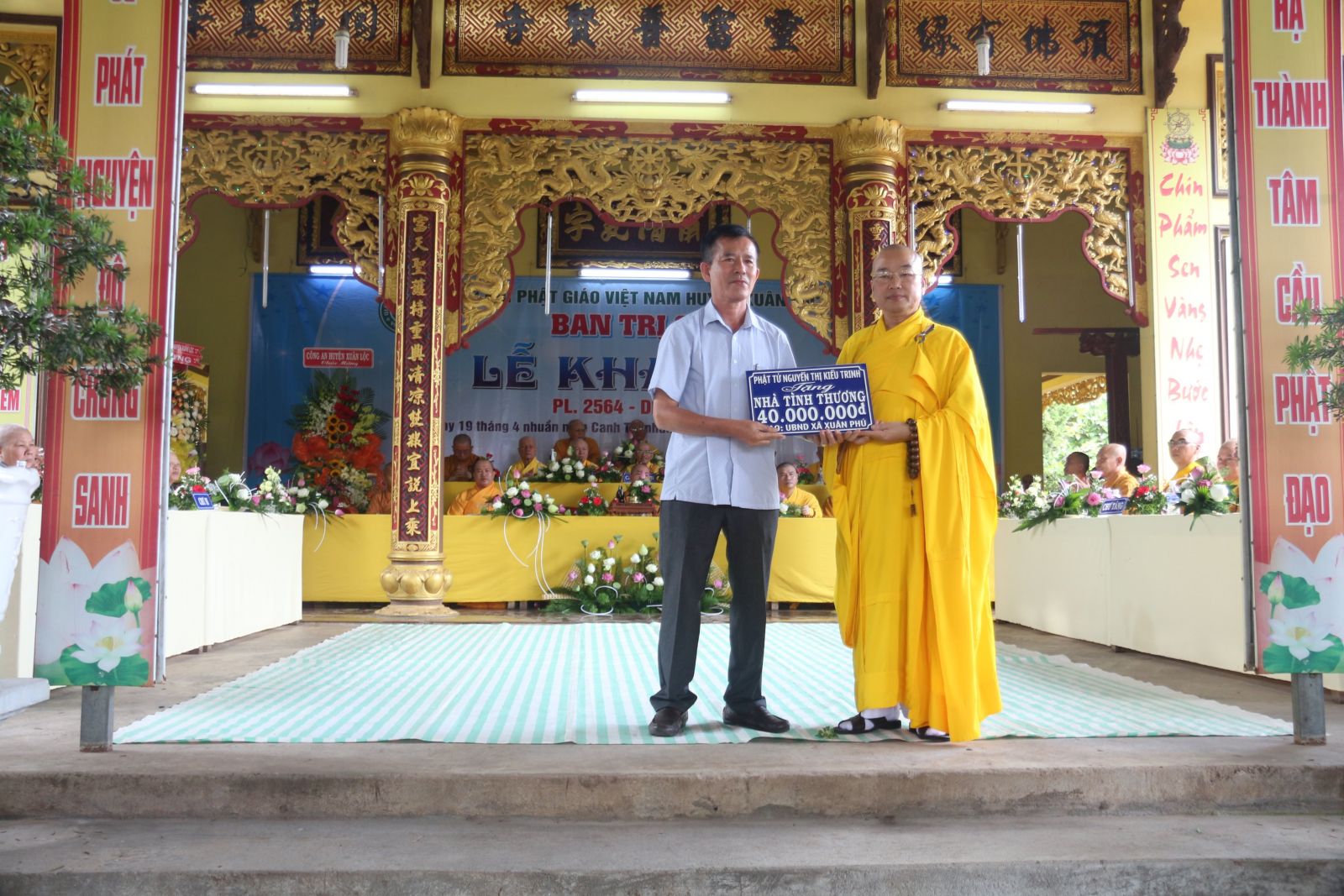 Phật tử tại huyện nhà đã phát tâm trao tặng ba ngôi nhà tình thương trị giá 120 triệu đồng cùng với 300 phần quà ủng hộ đến đồng bào nghèo tại địa phương xã Xuân Phú.