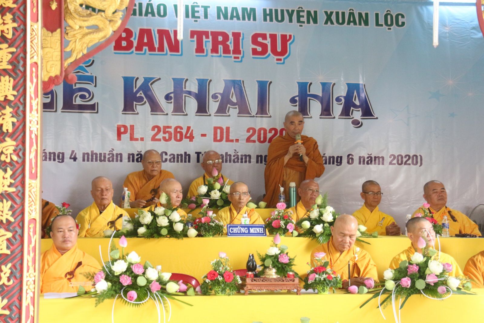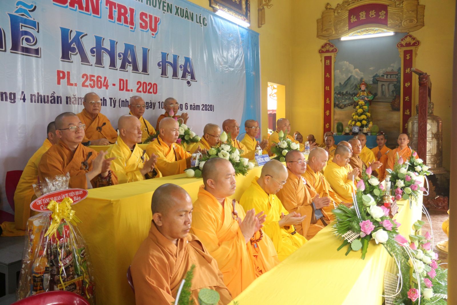 Về phía lãnh đạo GHPGVN huyện Xuân lộc gồm có TT. Thích Tâm Minh - Ủy viên BTS GHPGVN tỉnh, Trưởng BTS GHPGVN huyện, trưởng BTC An cư Kiết hạ; TT. Thích Chánh Huệ - Phó BTS GHPGVN, phó BTC An cư Kiết hạ; ĐĐ. Thích Huệ Quang - Phó trưởng Ban Thường trực BTS, phó BTC An cư Kiết hạ; ĐĐ. Thích Quảng Vinh - Chánh Thư ký BTS; NT. Thích Nữ Minh Ấn - Chứng minh Phân Ban Ni giới; SC. Thích Nữ Trung An- Phó BTS; SC. Thích Nữ Huệ Ngọc – Trưởng Phân Ban đặc trách Ni giới huyện cùng chư Tôn đức thường trực BTS GHPGVN huyện nhà, chư Tăng - Ni trụ trì các tự viện đồng về quang lâm chứng minh và tham dự đông đủ.