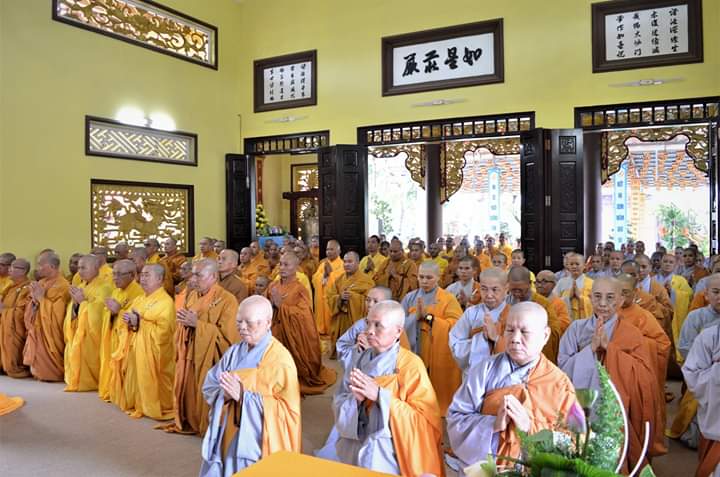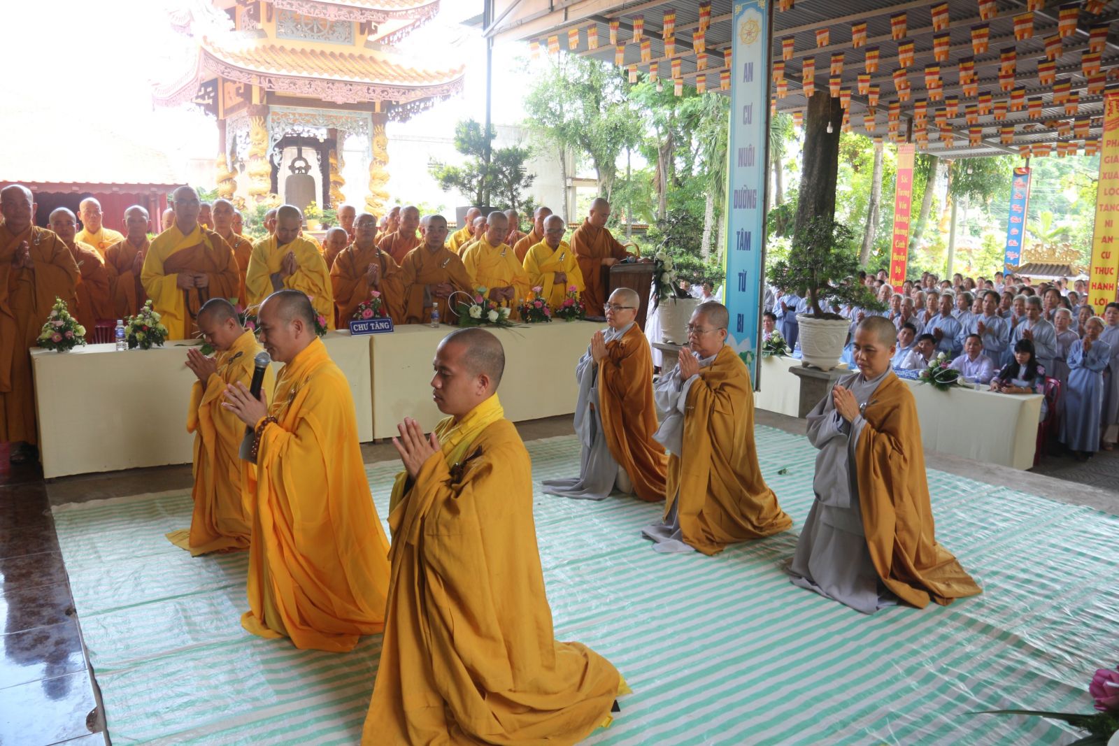 Đại diện chư Tăng Ni hành giả đối trước chư Tôn Đức giáo phẩm để Cung an chức sự, cũng như sự phát nguyện nỗ lực tu học để không phụ lòng mong mỏi của quý Ngài.