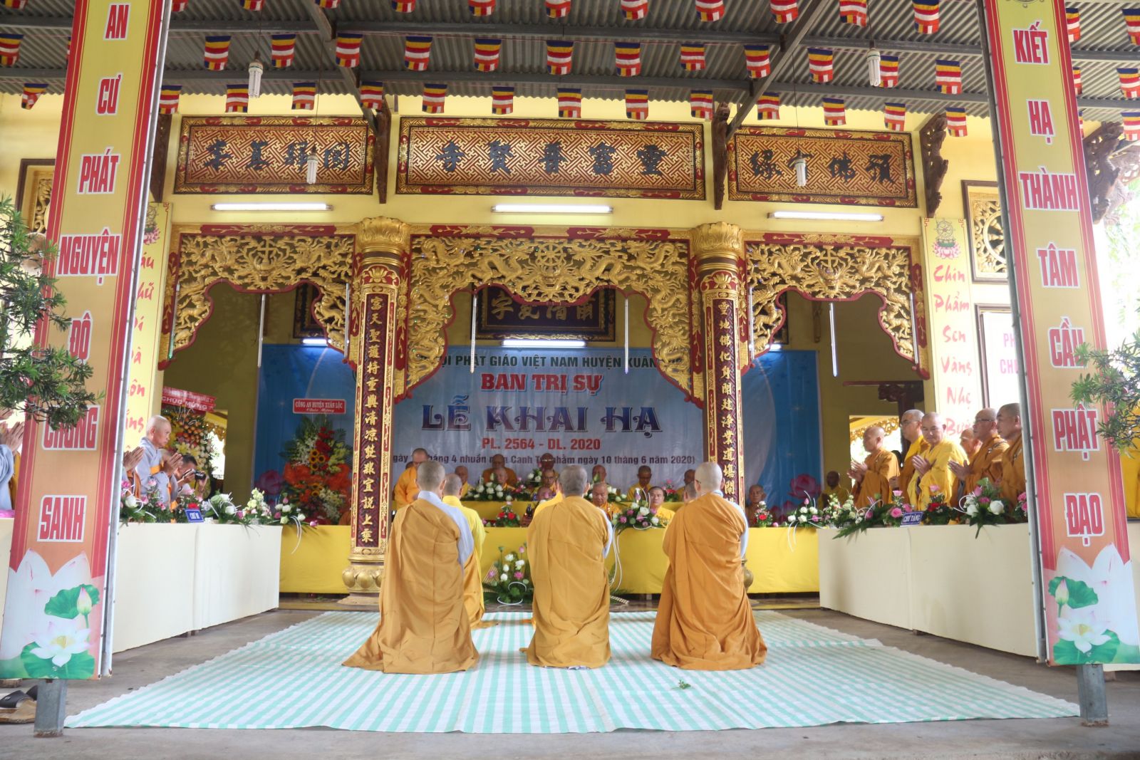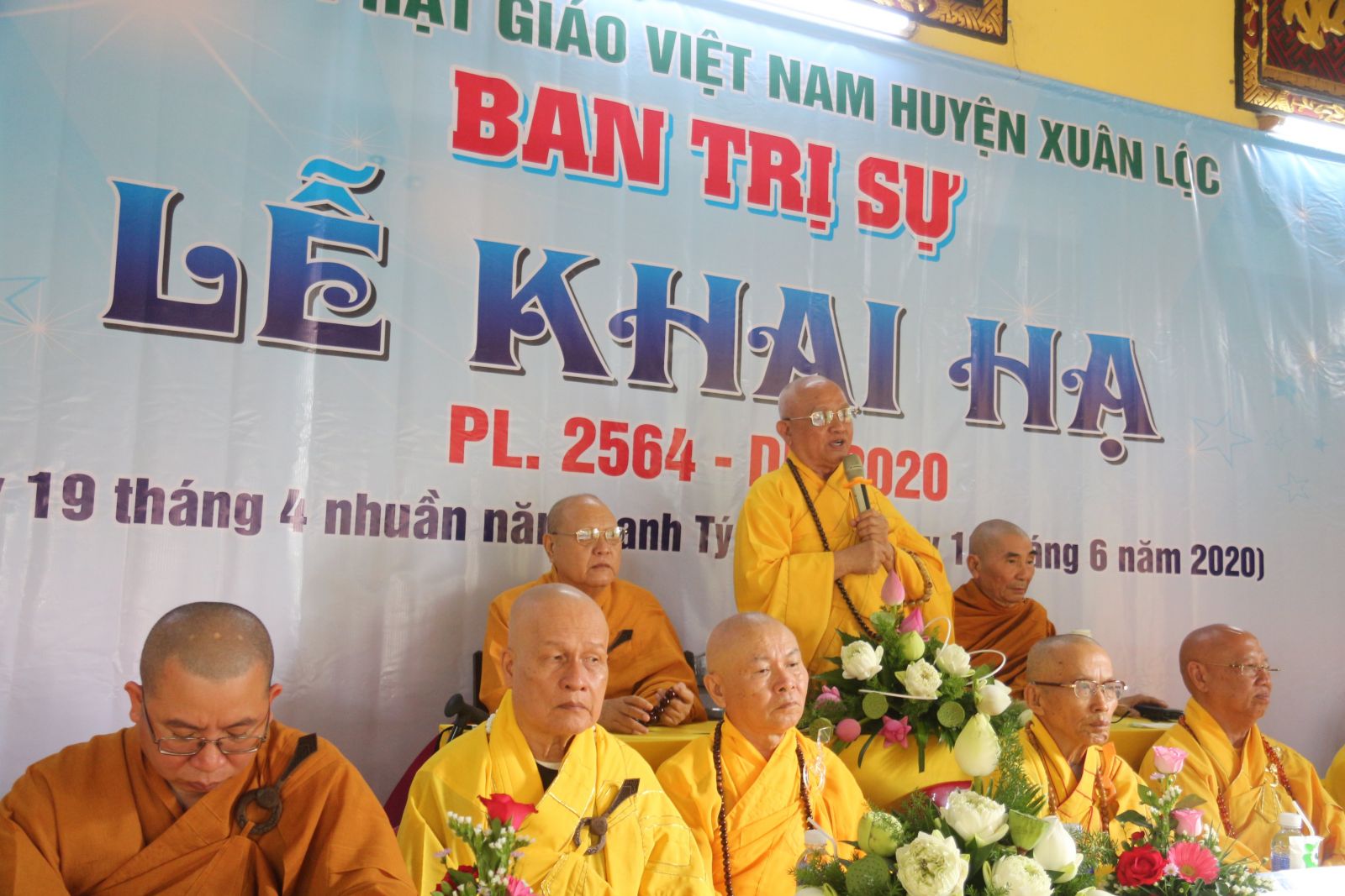 Lễ khai khóa An Cư Kiết Hạ sáng nay long trọng được cung đón chư Tôn Đức giáo phẩm dưới sự chứng minh của HT. Thích Thiện Đạo - Cố vấn BTS GHPGVN tỉnh Đồng Nai; HT. Thích Giác Quang - Phó BTS, Trưởng ban Tăng sự GHPGVN tỉnh Đồng Nai; HT. Thích Liêm Chính - Phó BTS, Trưởng ban Hoằng pháp GHPGVN tỉnh Đồng Nai; HT. Thích Giác Quang - Chứng minh BTS GHPGVN huyện Xuân Lộc; HT. Thích Thiện Hoằng - Chứng minh BTS GHPGVN huyện Xuân Lộc; HT. Thích Như Thanh - Cố vấn BTS GHPGVN huyện Xuân Lộc; ĐĐ. Thích Thiện Trí - Phó Thư ký BTS, Phó Ban kiêm Chánh Thư ký Ban Tăng sự GHPGVN Tỉnh Đồng Nai.