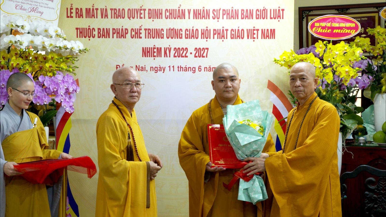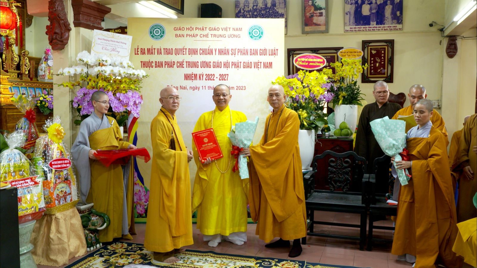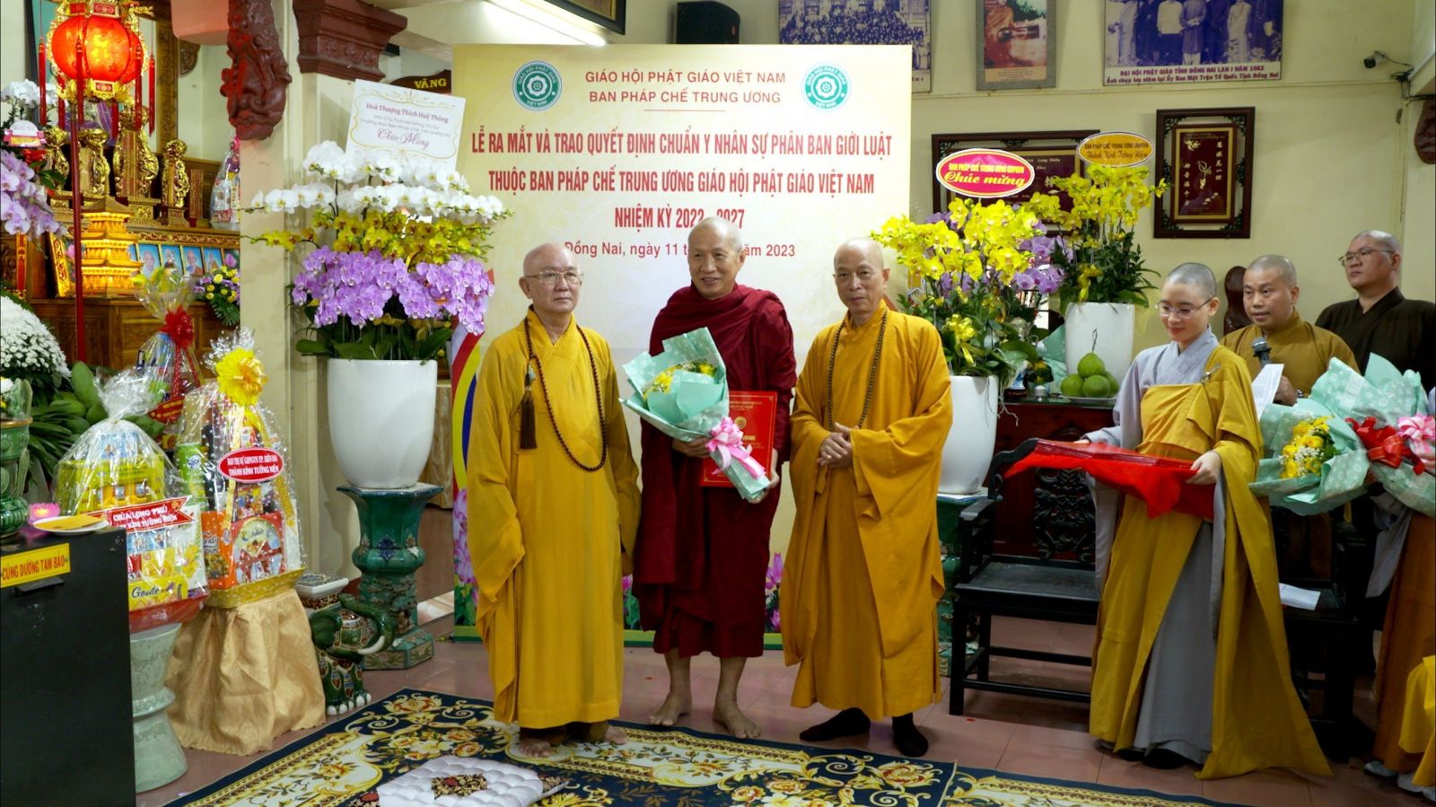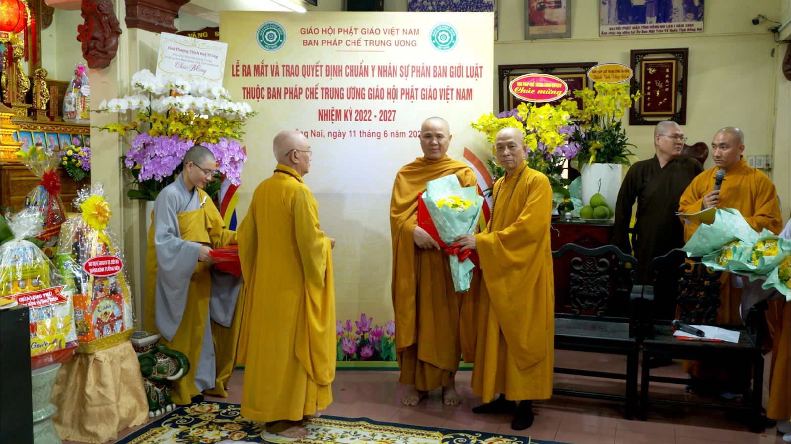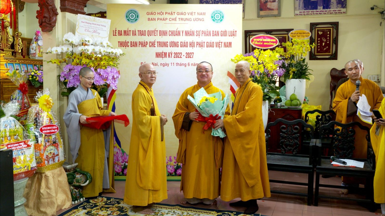 Buổi lễ ra mắt và trao quyết định chuẩn y nhân sự của Phân ban Giới luật thuộc ban Pháp chế TƯ GHPGVN đã đón nhận những lẵng hoa chúc mừng của các ban ngành.