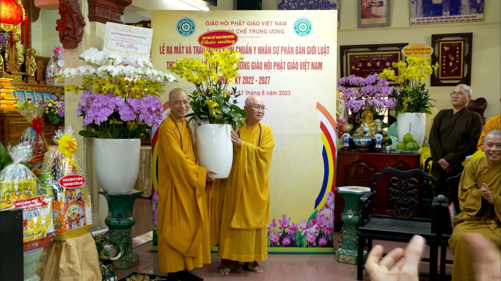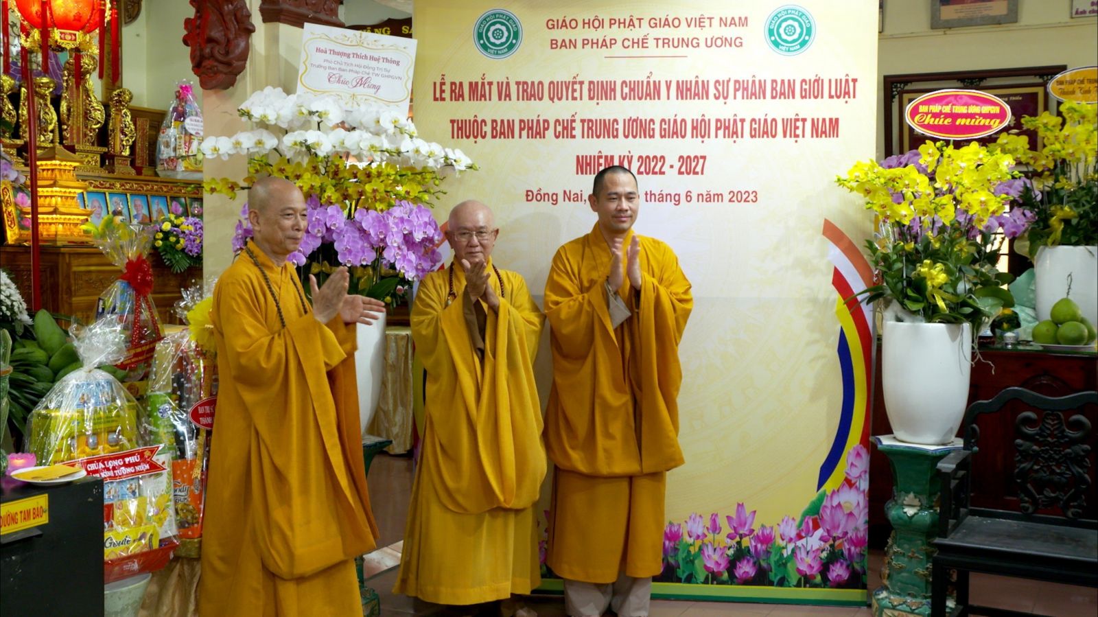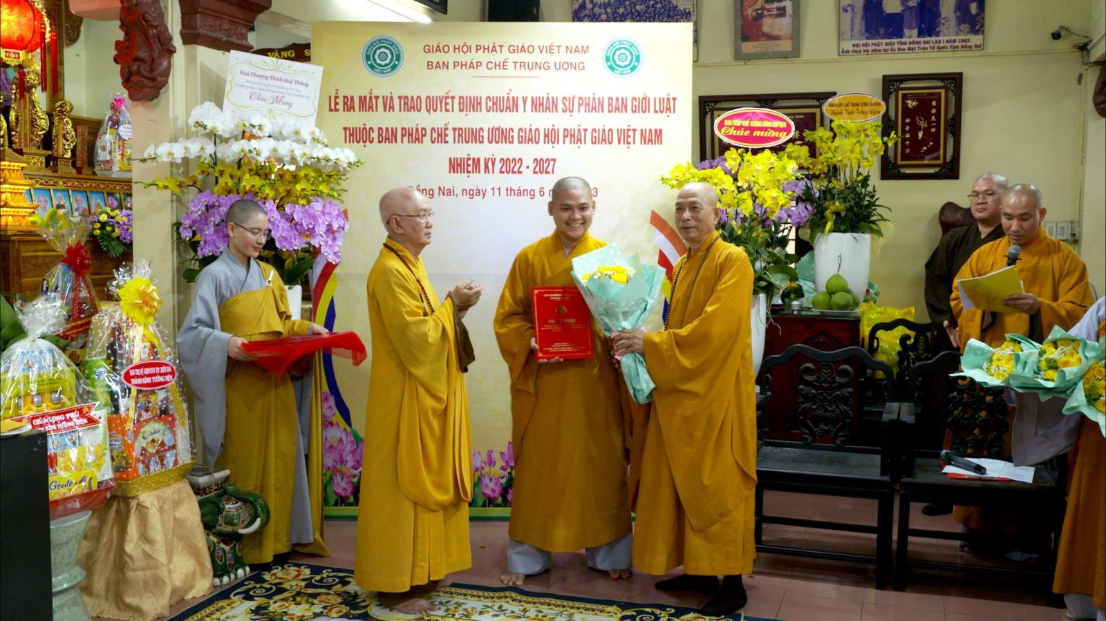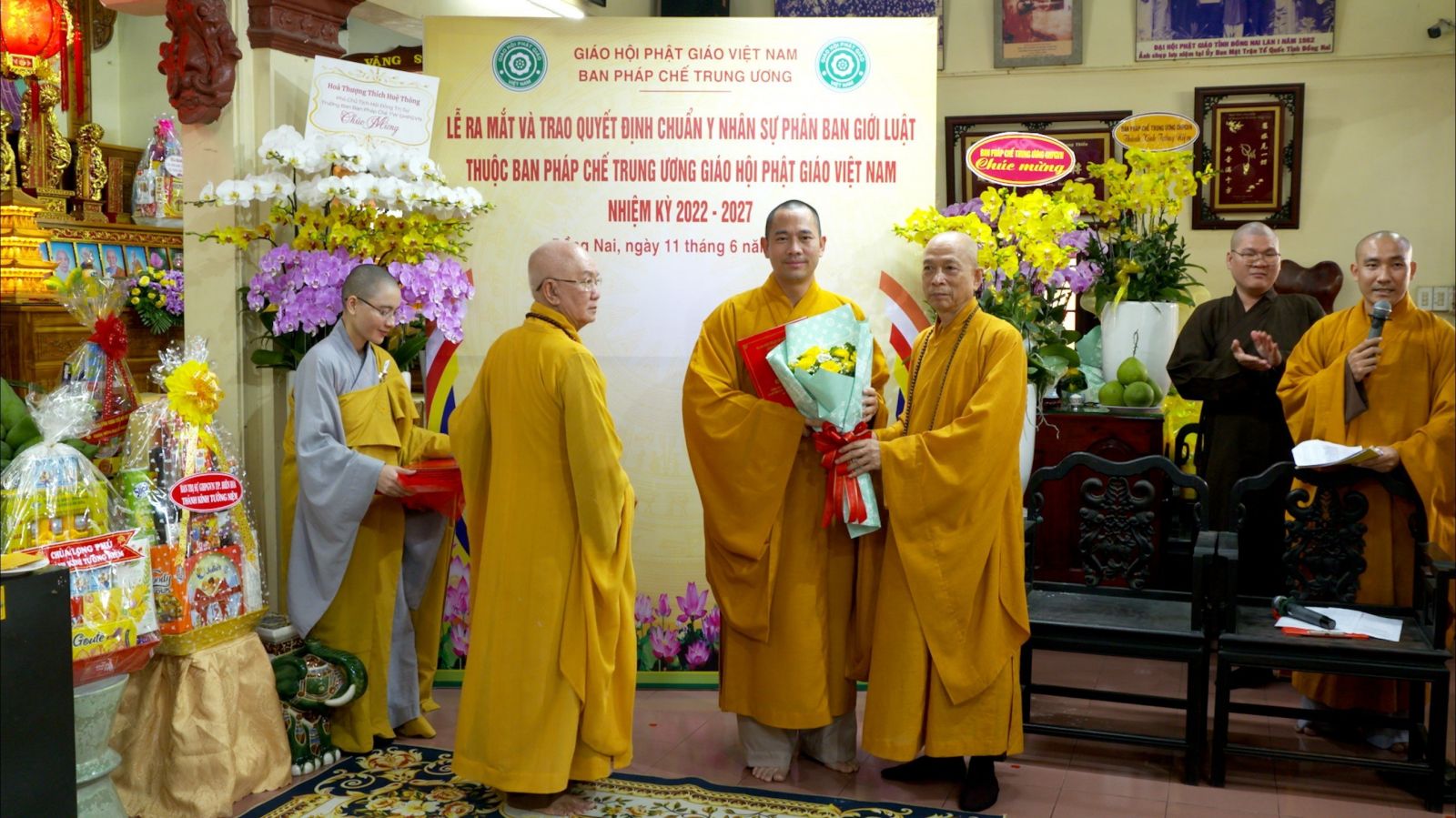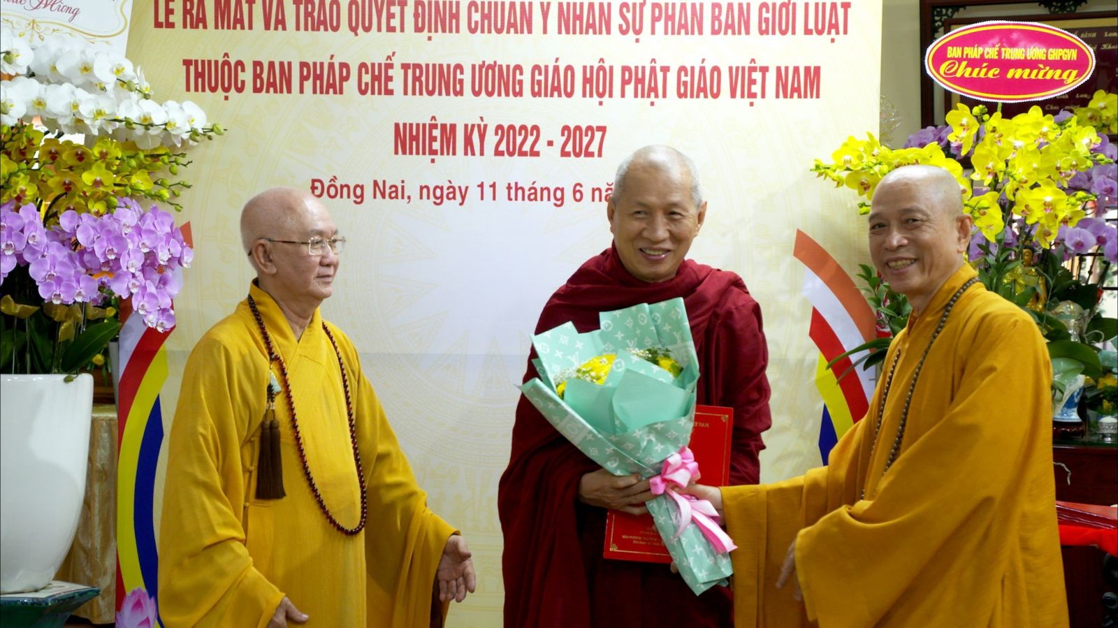 Buổi lễ ra mắt và trao quyết định chuẩn y nhân sự của Phân ban Giới luật thuộc ban Pháp chế TƯ GHPGVN đã đón nhận những lẵng hoa chúc mừng của các ban ngành.