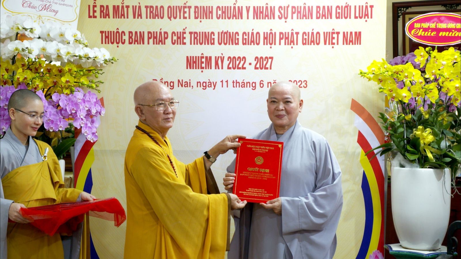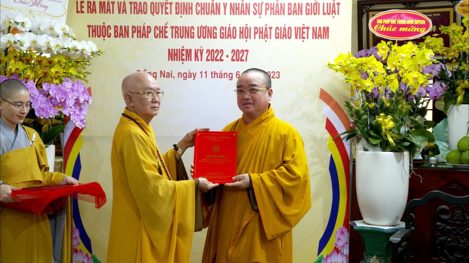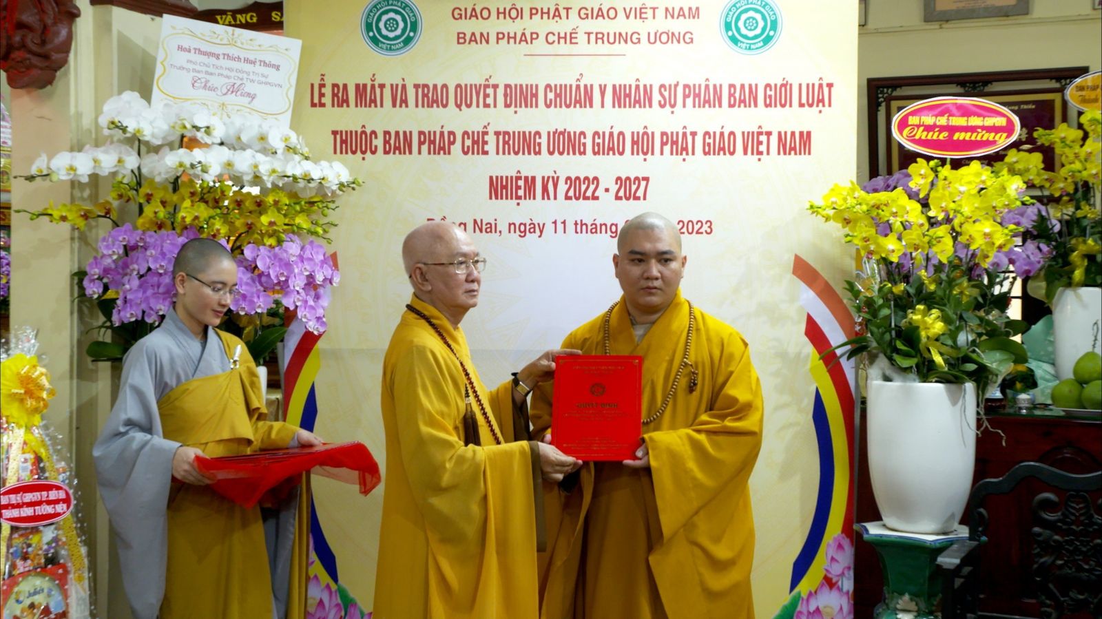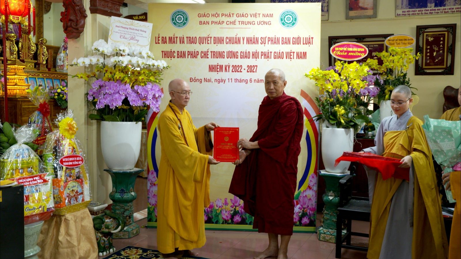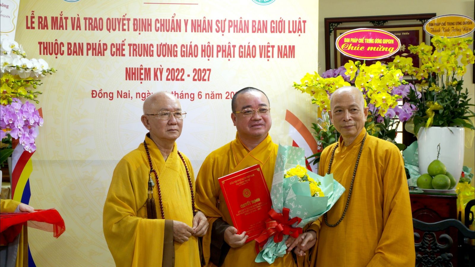 Buổi lễ ra mắt và trao quyết định chuẩn y nhân sự của Phân ban Giới luật thuộc ban Pháp chế TƯ GHPGVN đã đón nhận những lẵng hoa chúc mừng của các ban ngành.