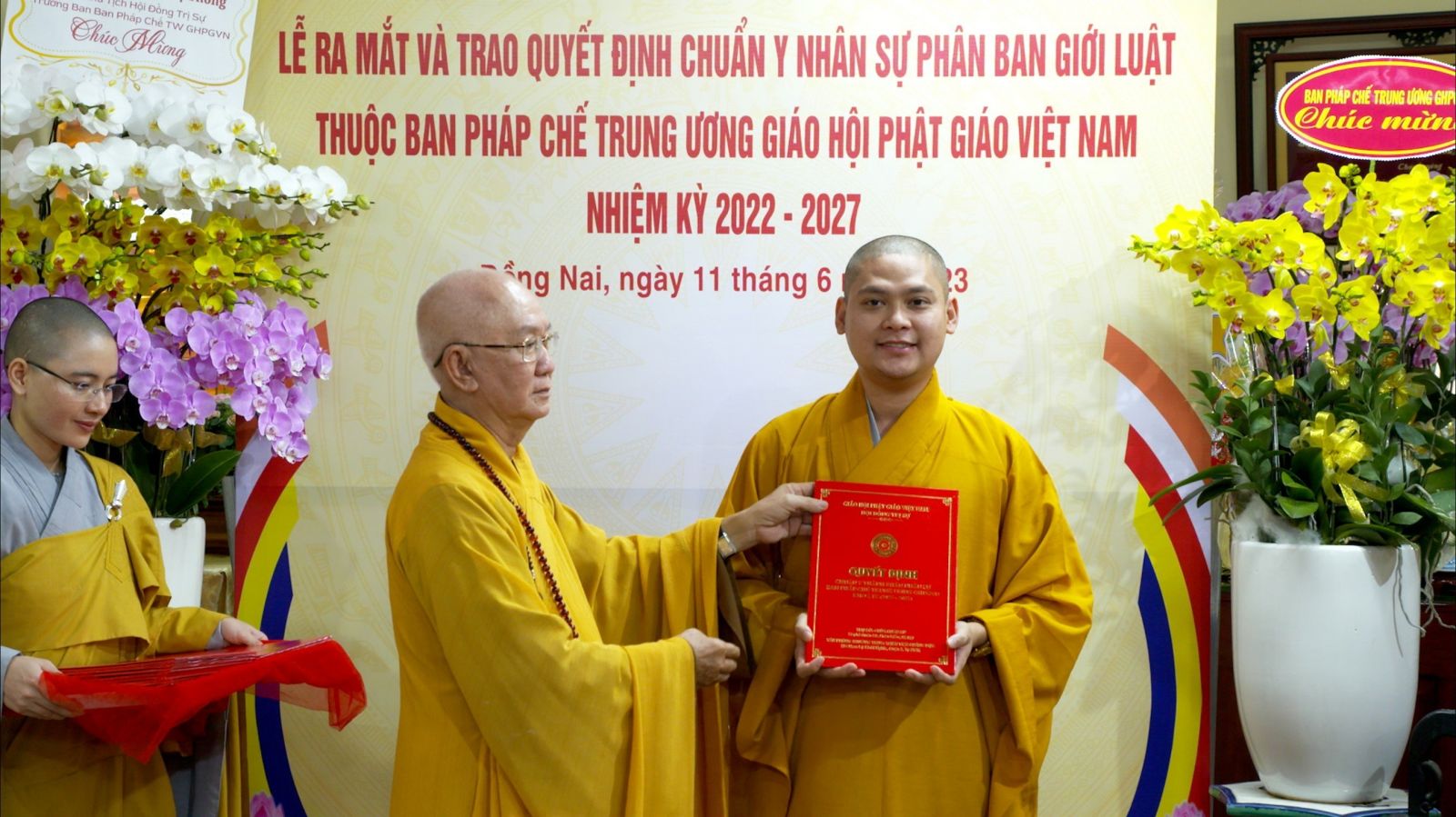 Tại buổi lễ, ĐĐ. Thích Minh Thảo đại diện ban Pháp chế TƯ GHPGVN tuyên đọc Quyết định Chuẩn Y nhân sự ban Giới luật thuộc ban Pháp chế TƯ GHPGVN. Tiếp theo đó, HT. Thích Tịnh Thành đã trao quyết định Chuẩn y nhân sự và TT. Thích Huệ Khai tặng hoa chúc mừng cho từng thành viên Phân ban Giới luật.