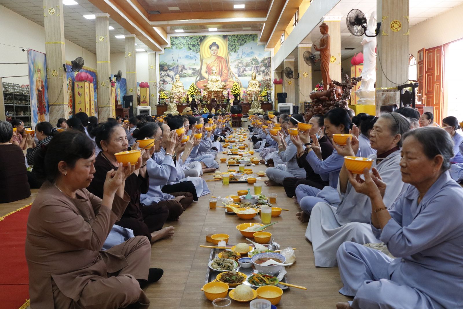 Sau lễ truyền giới, Tăng chúng tại bổn tự hướng dẫn đạo tràng tụng kinh, niệm Phật, kinh hành và cúng ngọ, thọ trai.