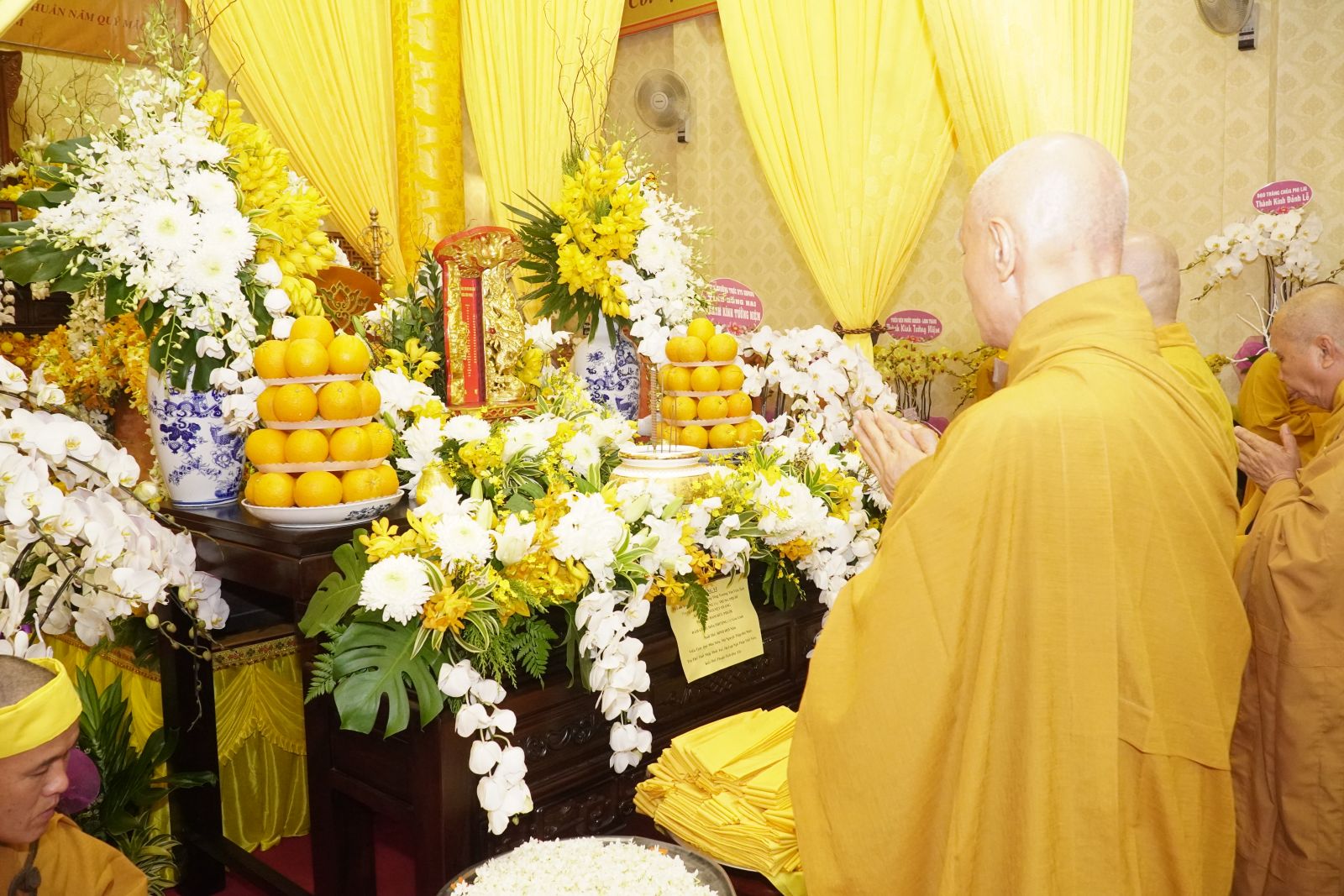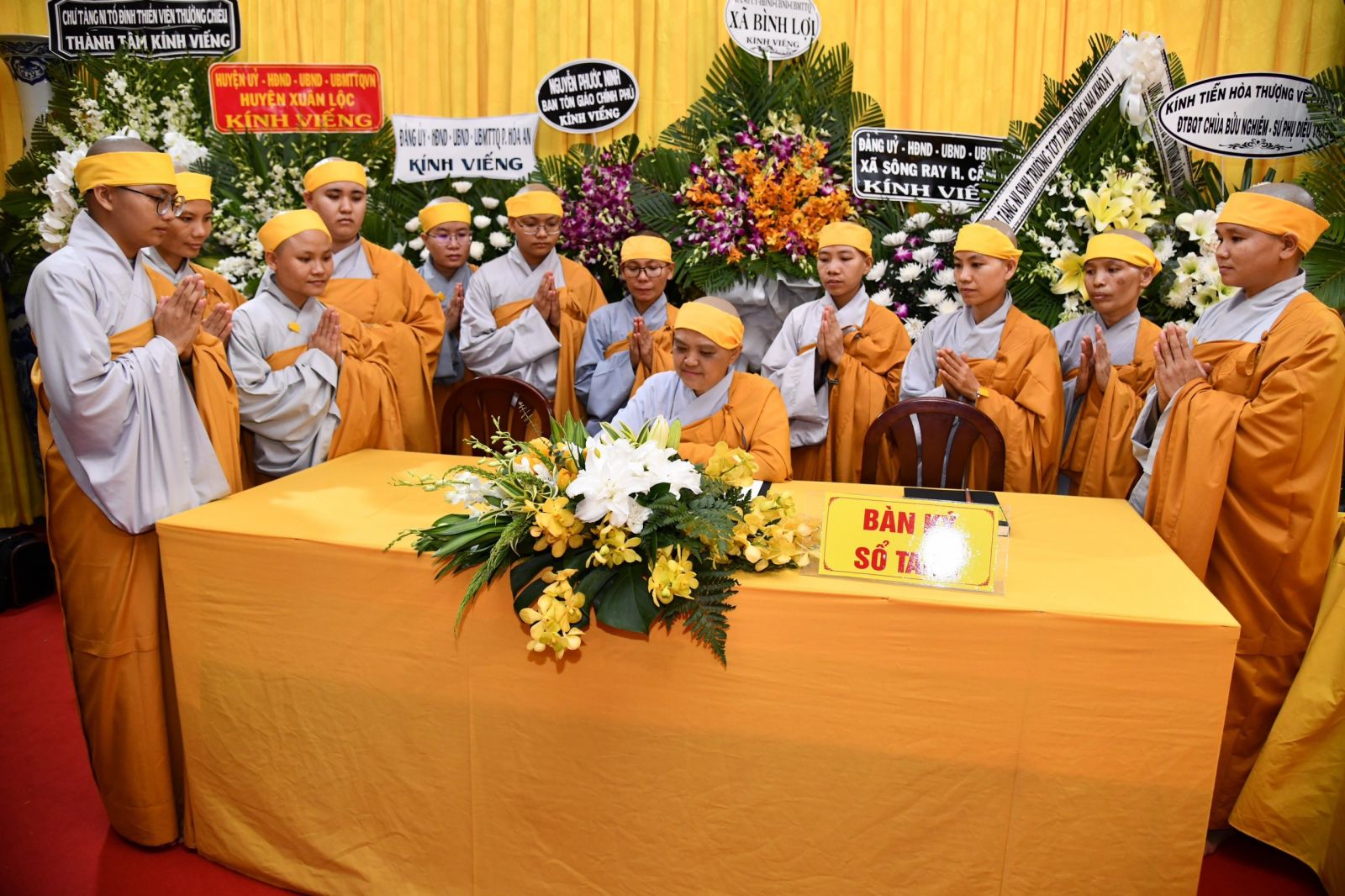 Thành kính cung đón Chư tôn đức Ban Trị sự GHPGVN huyện Xuân Lộc do HT. Thích Giác Quang – Chứng minh Ban Trị sự GHPGVN huyện Xuân Lộc và TT. Thích Huệ Quang – Phó trưởng ban Thường trực Ban Trị sự GHPGVN huyện Xuân Lộc làm trưởng đoàn cùng chư tôn đức Tăng, Ni Ban Trị sự GHPGVN huyện trang nghiêm dâng hương và tưởng niệm Giác Linh.