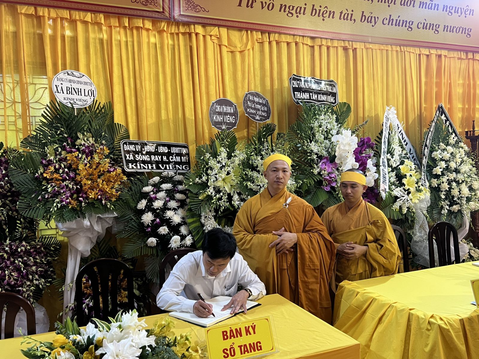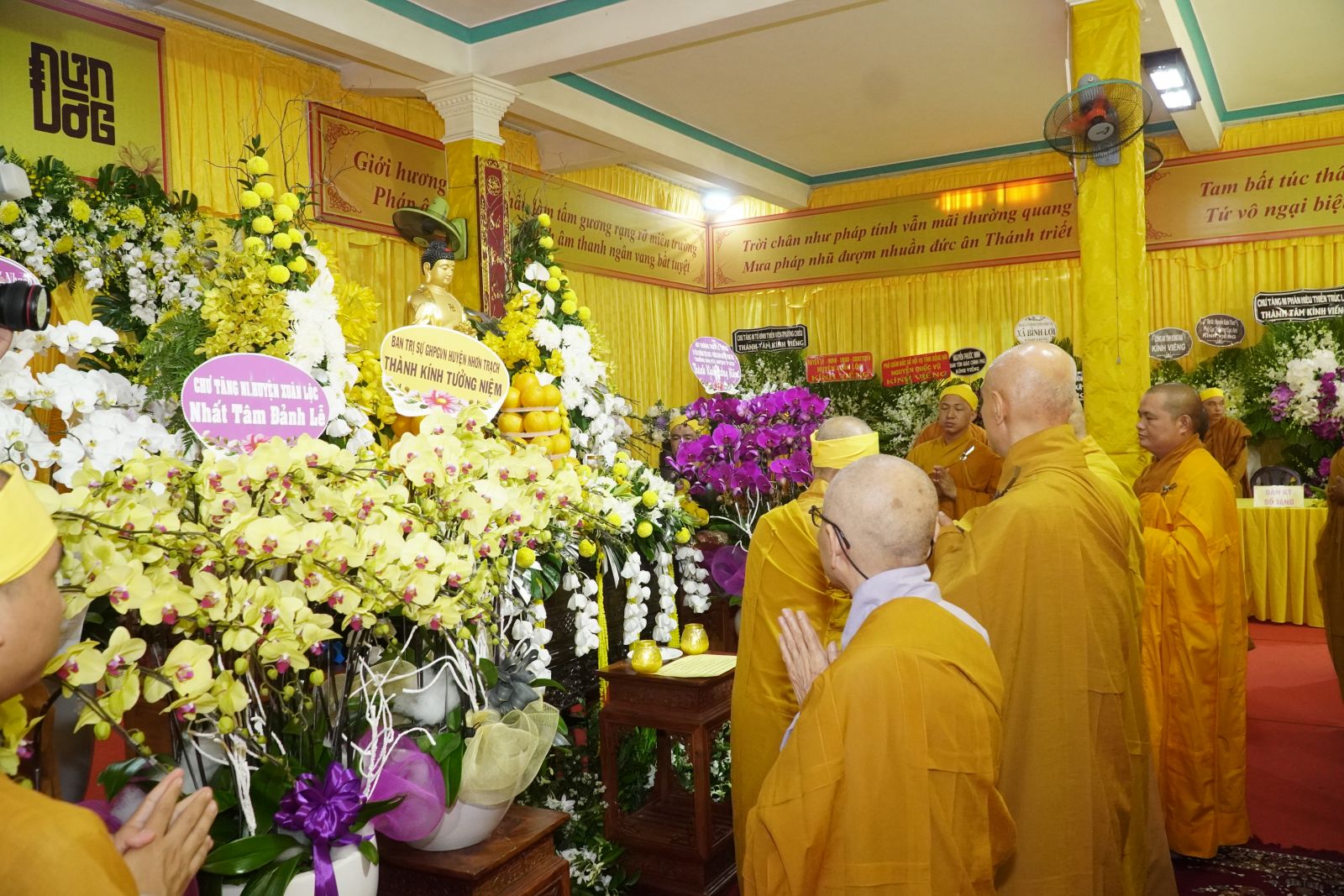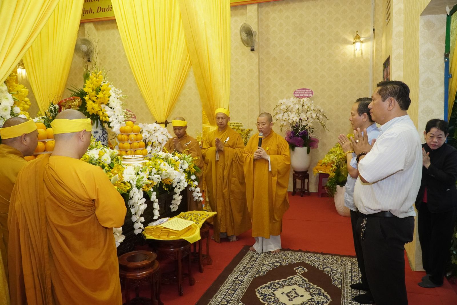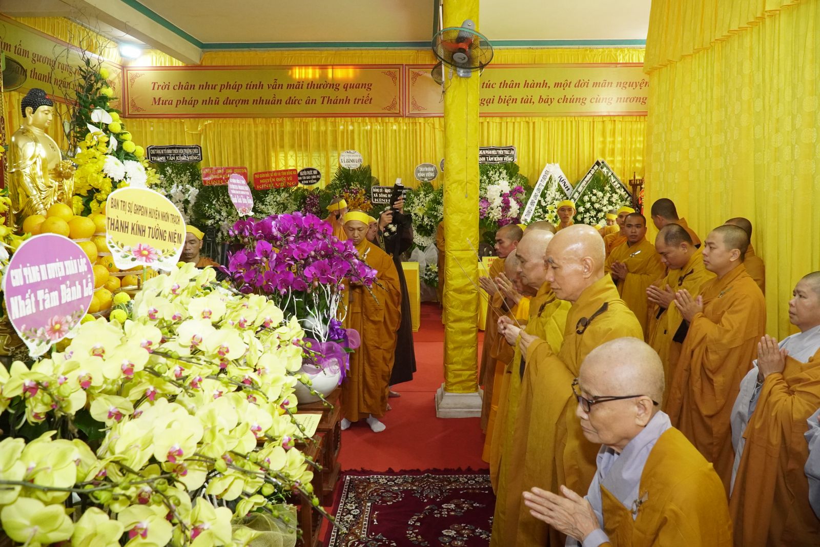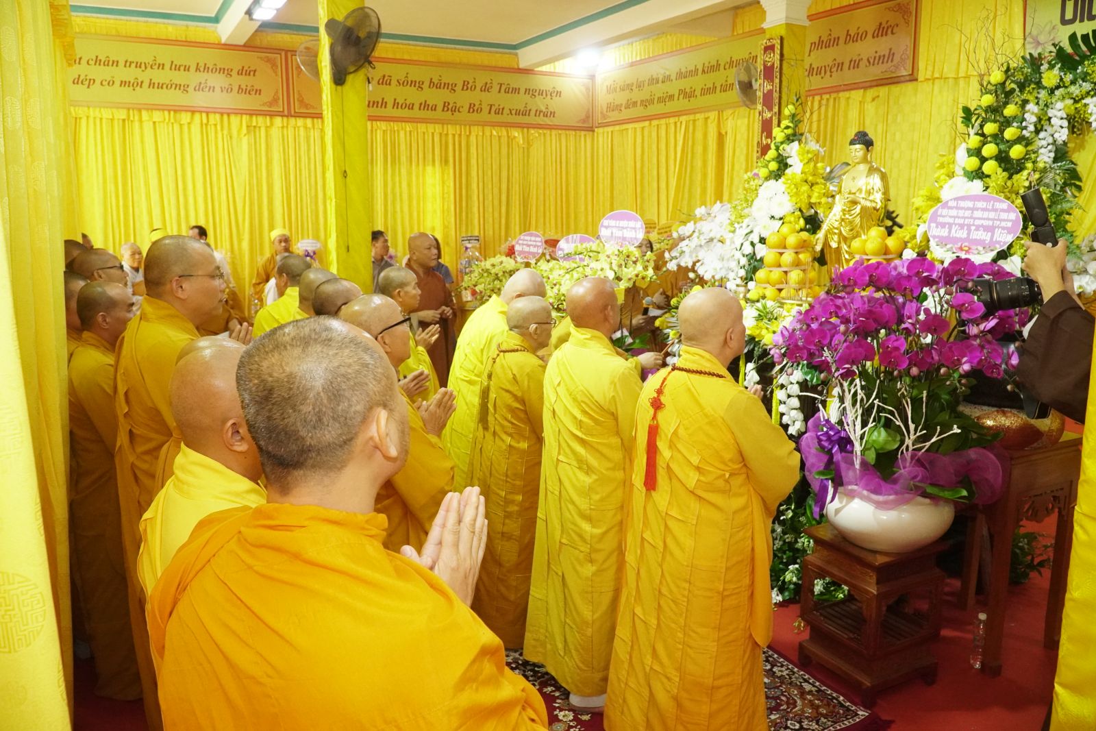 Thành kính cung đón Chư tôn đức Ban Trị sự GHPGVN Tp. Long Khánh do TT. Thích Huệ Tánh – Trưởng ban Hướng dẫn Phật tử tỉnh Đồng Nai, Trưởng Ban Trị sự GHPGVN Tp. Long Khánh; cùng Chư tôn đức trong Ban Trị sự GHPGVN Tp. Biên Hòa đối trước Giác linh đài dâng hương tưởng niệm.