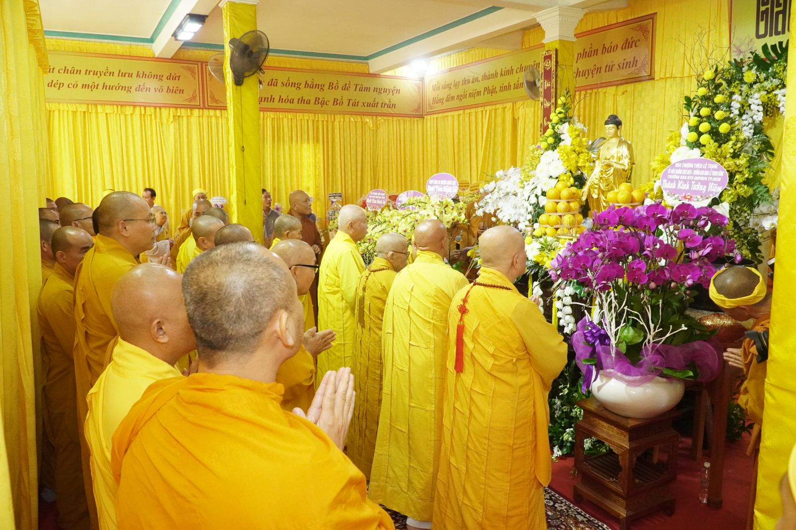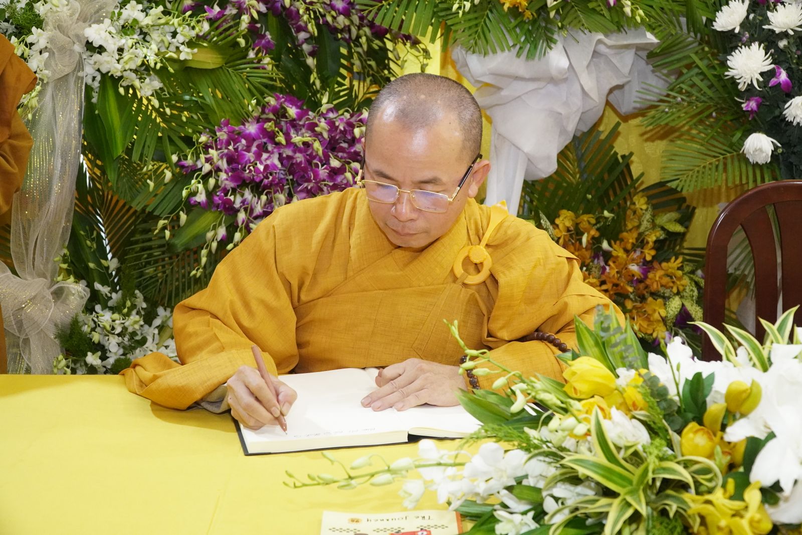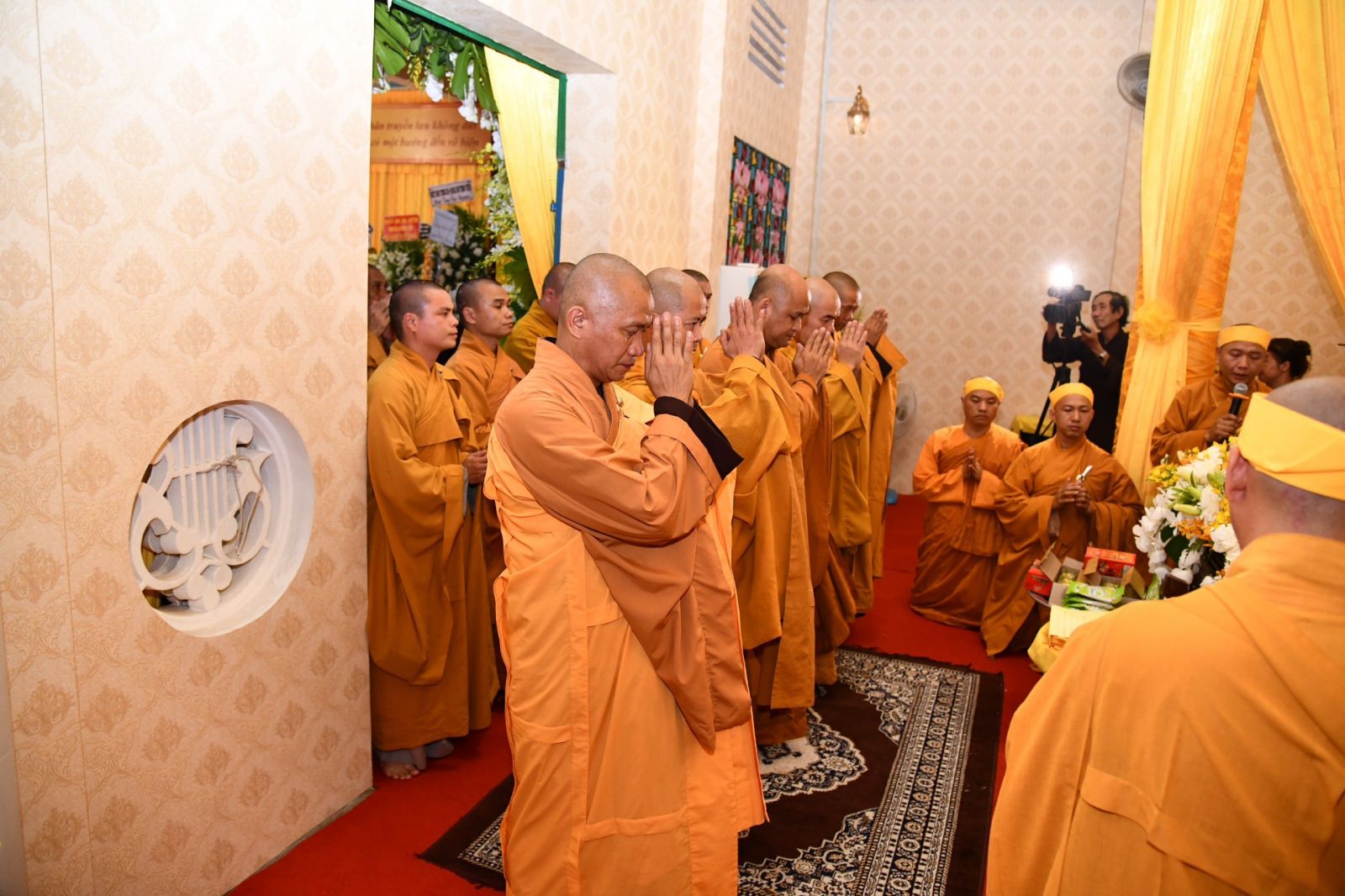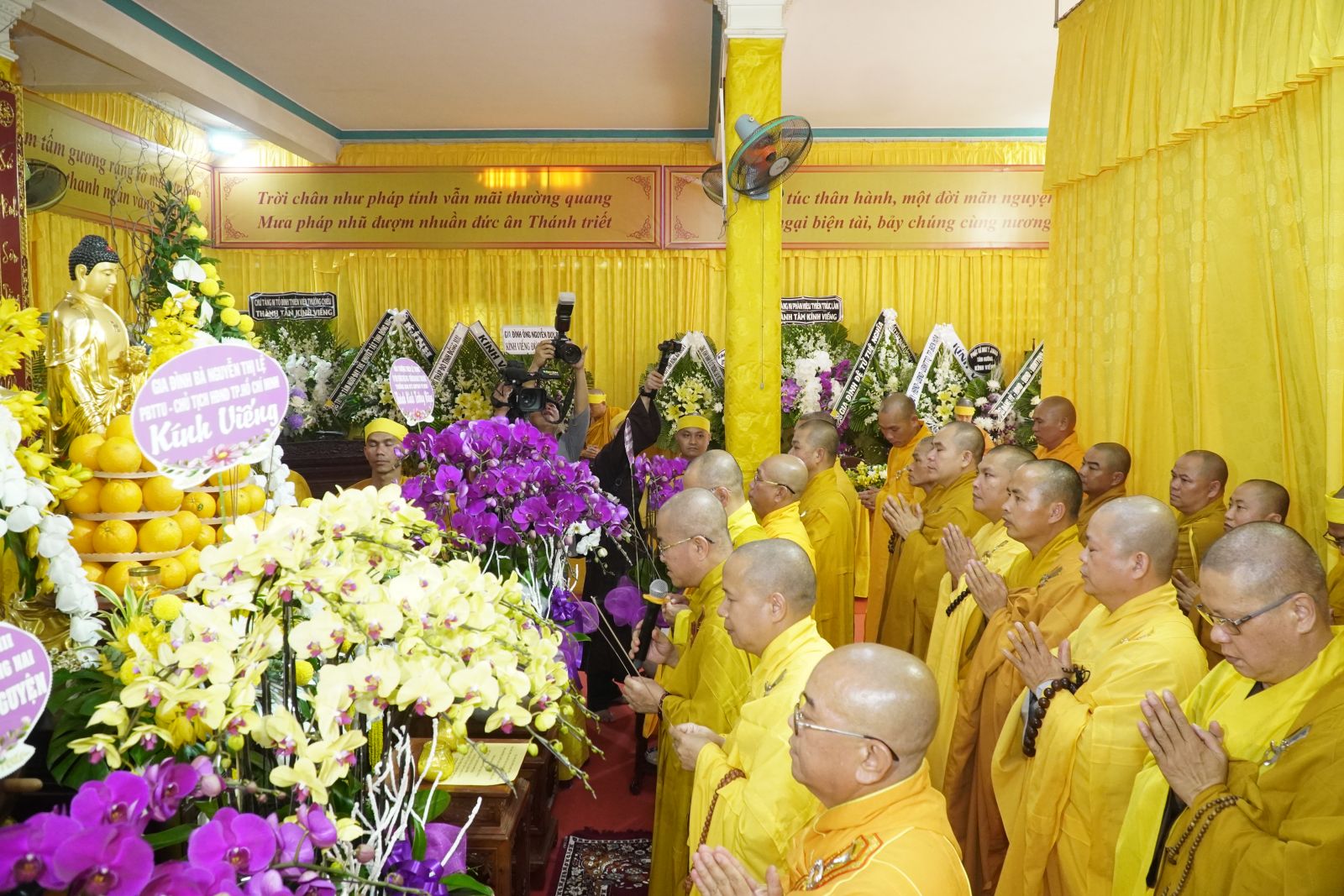 Thành kính cung đón Chư tôn đức Ban Trị sự GHPGVN Tp. Long Khánh do TT. Thích Huệ Tánh – Trưởng ban Hướng dẫn Phật tử tỉnh Đồng Nai, Trưởng Ban Trị sự GHPGVN Tp. Long Khánh; cùng Chư tôn đức trong Ban Trị sự GHPGVN Tp. Biên Hòa đối trước Giác linh đài dâng hương tưởng niệm.