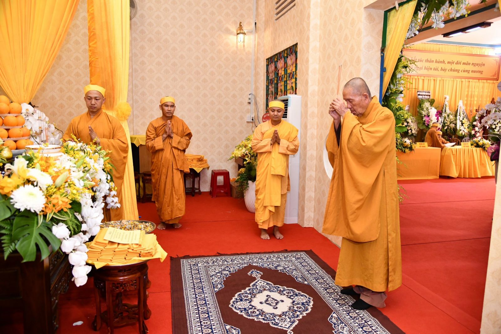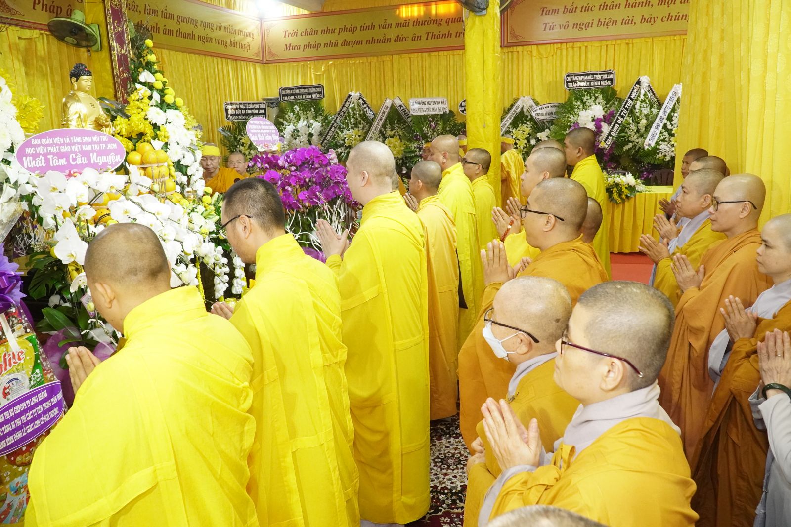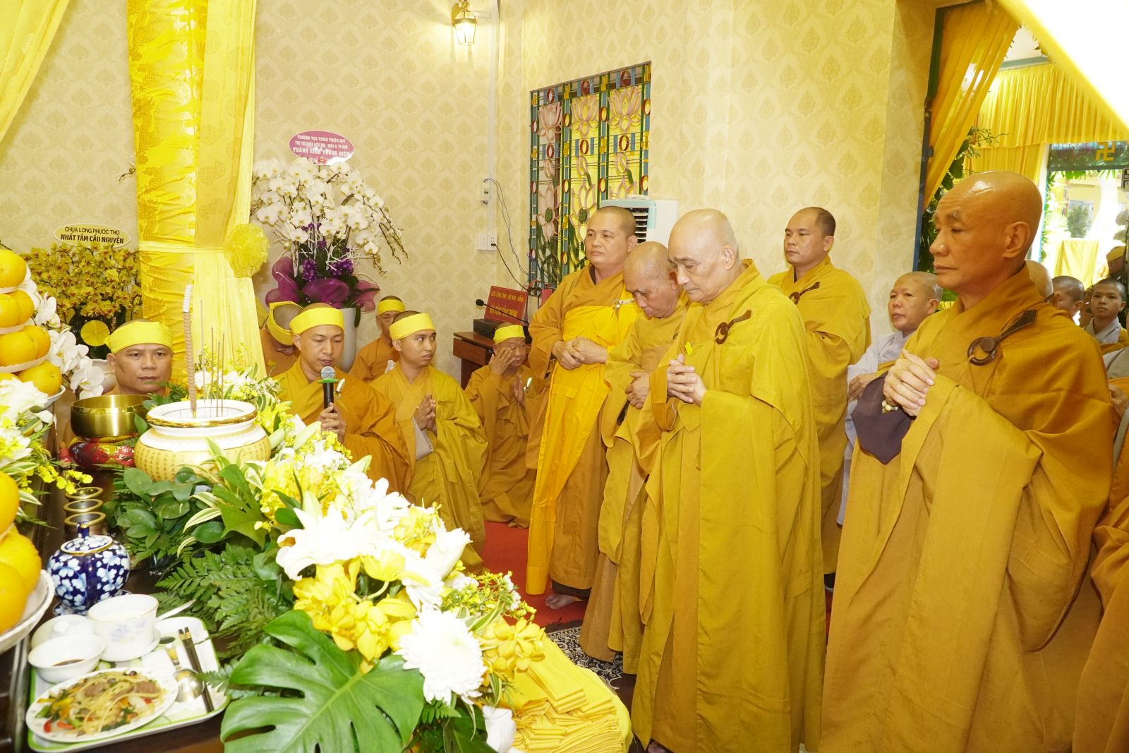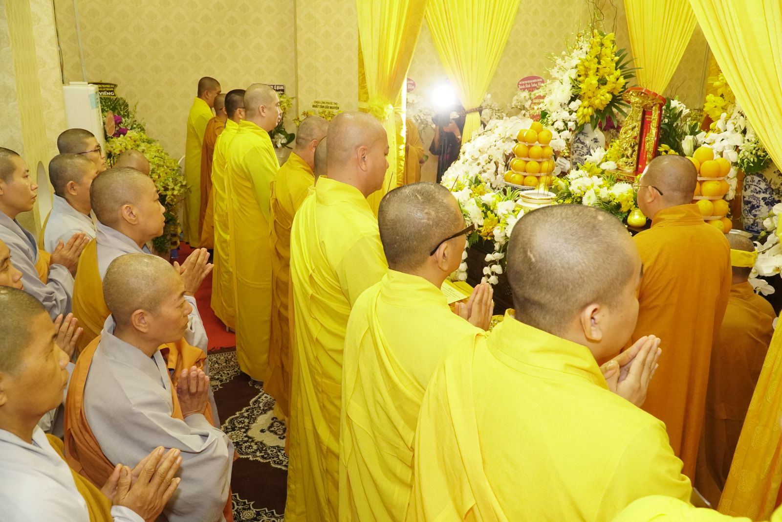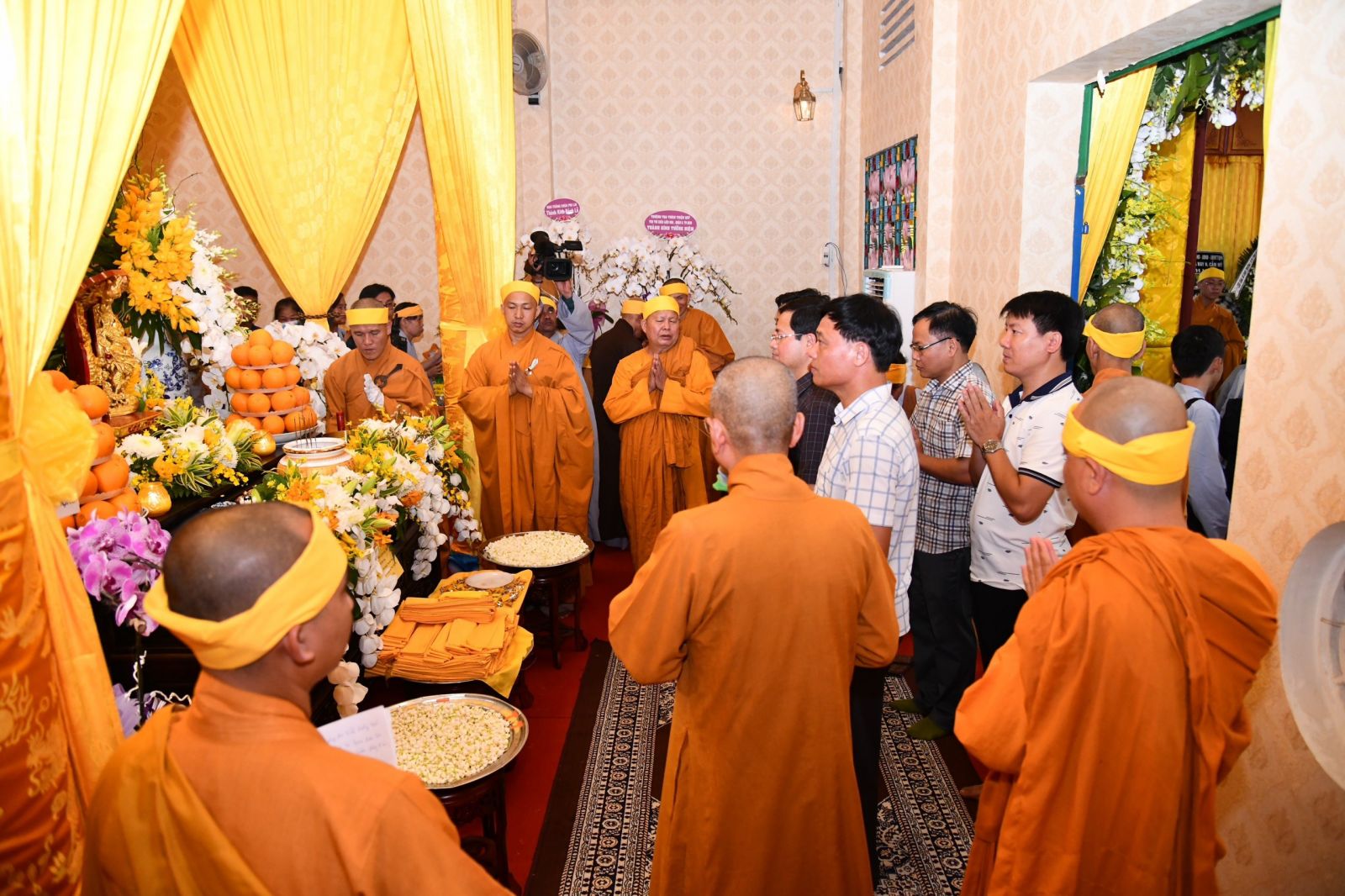 Thành kính cung đón Chư tôn đức Ban Trị sự GHPGVN Tp. Long Khánh do TT. Thích Huệ Tánh – Trưởng ban Hướng dẫn Phật tử tỉnh Đồng Nai, Trưởng Ban Trị sự GHPGVN Tp. Long Khánh; cùng Chư tôn đức trong Ban Trị sự GHPGVN Tp. Biên Hòa đối trước Giác linh đài dâng hương tưởng niệm.