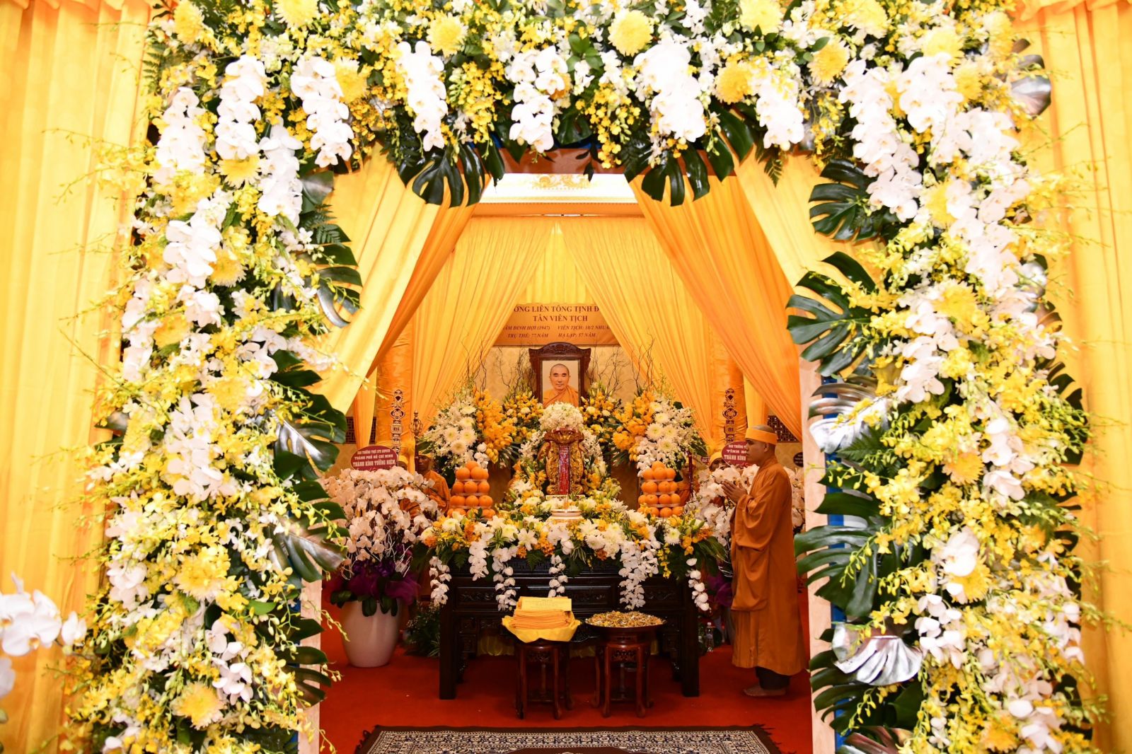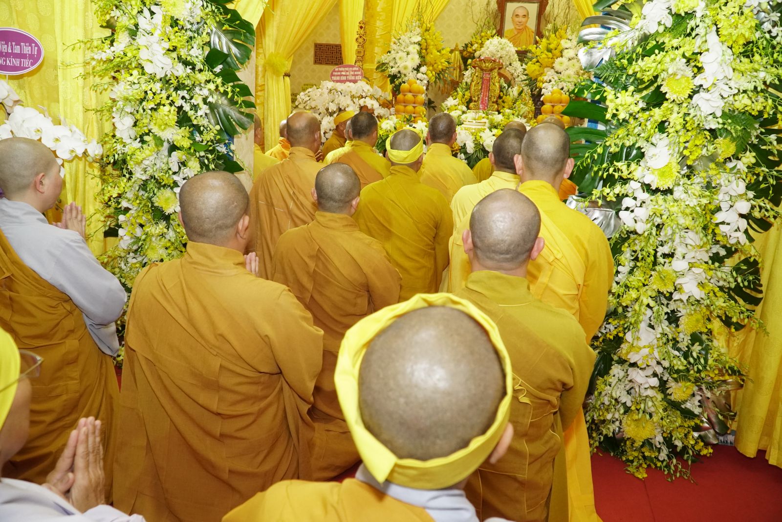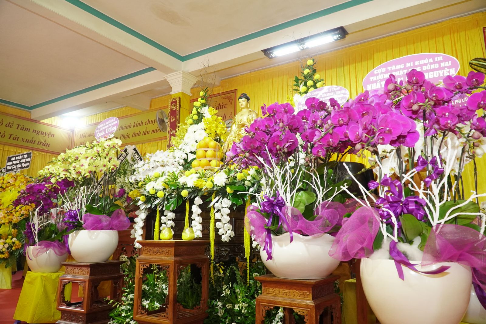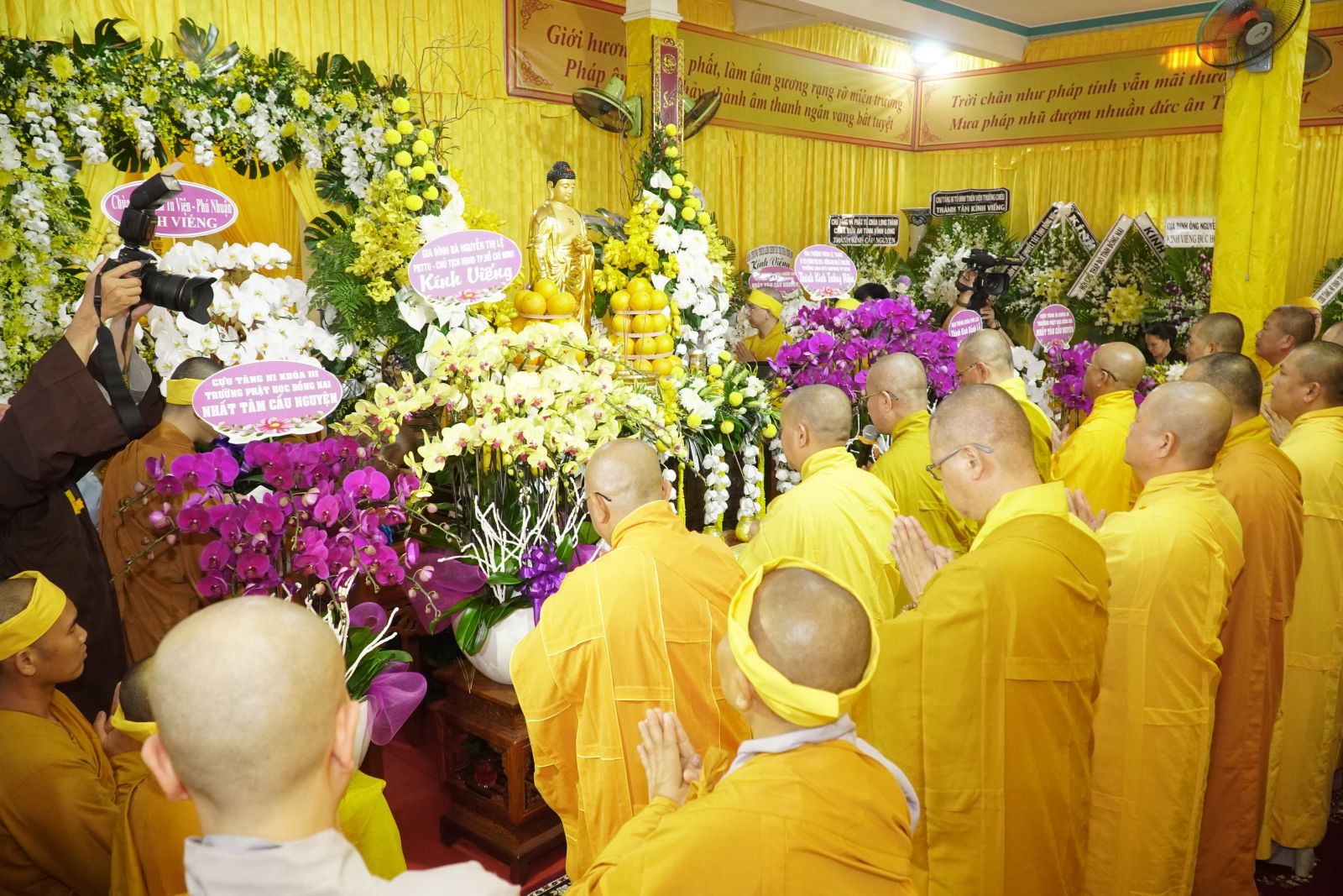 Thành kính cung đón chư tôn đức Khóa III – Trung Cấp Phật Học Đồng Nai do TT. Thích Quảng Hiền - Ủy viên HĐTS, Trưởng Ban Trị sự GHPGVN tỉnh Đắk Nông làm trưởng đoàn cùng chư tôn đức Tăng Ni lớp Trung Cấp Phật Học Đồng Nai Khóa III trang nghiêm cung đối trước Giác linh đài dâng hương tưởng niệm và đảnh lễ Tôn sư Giác linh.
