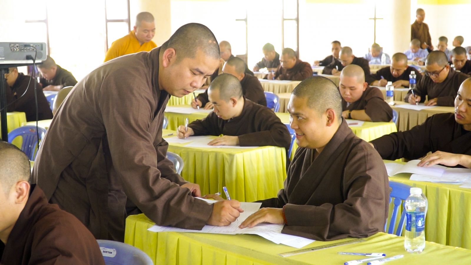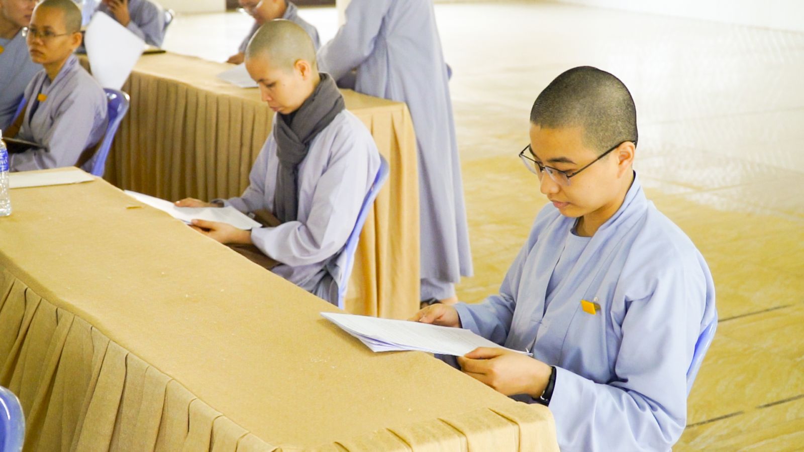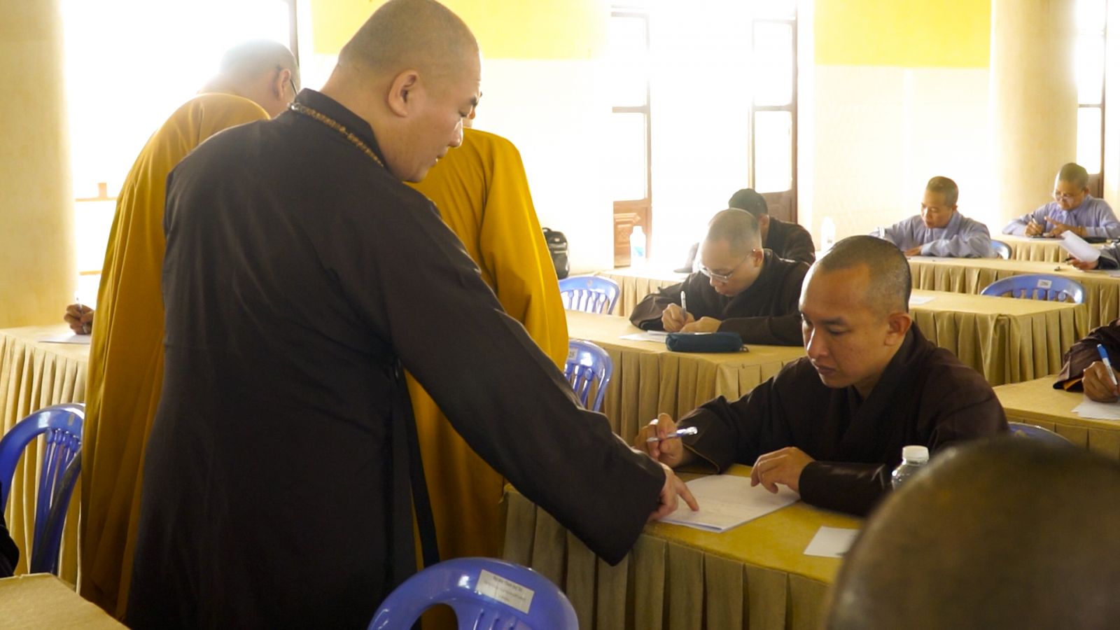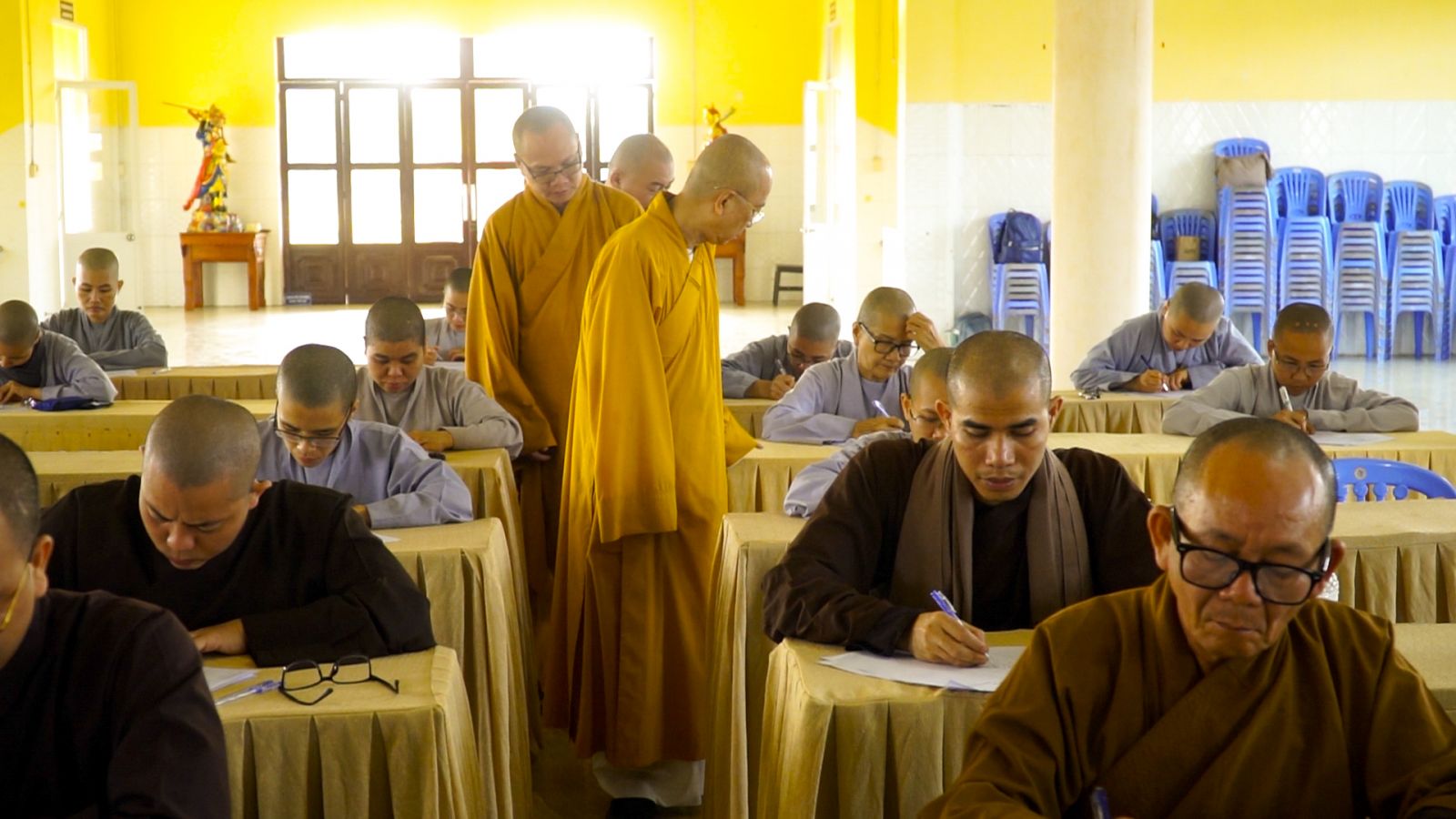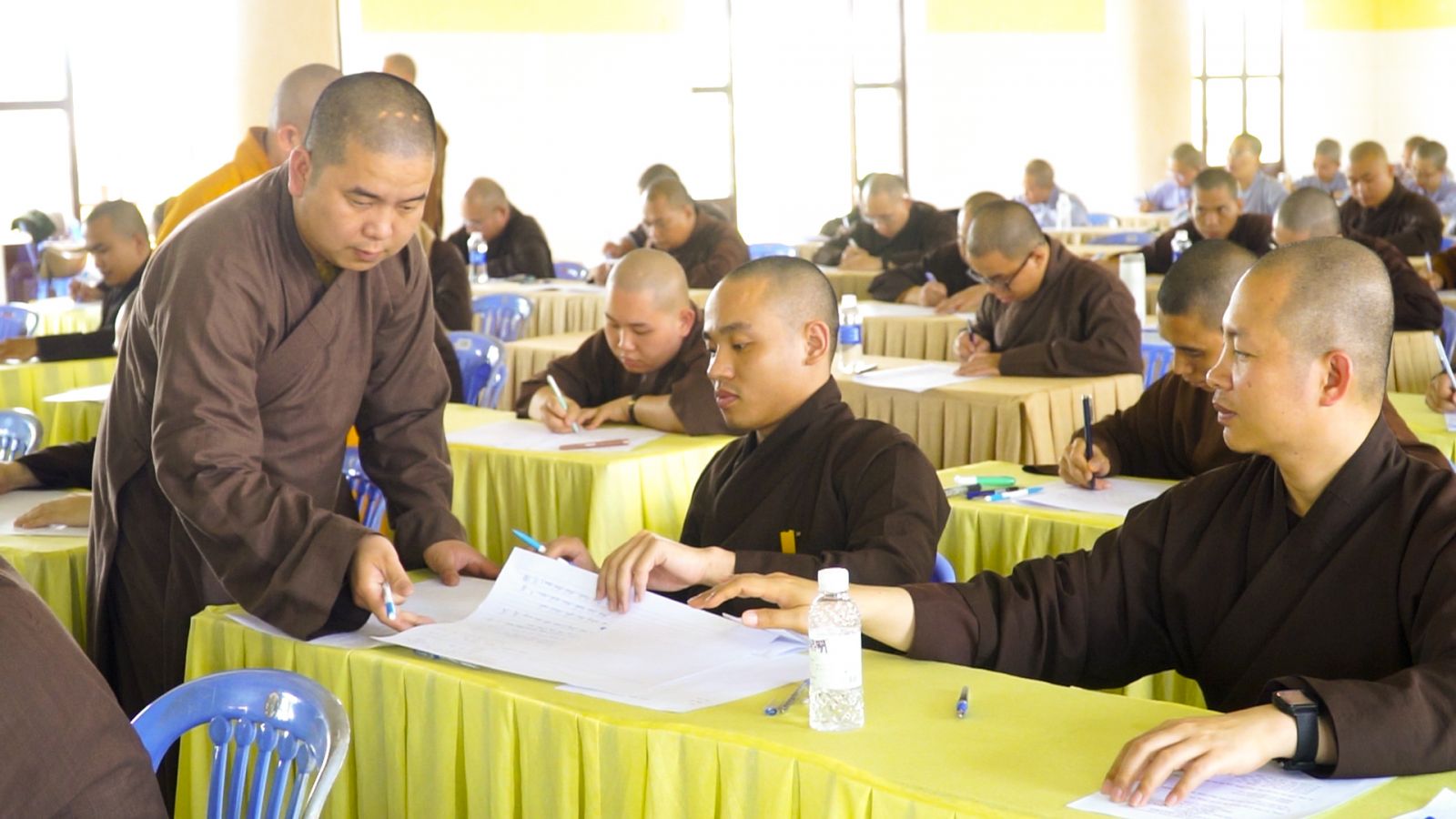 Trước giờ thi, Ban Chủ nhiệm lớp đã có buổi gặp gỡ và sách tấn các Tăng Ni sinh, khích lệ tinh thần học tập và nhắc nhở về tầm quan trọng của việc nắm vững kiến thức Phật pháp.