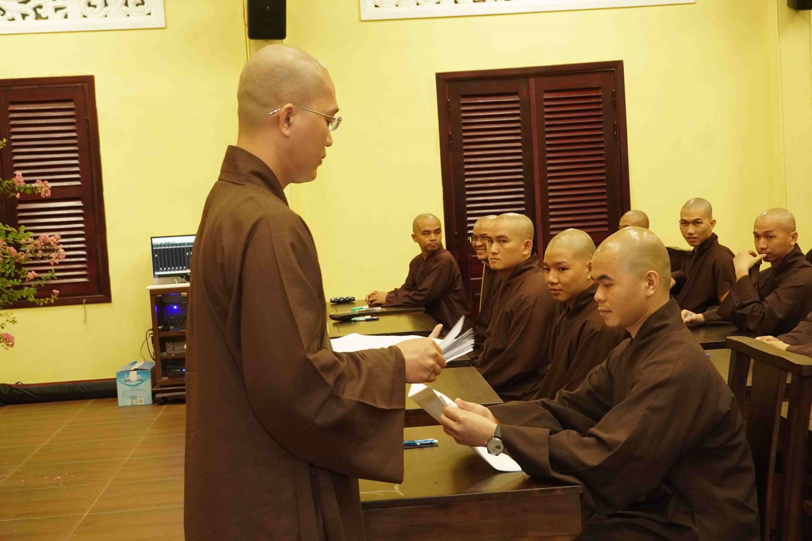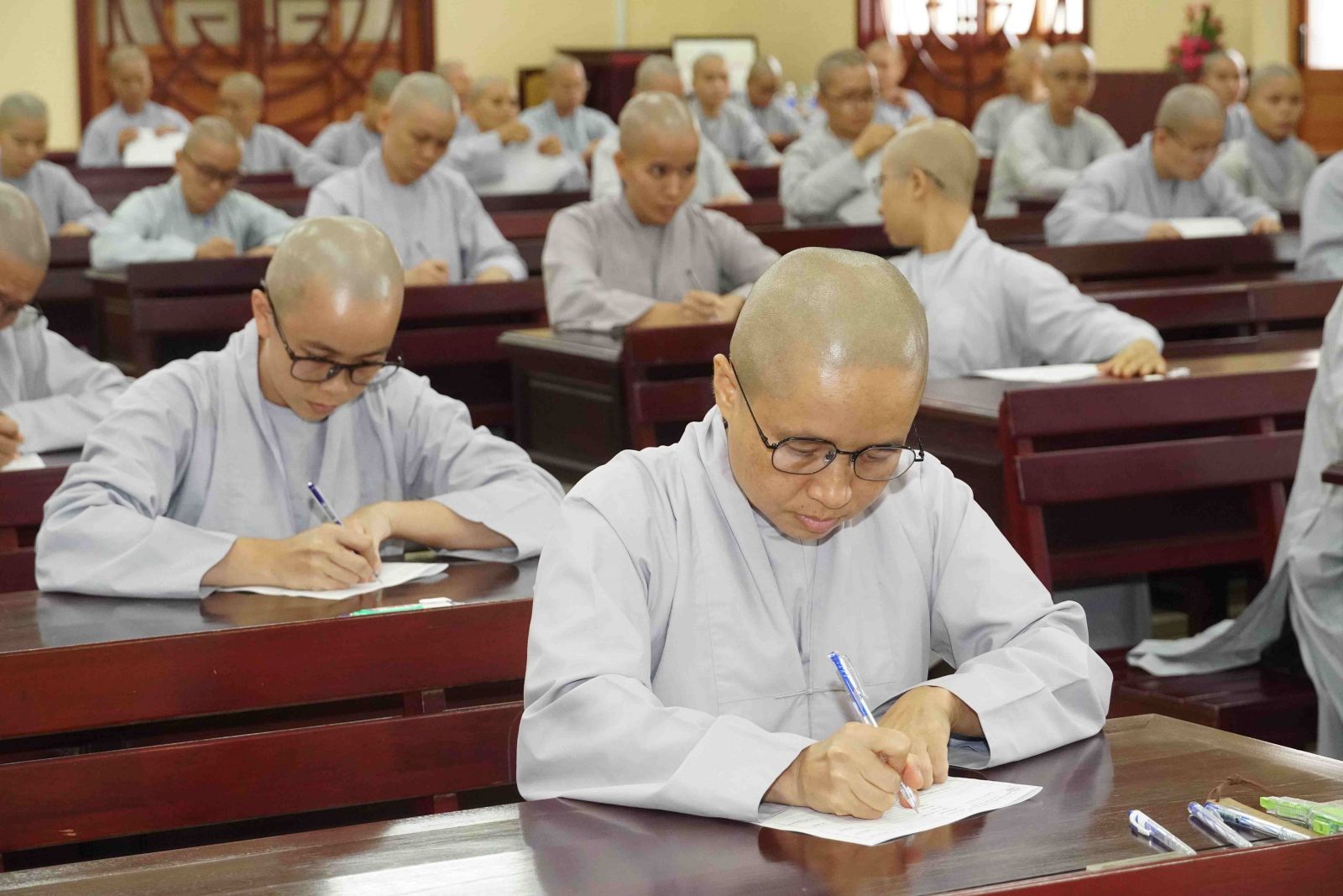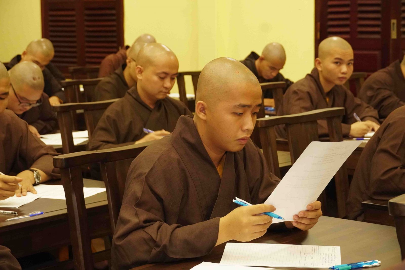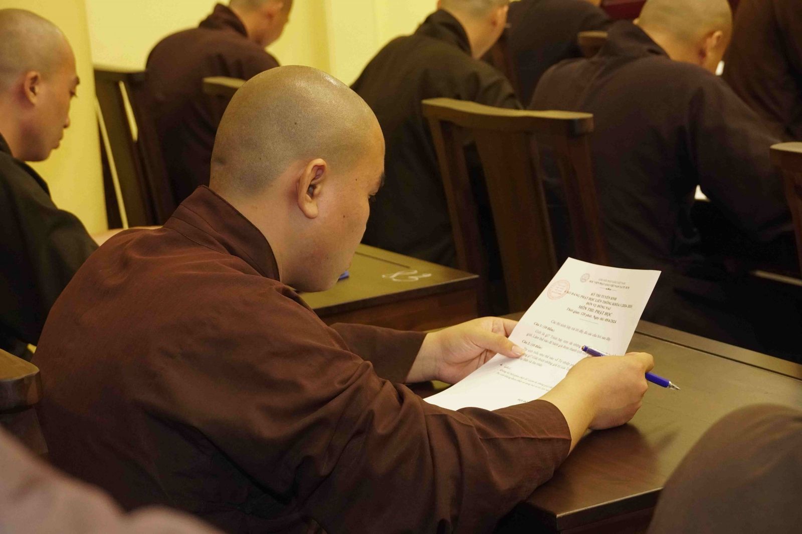 Khép lại buổi lễ khai mạc, Tăng Ni sinh đã được ban Tổ chức kỳ thi tuyển hướng dẫn cách thức và nội quy của kỳ thi tuyển.