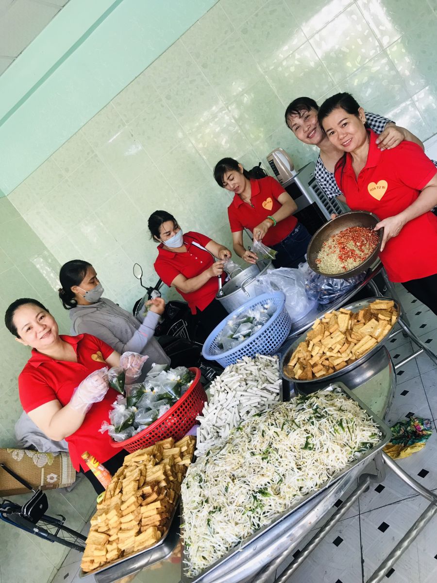 Với tâm nguyện tạo duyên lành cho mọi người biết ăn chay kết duyên lành, giảm thiểu sự sát sanh trong cuộc sống, góp phần bảo vệ môi trường chung. Cứ như vậy mỗi kỳ có hơn 200 phần ăn đến với quý bà con người nghèo, lao động chân tay, khó khăn, cơ nhỡ, bán vé số và những người lao động có thu nhập thấp. Mong rằng những mô hình này có sự chung tay góp sức của những vị Mạnh Thường Quân để nhóm Hoa Từ Bi Sen Vàng trực thuộc chùa Trúc Lâm Viên Nghiêm mãi duy trì.