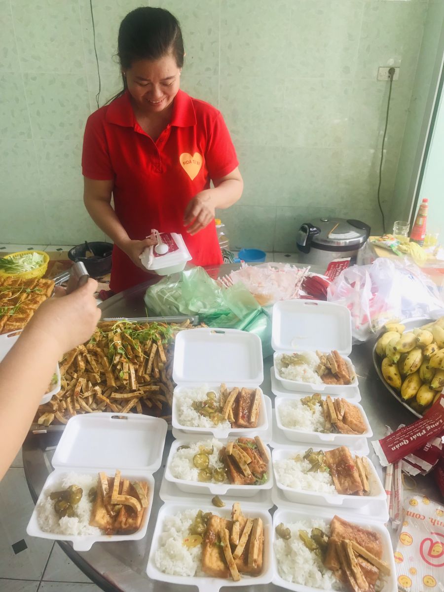 Đây là chương trình định kỳ của nhóm Hoa Từ Bi Sen Vàng trực thuộc chùa Trúc Lâm Viên Nghiêm, mỗi tháng phát 1 lần. Suốt thời gian dài quý Phật tử đã trao tặng những phần cơm chay yêu thương đến với quý bà con người nghèo, lao động chân tay, khó khăn, cơ nhỡ, bán vé số…. Đó chính là tâm nguyện của quý Phật tử trong nhóm, dành trọn tình thương sự chia sẻ đến quý bà con.