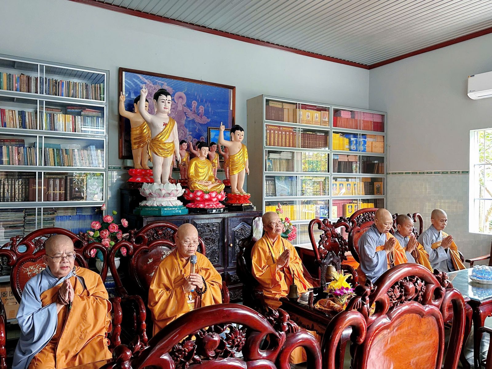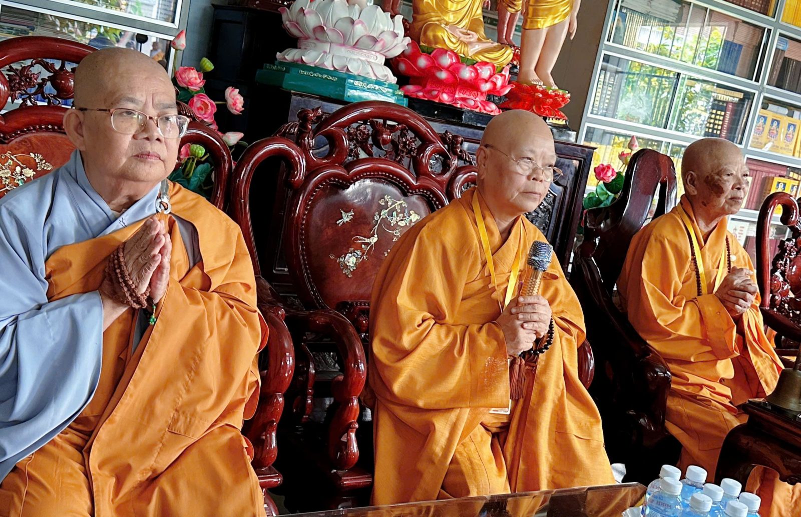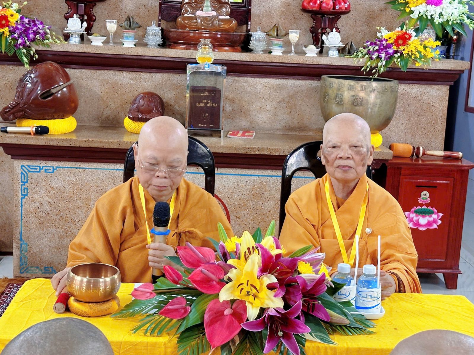 Chứng minh và tham dự buổi lễ có sự hiện diện của Ni trưởng Thích Nữ Minh Ấn - Chứng minh Ni giới huyện huyện, Hoá chủ Trường hạ; Ni sư Thích Nữ Trung An - Phó Ban trị sự, Phó ban Tổ chức Trường hạ; Ni sư Thích Nữ Huệ Ngọc - Trưởng Đặc trách Ni giới huyện, Phó ban Tổ chức trường hạ; chư Tôn đức Ni Ban chức sự hạ trường và 165 chư Ni hành giả an cư.